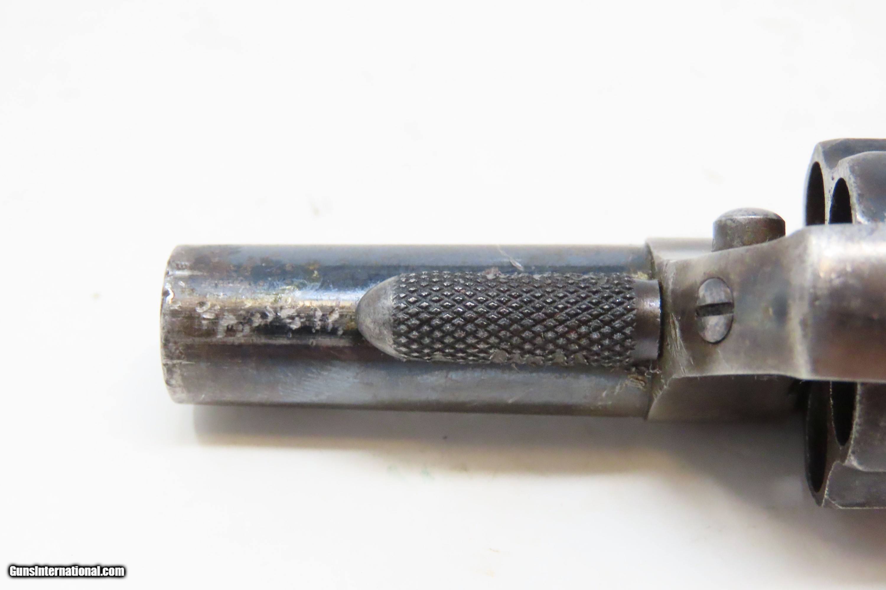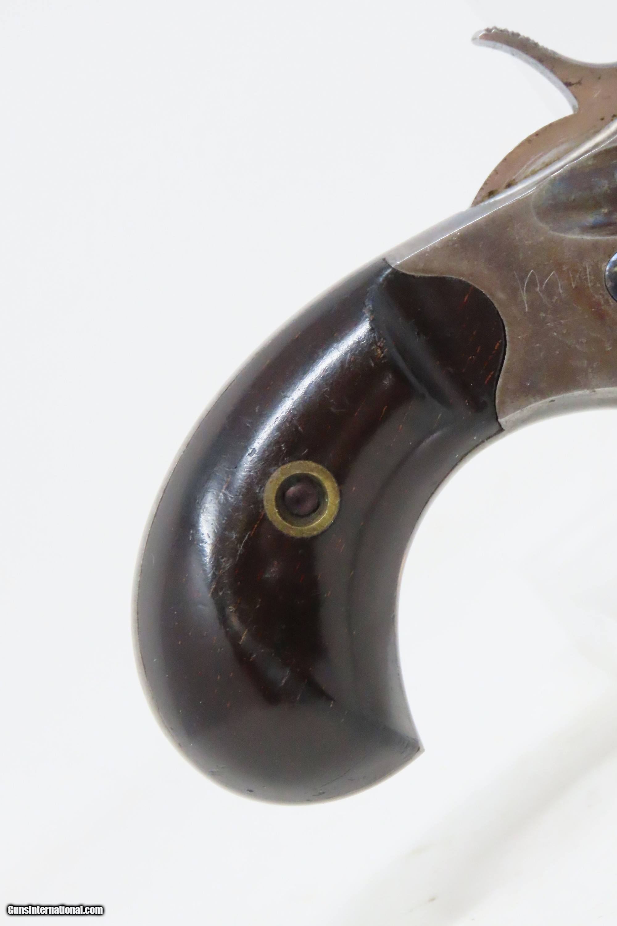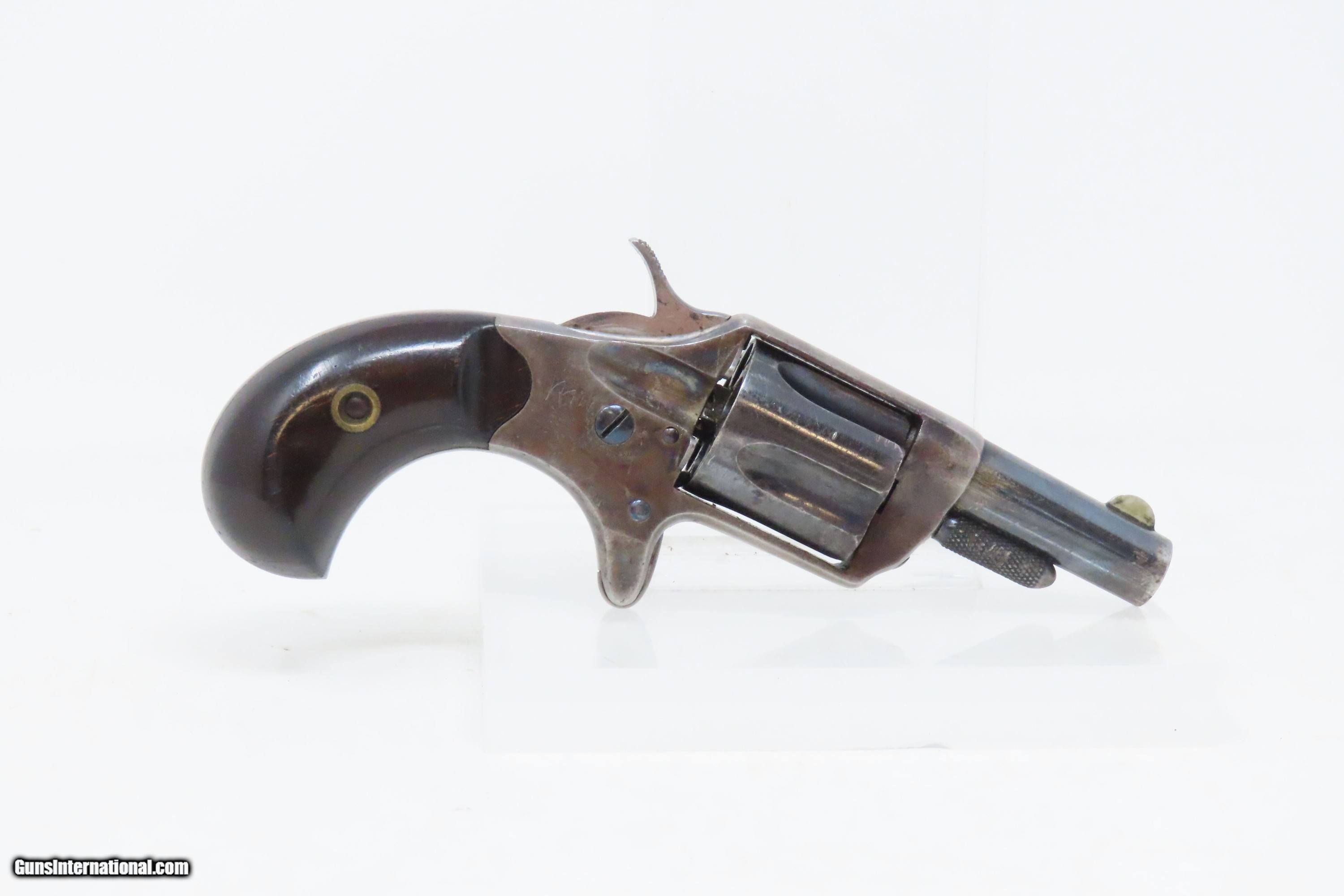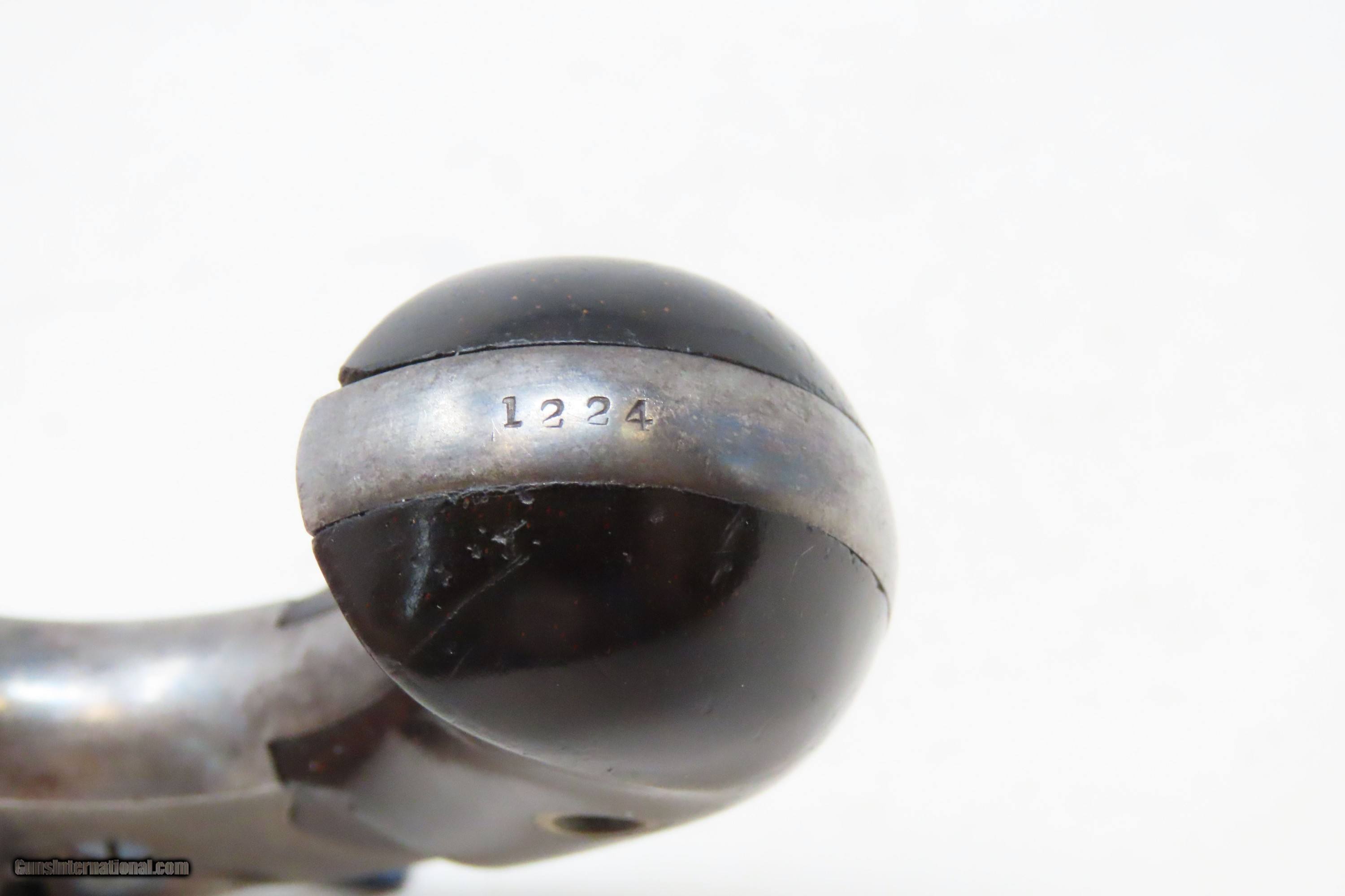 Description: DESIREABLE 1-3/4” BARREL Antique COLT “NEW LINE” .30 ETCHED PANEL Revolver FINE Post-CIVIL WAR SELF DEFENSE Hideout Revolver Here we present an antique Etched Panel Colt New Line .30 Caliber Revolver with the Desirable 1-3/4 inch Barrel, made in 1874 in Hartford, Connecticut. A single action revolver, this small pocket revolver was one of a number of inexpensive handguns produced by Colt from 1873 to 1884. The “New Line” was Colt’s first production model handgun chambered for .32 caliber and outnumbered all other pistols in Colt’s “New Line” group. This revolver utilized a .30 caliber cartridge matched to a 5-shot fluted cylinder fitted to a 2-1/4” long round barrel. The .30 caliber models were manufactured between 1874 and 1876 with 10,946 revolvers being produced. This revolver was designed to be a small but potent self-defense revolver for stowing in one’s pocket in the 19th Century. Spur Trigger “Suicide Special” manufacture was fierce during this time, and Colt struggled to compete against the countless small shops making very similar, less expensive revolvers, though not necessarily of the same quality. The Colt remained a steady, reliable force in firearms for much longer than the rest. This revolver features 5 shots of .30 caliber, a handsome wizened nickel finish and antique ivory grips. The New Line series of revolvers, including all calibers, was a single action pocket revolver introduced by the Colt’s Patent Fire Arms Manufacturing Company in 1873 and continued through 1884. Two years after the Colt House Revolver, a year after the Colt Open Top, and almost simultaneously alongside the Colt Peacemaker, the Colt New Line was one of the first metallic cartridge, rear-loading revolvers manufactured by Colt. The overall condition is fine. Original finish. The action is excellent. Good bore for its age. Sharp markings. Numbers match. Both grips are in very good shape with light handling. Own the original! This is a legitimate antique and not a reproduction. Barrel is 1-3/4 inches. Caliber: .30 Rimfire Overall condition as seen in photos. Very Fast. Very Safe. FREE SHIPPING WORLDWIDE. Delivered directly to your door by express mail! Guaranteed AUTHENTIC & Includes CERTIFICATE OF AUTHENTICITY. ancestryguns $1500 #240317 SOLD Antique: Yes |