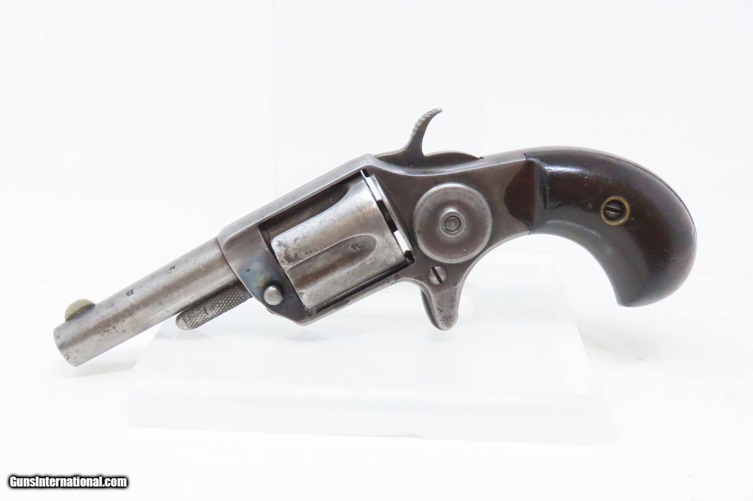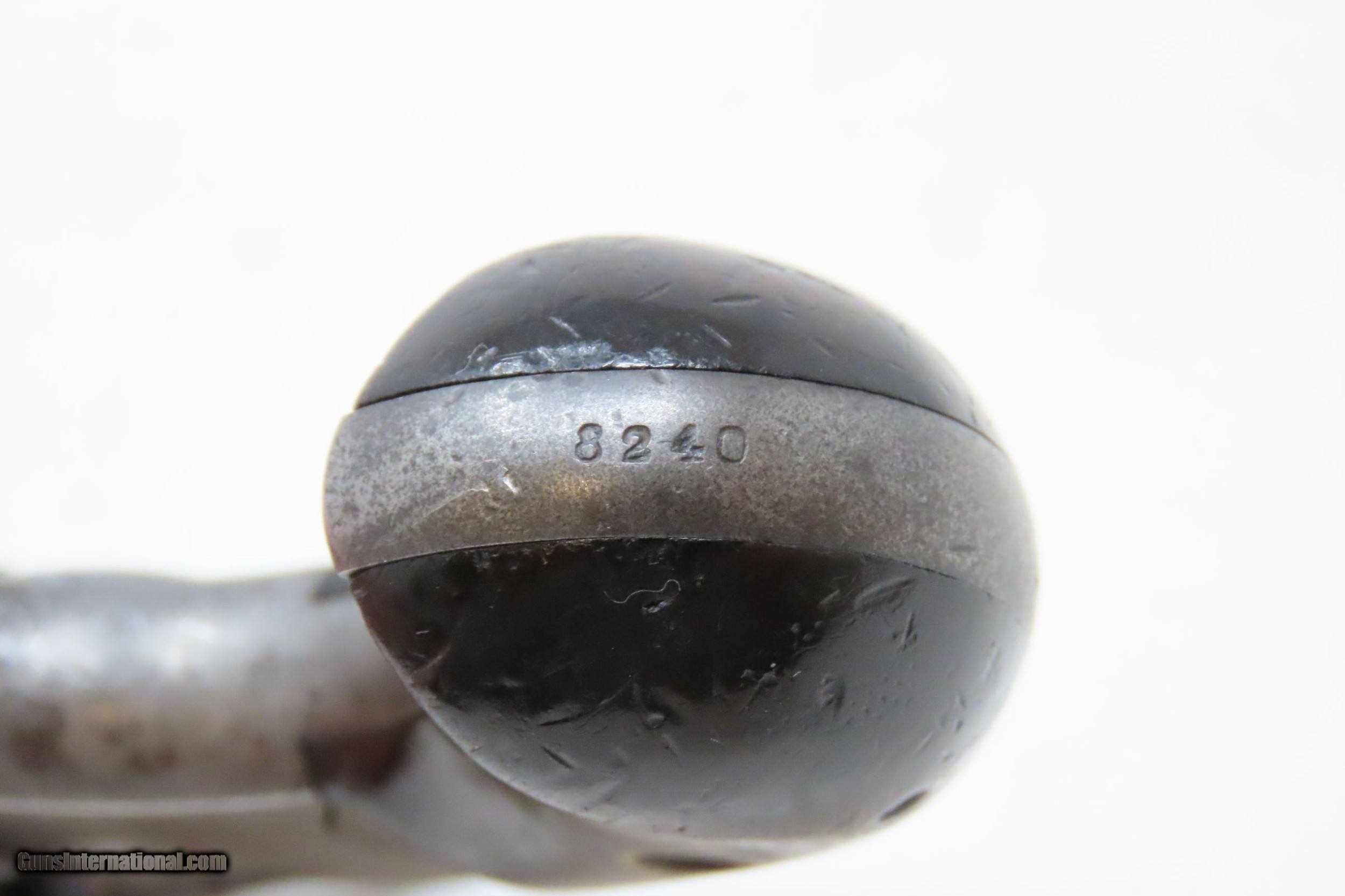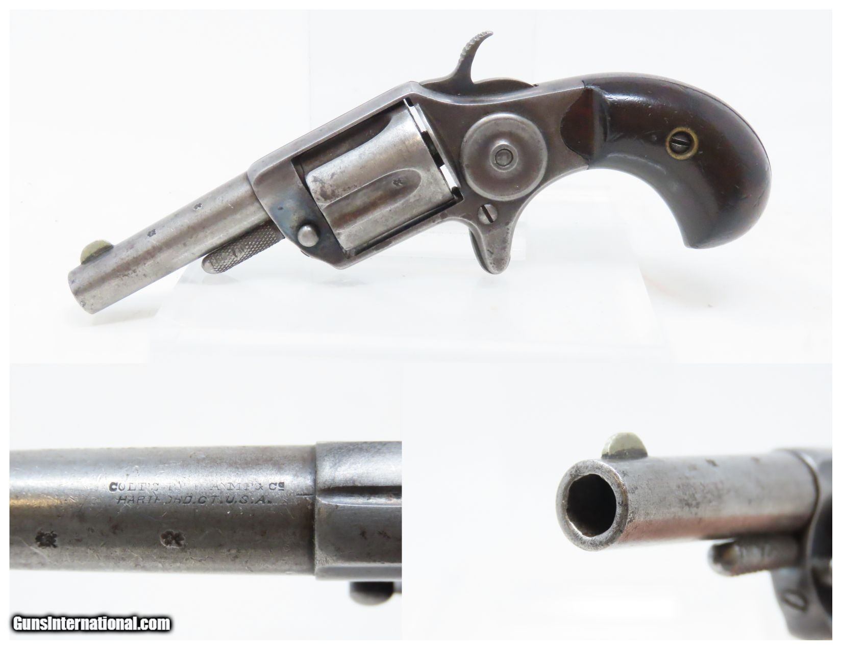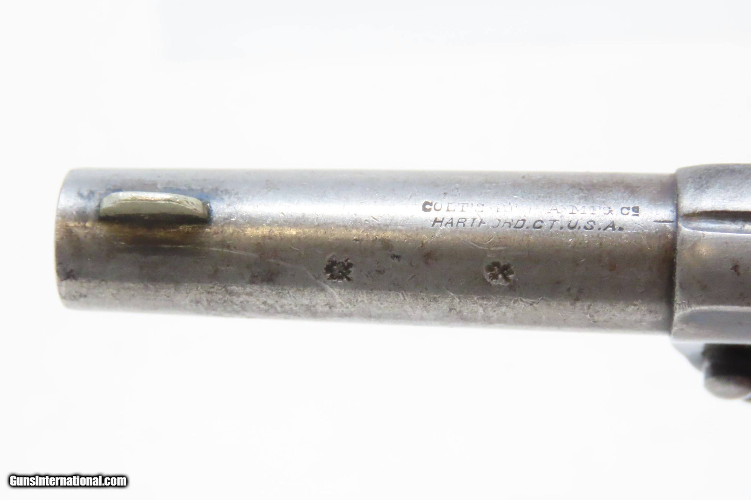 Description: F.T. BAKER FLEET STREET LONDON Antique COLT NEW LINE Revolver “F.T. BAKER/SS FLEET ST. LONDON” Marked Barrel Here we present an antique Etched Panel Colt New Line .30 Caliber Rimfire Revolver, made in 1874 in Hartford, Connecticut. A single action revolver, this small pocket revolver was one of a number of inexpensive handguns produced by Colt from 1873 to 1884. The “New Line” was Colt’s first production model handgun chambered for .32 caliber and outnumbered all other pistols in Colt’s “New Line” group. This revolver utilized a .30 caliber rimfire cartridge matched to a 5-shot fluted cylinder fitted to a 2 ¼” long round barrel. The .30 caliber models were manufactured between 1874 and 1876 with 10,946 revolvers being produced. This .30 caliber rimfire variant is unique among Colt firearms in that it is the only revolver produced by Colt that was chambered in .30 caliber. The revolver also had one of the shortest production runs of all Colt handguns, only being manufactured for three years. These .30 calibers are one of the scarcer of the Colt New Lines, twice as rare as a .32 caliber and about five times scarcer than a .22 caliber. This revolver was designed to be a small but potent self-defense revolver for stowing in one’s pocket in the 19th Century. Spur Trigger “Suicide Special” manufacture was fierce during this time, and Colt struggled to compete against the countless small shops making very similar, less expensive revolvers, though not necessarily of the same quality. The Colt remained a steady, reliable force in firearms for much longer than the rest. This revolver features 5 shots of .30 Rimfire, a handsome wizened nickel finish and rosewood grips. The New Line series of revolvers, including all calibers, was a single action pocket revolver introduced by the Colt’s Patent Fire Arms Manufacturing Company in 1873 and continued through 1884. Two years after the Colt House Revolver, a year after the Colt Open Top, and almost simultaneously alongside the Colt Peacemaker, the Colt New Line was one of the first metallic cartridge, rear-loading revolvers manufactured by Colt. This example has Birmingham proofs along with the London retailer “F.T. BAKER/ 88 FLEET ST. LONDON” marked on the barrel. This gunmaking firm was founded by Thomas K. Baker and later assumed in 1857 by Frederick Thomas Baker. The overall condition is very good. Mostly gray patina throughout. The action is excellent. The bore is in nice shape with strong rifling. The grips are in nice condition for age. Own the original! This is a legitimate antique and not a reproduction. Barrel is 2-1/4 inches. Caliber: .30 Rimfire Overall condition as seen in photos. Very Fast. Very Safe. FREE SHIPPING WORLDWIDE. Delivered directly to your door by express mail! Guaranteed AUTHENTIC & Includes CERTIFICATE OF AUTHENTICITY. ancestryguns $1600 #220281 SOLD Antique: Yes |