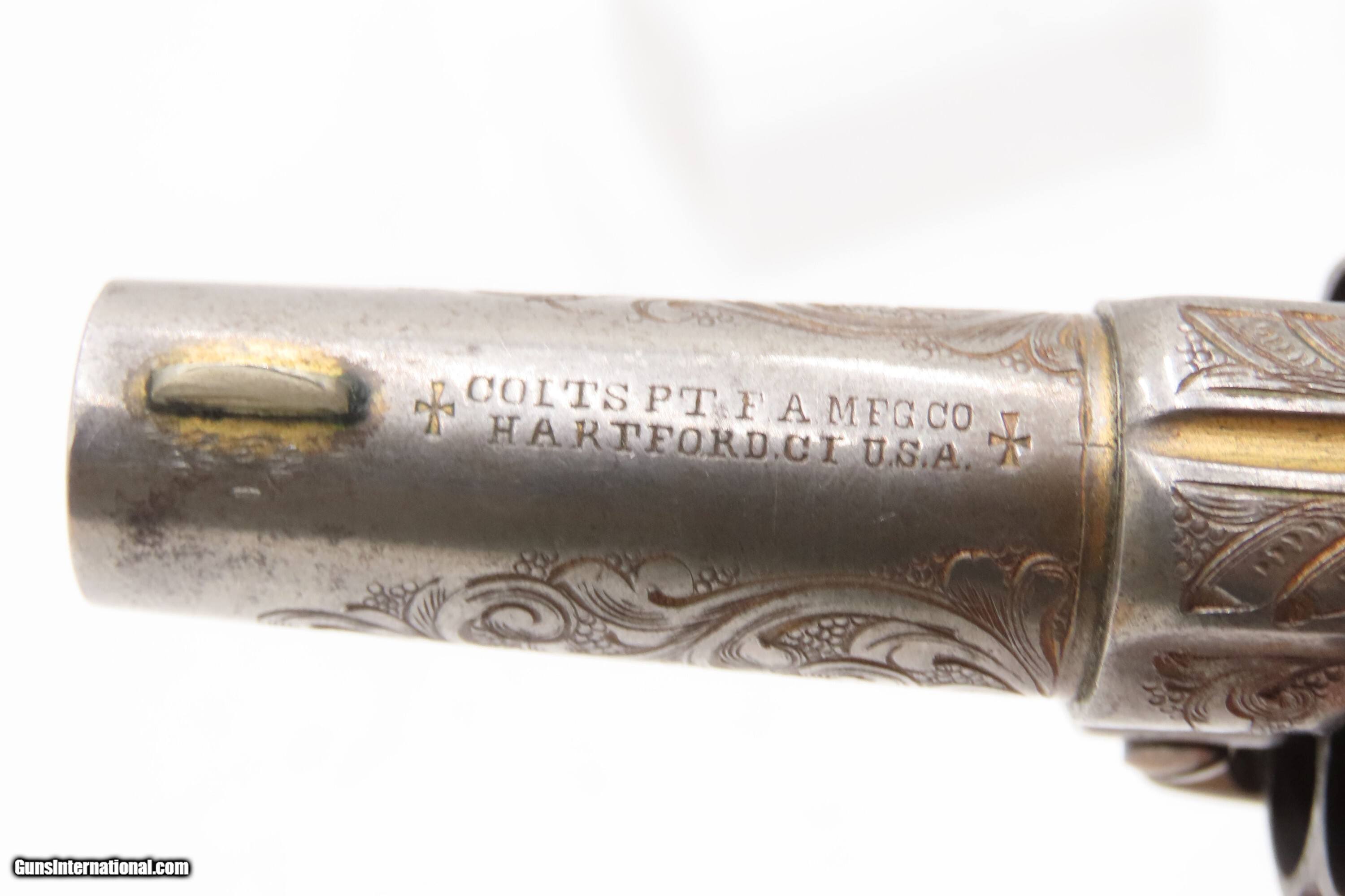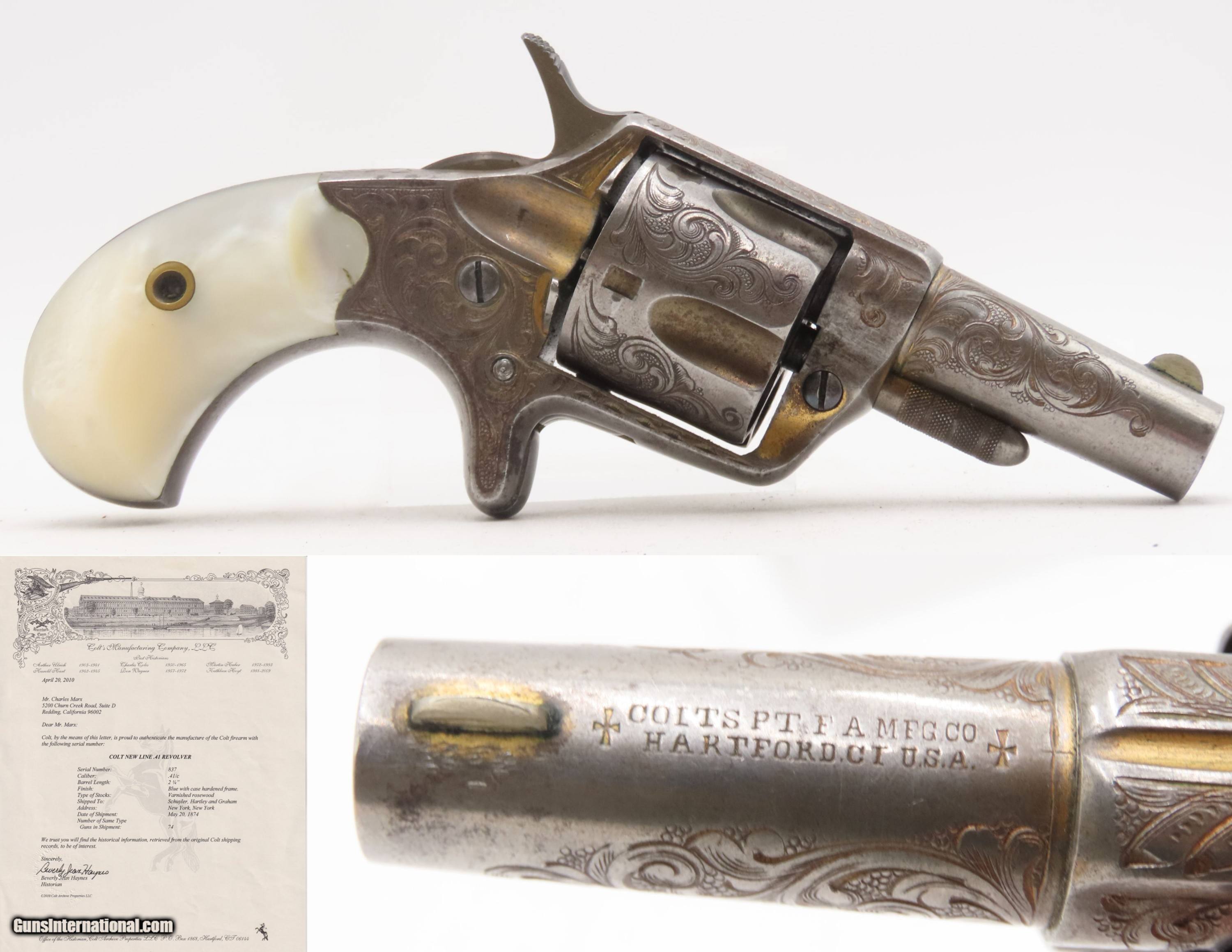 LETTERED Antique Engraved Gold COLT NEW LINE .41 RF Revolver w/PEARL GRIPS