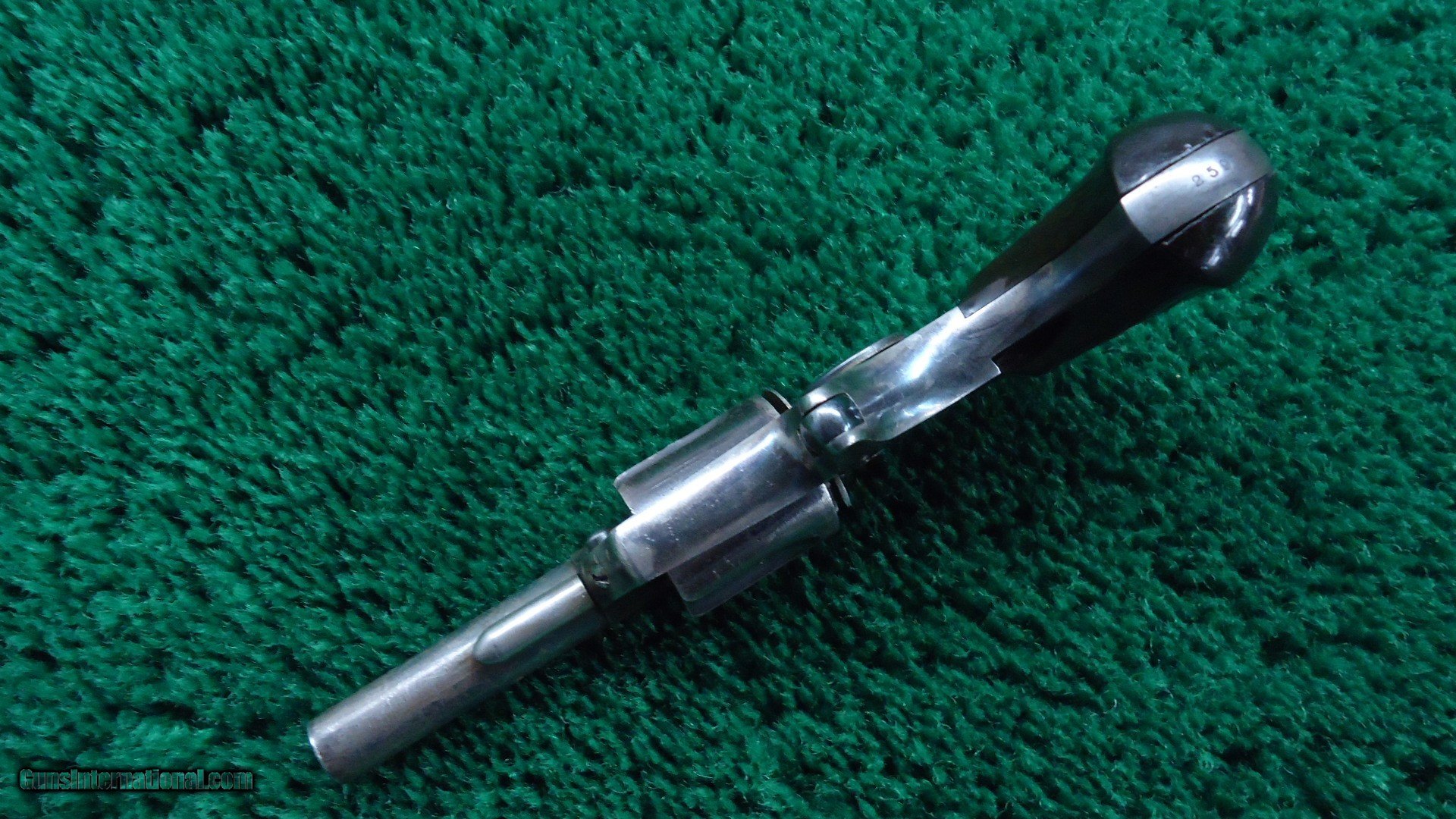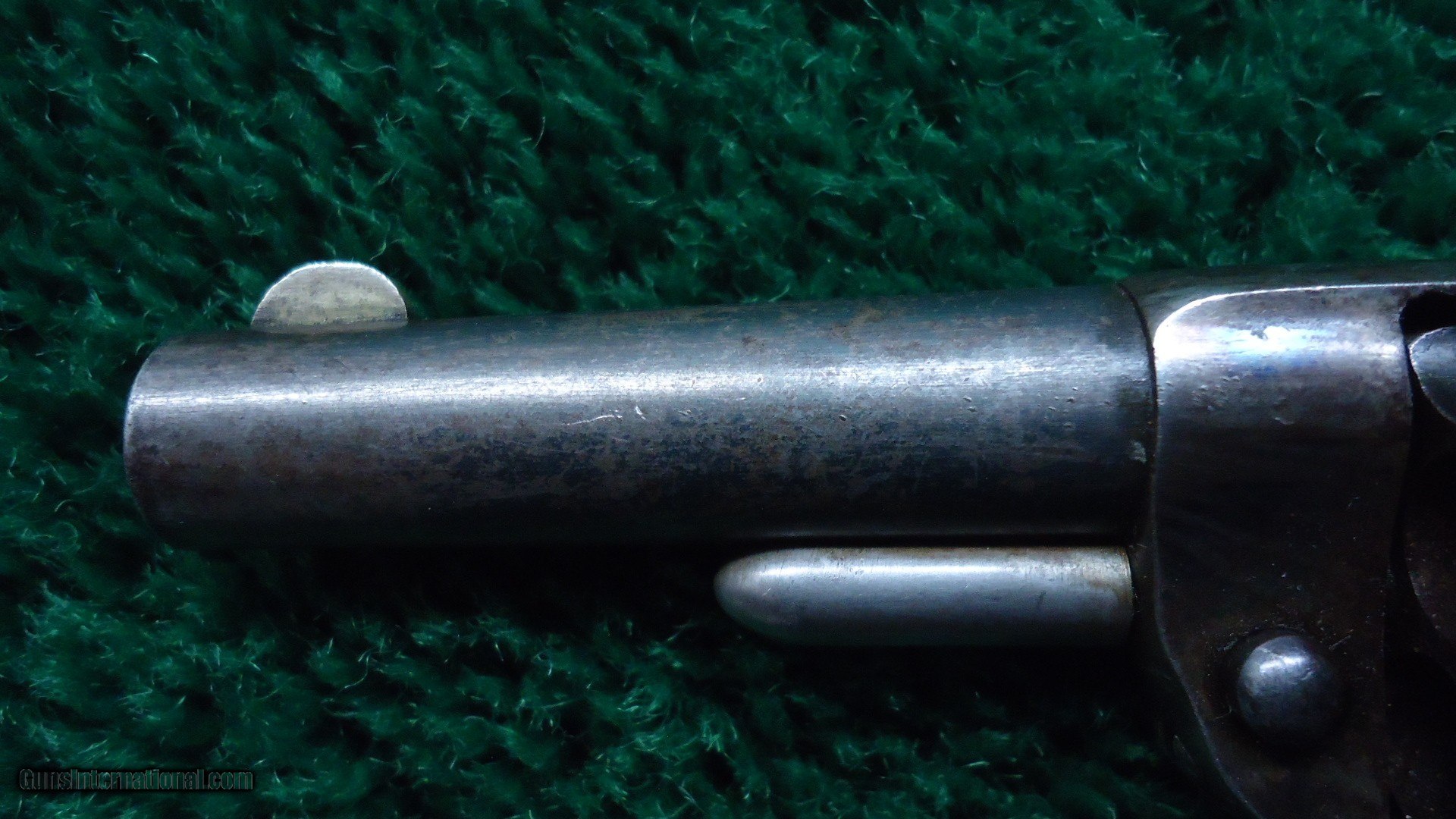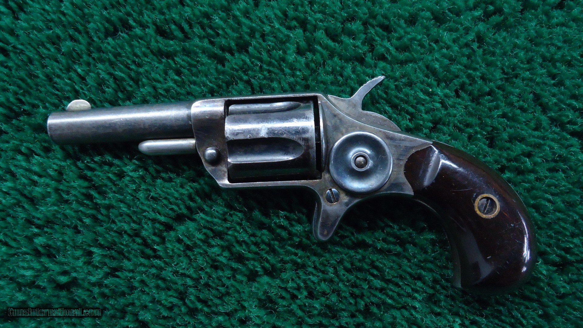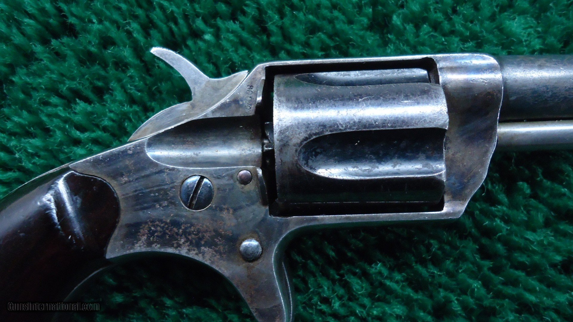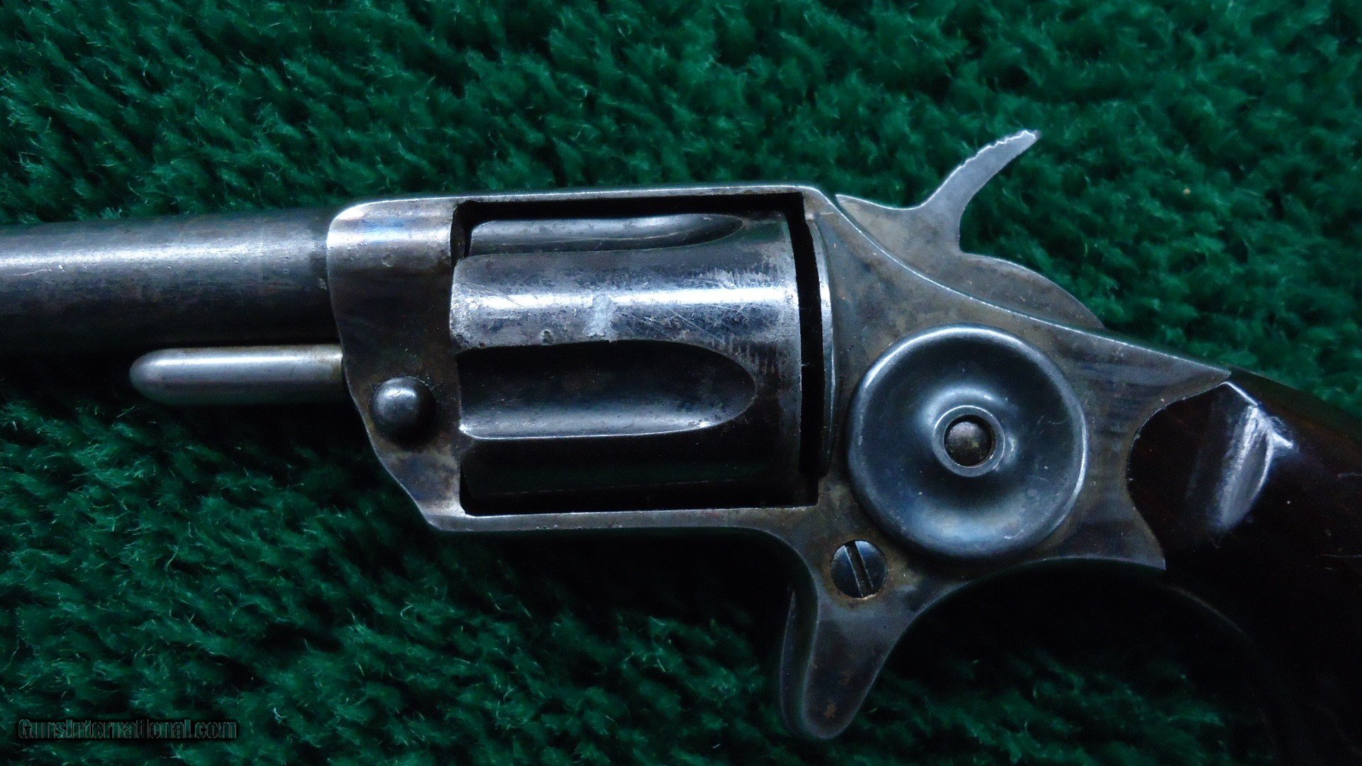 Description: 2-1/4 inch barrel. This is a blue and case hardened example. Very difficult to find with 80%+ vivid case colors! 90% cylinder blue with 70% thinning barrel blue. Excellent walnut grips. A fine little revolver. Leroy Merz Antique Firearms specializes in antique and vintage Winchesters and other fine American firearms. Since 1965 Mr. Merz has taken part in the world of firearms and has been a contributor to many well known reference books. We have hundreds of additional guns in every price range at our home online. Search for Merz Antiques in google. SOLD Antique: Yes Handgun Caliber: .30 RF |