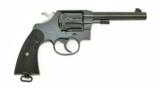 Colt New Service .455 Eley caliber revolver made in 1914 with a 5 ½” barrel. Metal has 95% of the finish. Bore is excellent. Grips are checkered hard. Gun is import marked. Gun has British proof marks.