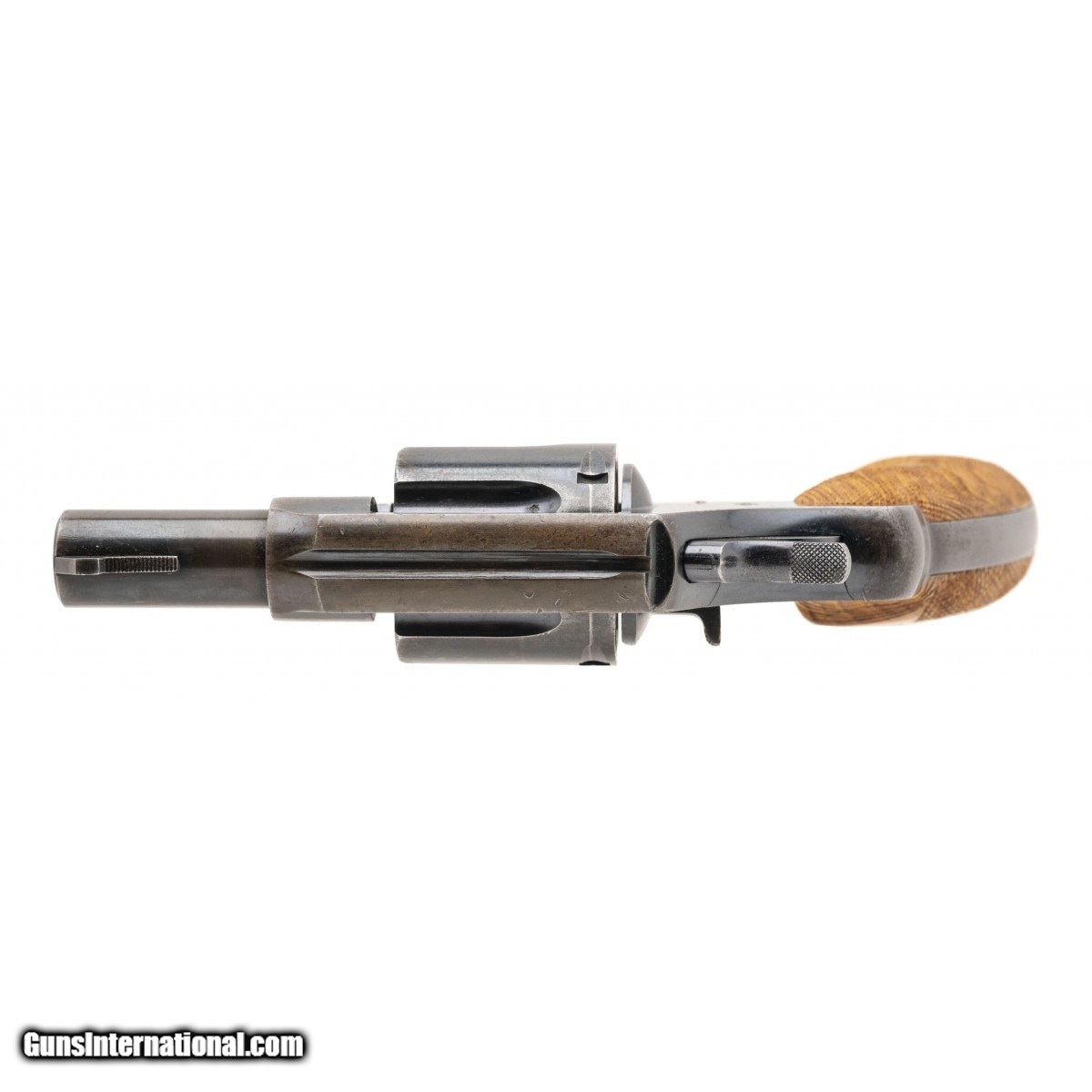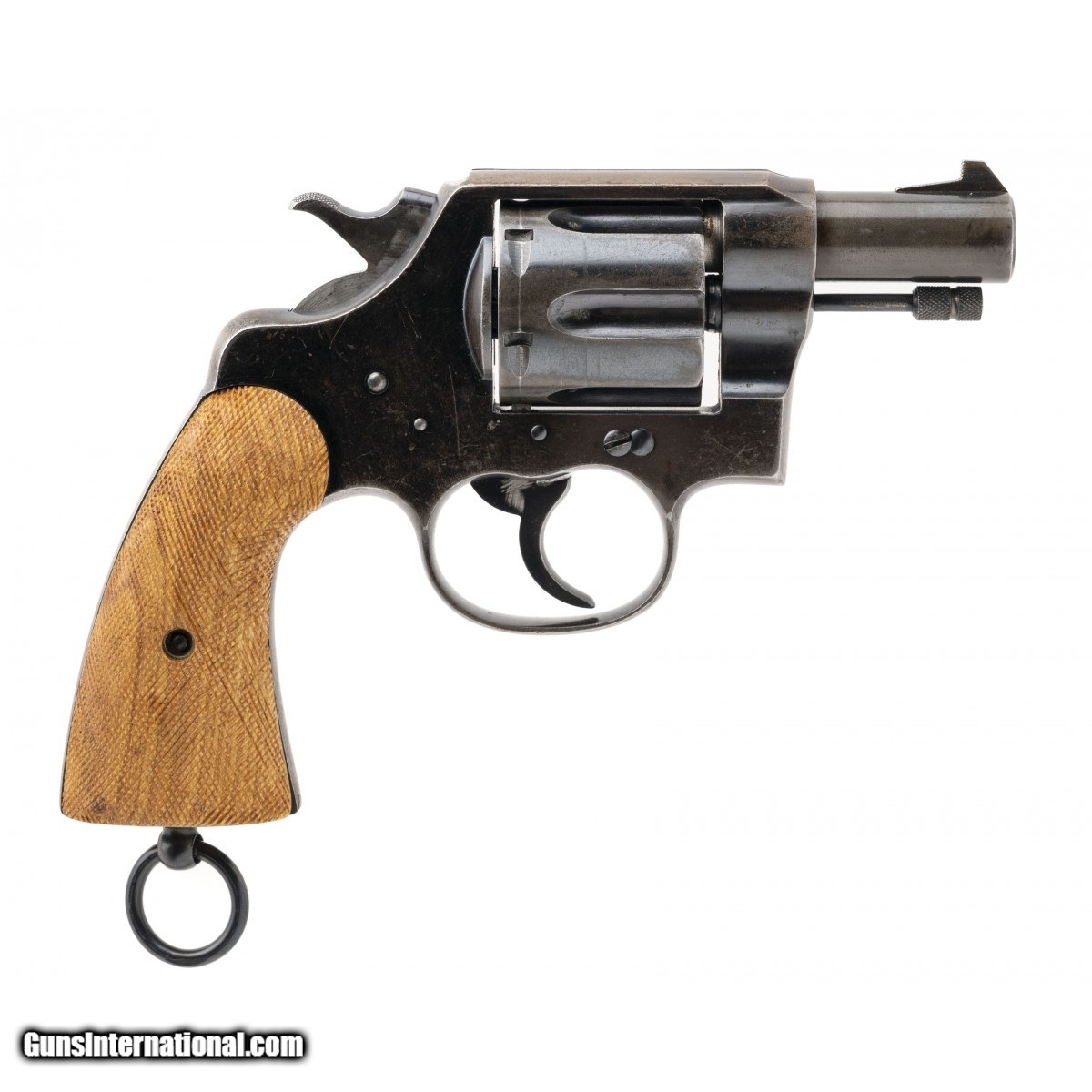 Description: " SN: 76506. Made in 1915. .45 Long Colt with a 2.5"" barrel. Bore is excellent. Pre-War double action service revolver, has British proof marks on cylinder and frame. The barrel was shortened to convert this to a ""belly gun"". Has custom wood grips. Overall condition is very good. SOLD |
