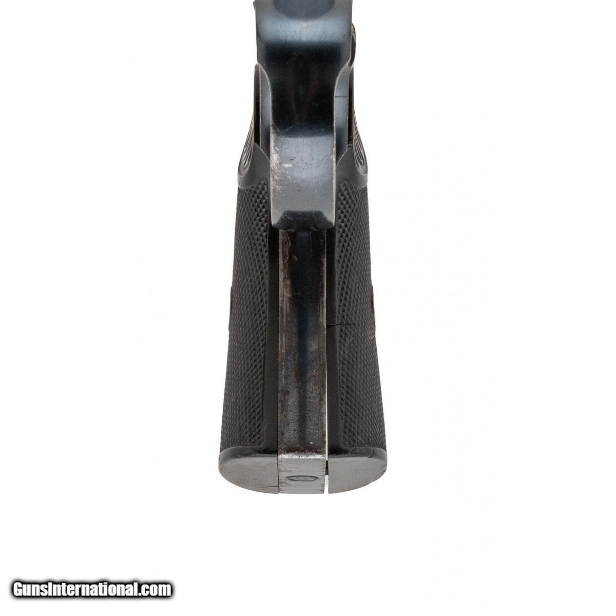 Description: " SN: 321147. Made in 1924, 45 Colt caliber with a 7.5"" barrel. Bore is very good and action locks up tight. Large frame DA revolver. Has about 85% original blue. One of the grips has a crack. Good condition overall. Austin location. SOLD |
