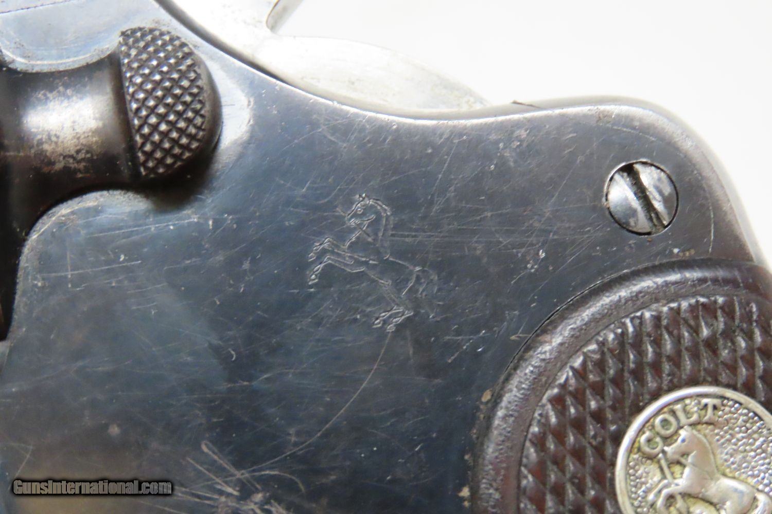 Description: 1928 COLT NEW SERVICE Model .45 Colt Double Action SIX-SHOT Revolver C&R Roaring Twenties Era Sidearm! Here we present a Colt “New Service” Model double action revolver, made in 1928 in Hartford, Connecticut. The Colt New Service is a large frame, large caliber, double-action revolver made by Colt from 1898 until 1946. In 1898, Colt Firearms released a new six-shot revolver chambered for the .45 Long Colt cartridge as the Model 1898 - better known as the "Colt New Service". The New Service line would end up being produced from 1898 to 1946 to the tune of over 356,000 examples by the Colt Patent Firearms Manufacturing Company. The New Service line was adopted by the United States military through the Army, Marine Corps and Navy service branches, these under the designation of "Model 1909" and retaining the .45 Colt chambering. Not surprisingly, the New Service line managed to see operational use from 1898 into 1946, encompassing World War 1 (1914-1918) and World War 2 (1939-1945) as well as a plethora of other conflicts in between. Some also found their way onto the battlefields of the Vietnam War (1955-1975). First use of the New Service revolver was in the 1898 Spanish-American War. As New Service revolvers were produced in the hundreds of thousands and proved highly reliable and robust battlefield weapons while also lending themselves to the civilian market, it was no surprise that the New Service was still in circulation by the time World War II rolled around. Many New Service revolvers were given up after 1946 though limited stocks still persevered into the more modern "Cold War" conflicts from then on. The overall condition is fine. Original blue finish. The action is strong and tight all around. The bore is in nice shape. Both grips contain a silver Colt medallion and remain firm. Here is a must have six-shooter from Colt! This firearm is classified as a Curio & Relic. Barrel is 5 1/2 inches. Caliber: .45 Long Colt Overall condition as seen in photos. Very Fast. Very Safe. FREE SHIPPING. Will need to be sent to your local FFL or C&R licensee. This firearm is classified as a Curio & Relic. Guaranteed AUTHENTIC & Includes CERTIFICATE OF AUTHENTICITY. ancestryguns $1745 #201771 SOLD Curio/Relic: Yes |