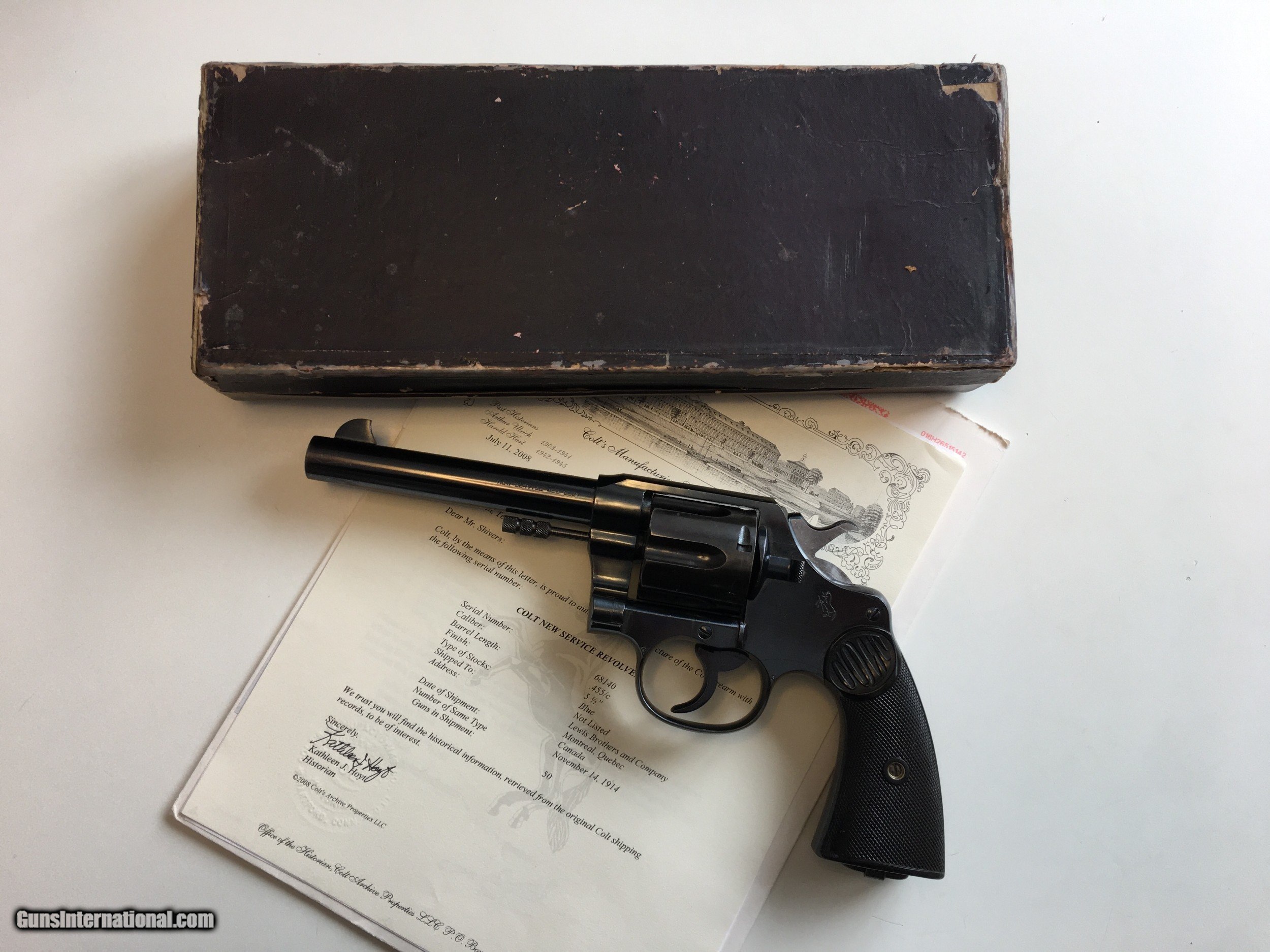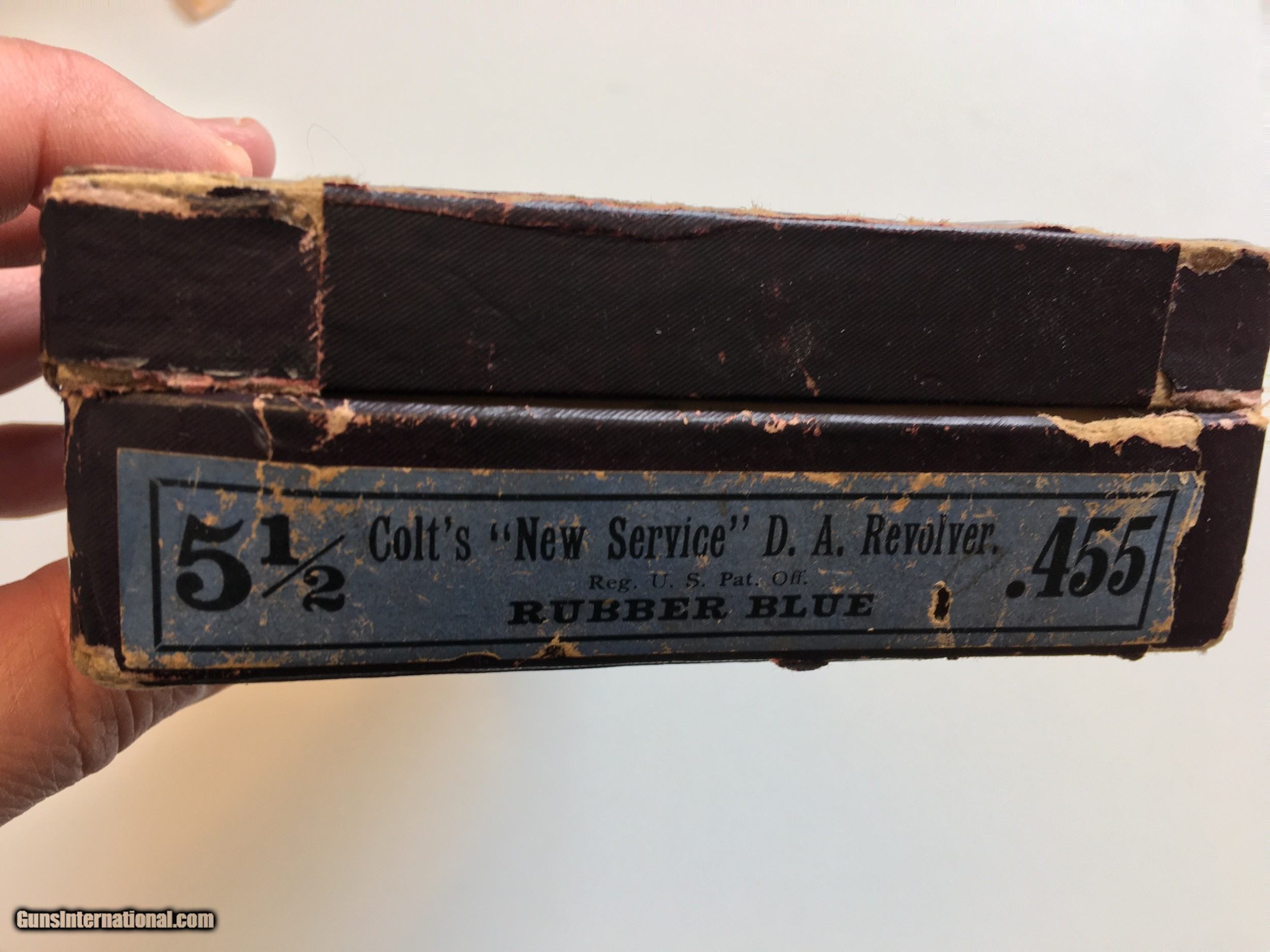 BEAUTIFUL EARLY COLT NEW SERVICE REVOLVER .455 in ORIGINAL BOX, FACTORY LETTER