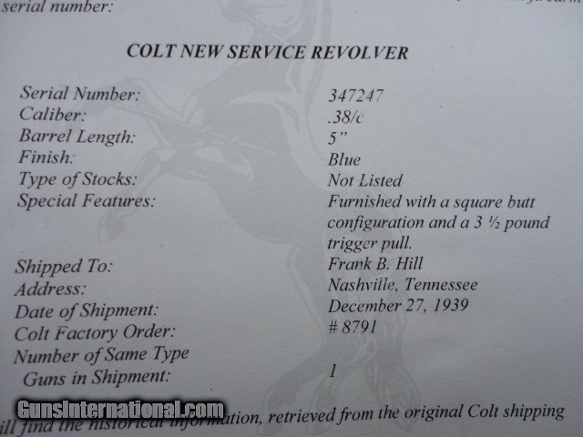 Colt New Service 38 Special Rare 5 inch Barrel Nashville TN 1939
