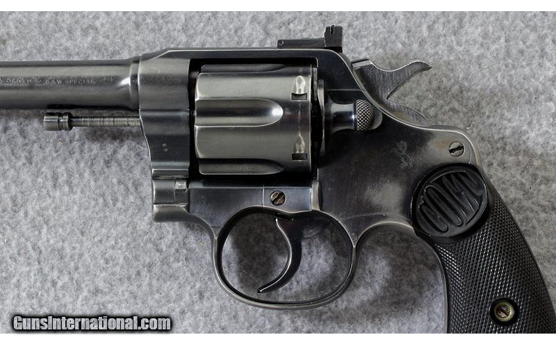 Description: This Colt New Service .44 Special has been customized for Bullseye target shooting. A set of Micro adjustable target sights were expertly added sometime in the past. The action locks up solidly and the timing is excellent. You will want to pull the trigger on this Colt New Service. 1924. .44 S&W Special SOLD Metal Condition: "Refinished in good condition with some finish wear on the barrel, sharp edges, front and backstrap Bore Condition: Excellent Barrels: 7 1/2 inch Triggers: Double action Weight: 42 oz. Sights: Micro adjustable rear sight with Micro ramped blade rear sight Item Location: Lehi, UT |