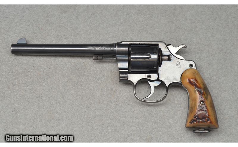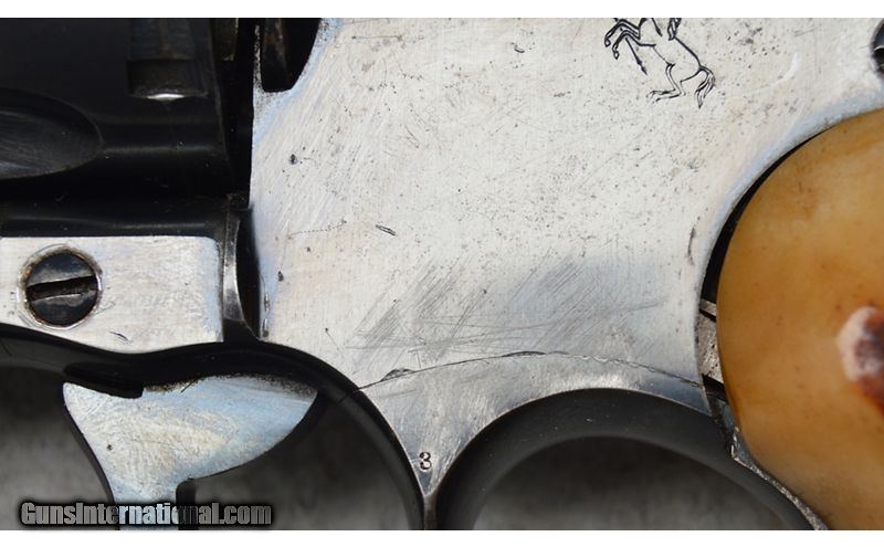 Description: Colt New Service in great shape. This Colt has Stag grips, lanyard ring, with fixed front sight and frame notch rear sight. Finish loss around the grip, along the barrel, and trigger guard with pitting. SN: 310758 MFG: 1920 .45 Colt SOLD Curio/Relic: Yes Metal Condition: Great Wood Condition: Great Bore Condition: "Minor pitting, Good Rifling Barrels: 7 1/2 Butt Pad: Stag Grips Weight: 2 lb 13 oz Item Location: Fort Worth, TX |