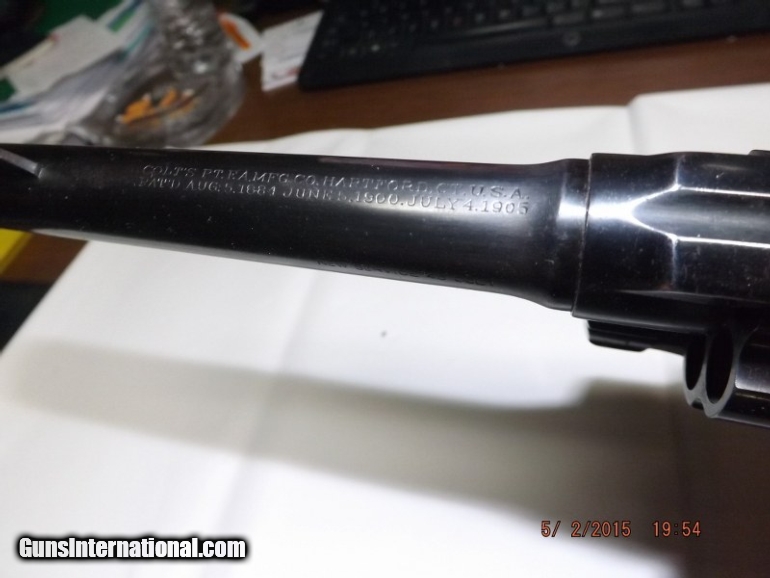 Description: Serial # 323070 was produced in 1928. Chambered in .45 LC, this one has a 5 1/2" barrel. Timing and lockup are very good. Finish is probably 97% with some light patina starting. SOLD |