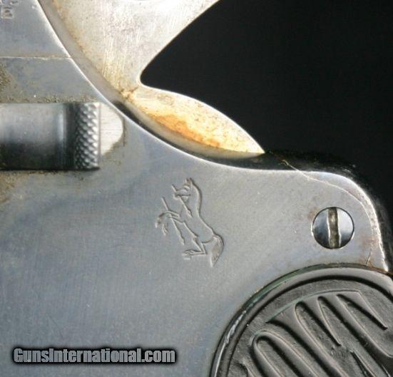Description: .455 Eley, #148059, 5 1/2 inch barrel, blue finish, 2 piece hard rubber grips, British and Canadian proof marks, falls in group sent to RCMP, letters to London Armory Co, London, in a shipment of 540. 1918. Condition: excellent bright bore, 95% blue overall, excellent grips, excellent meckanically, excellent marks. SOLD Curio/Relic: Yes |