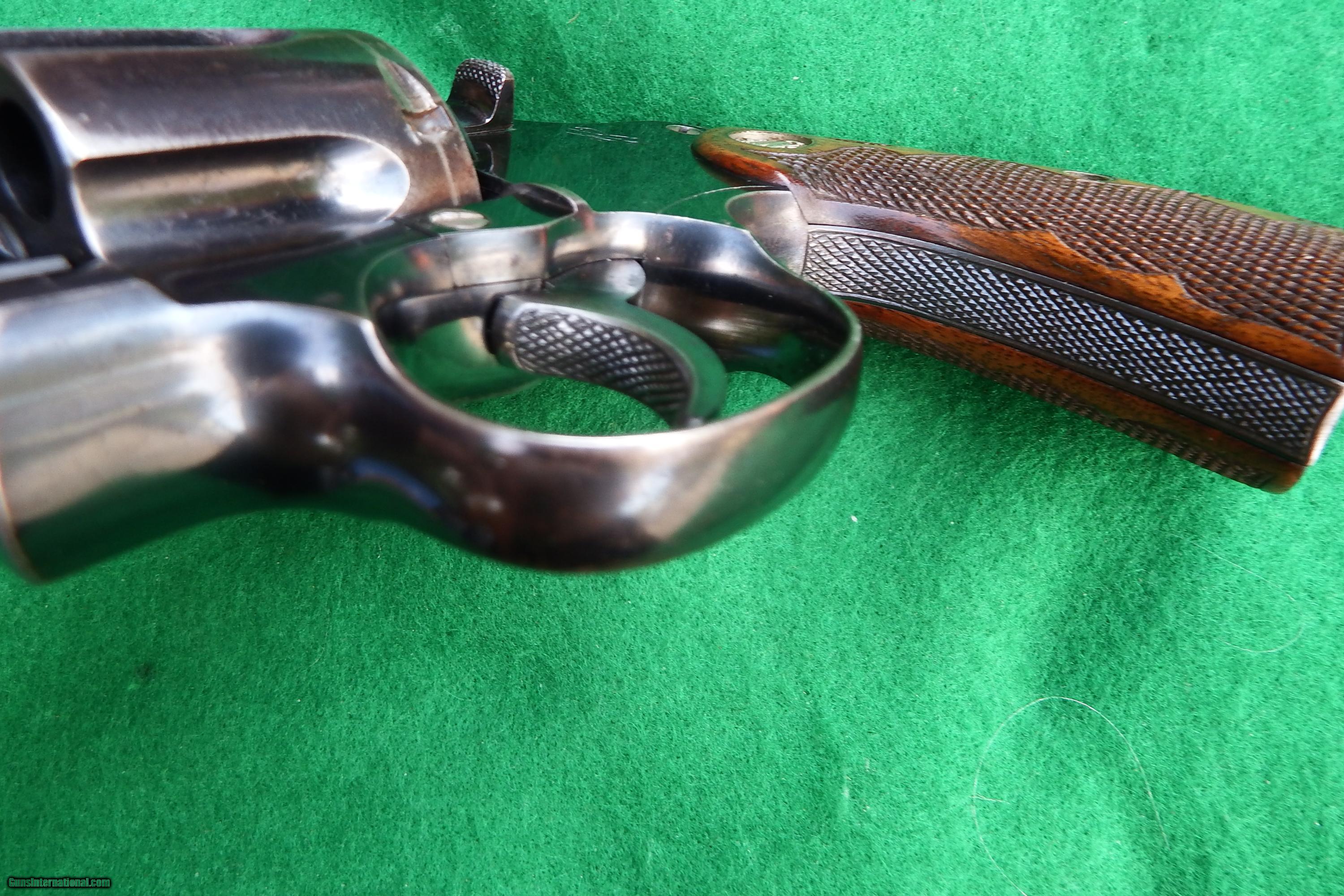 Description: SOLD ------------------ An interesting custom special order Colt that has most of what a Shooting Master would have. For example – it has the fancy fleur De les walnut carved grips. It has the checkered front and rear grip straps and trigger. It has the fleur de les carved on the bottom of the back strap. The lanyard ring hole is plugged and the sights are standard. Minty bore and crisp action with lots of original finish as the pictures show. Kind of an interesting specially adorned Colt NS. I offer a 3 day inspection. Please phone with ANY questions – 813-2430588 ( FL) SOLD Curio/Relic: Yes |