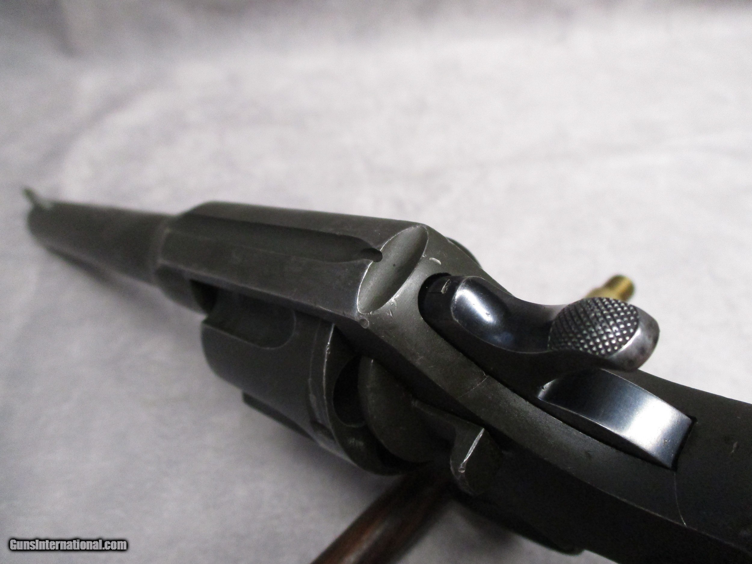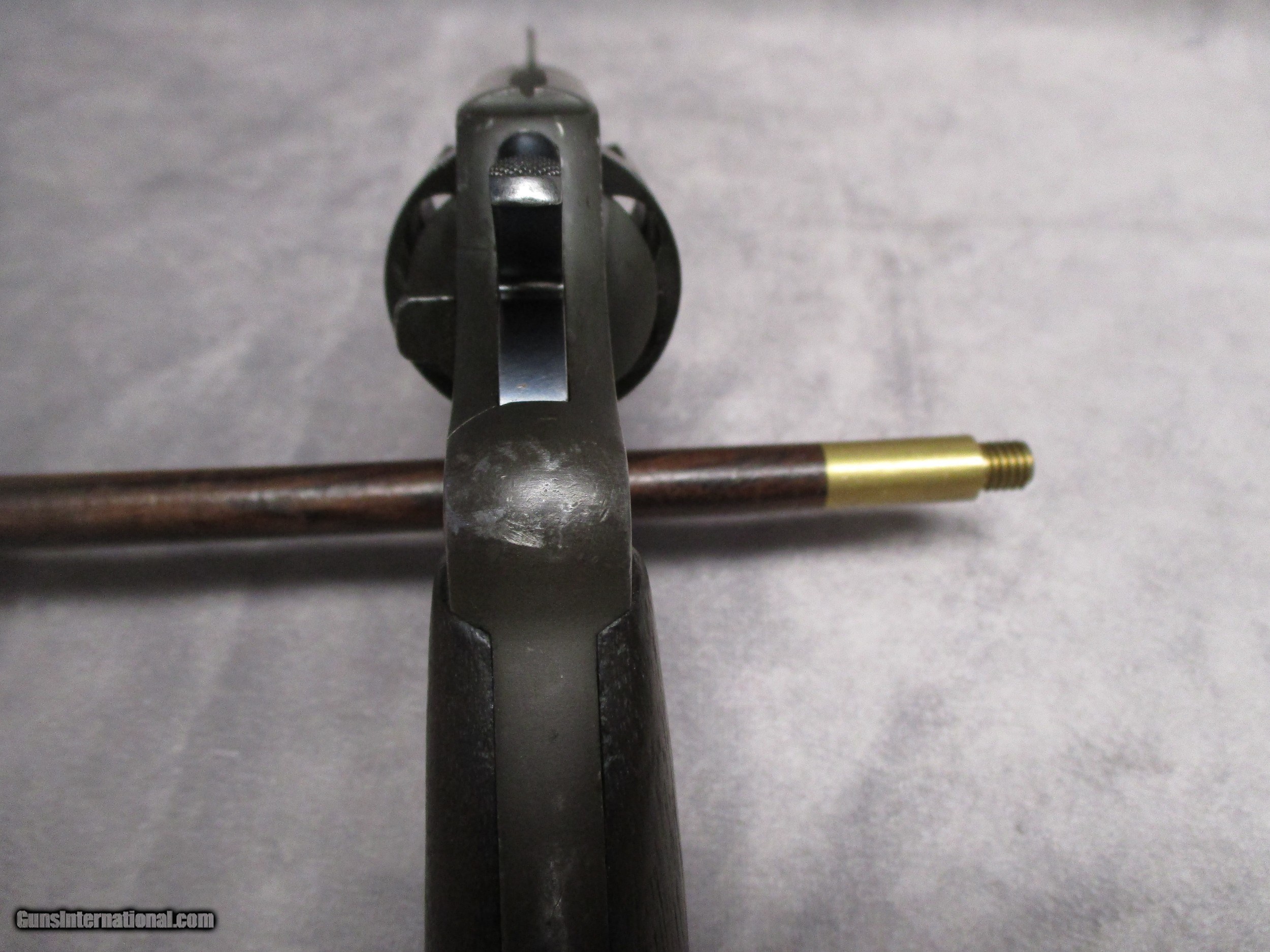 Description: After the turn of the century, in response to the lackluster performance of the Model 1892/1894/1896 revolvers with the anemic .38 Long Colt in use in the Philippines, the US Army asked Colt to design a new double action revolver in the .45 Colt originally introduced with the Colt Peacemaker in 1873. The result was the Colt New Service revolver. It initially entered army service as the M1909. Within two years, its replacement, the Colt M1911 in .45 ACP was introduced. At the onset of World War 1, and especially after trench warfare commenced, the British Army realized they did not have enough Webley Mk. VI revolvers to suit the requirement. Many European nations considered the pistol a badge of office for officers to be issued while regular enlisted men had to make do with their rifles. Of course, in the trenches the rifles used many of the participating nations would be all but unusable due to the limited amount of room to maneuver. Hence, pistols were needed quickly. They purchased many Colt New Service and S&W New Century revolvers chambered for their .455 Webley. When the US entered World War I in 1917, the US Army came to the same conclusion as their European counterparts did – there simply weren’t enough 1911’s to go around. It was a simple matter to alter the New Service/M1909 and the New Century/Mk II to shoot the .45 ACP round using moon clips. Both revolvers became the M1917 revolver and were issued alongside the M1911 to US troops. The Colt is easily identifiable by its larger frame and much thicker barrel. While a Colt M1917 would have been heavier to carry, the thicker barrel would certainly have been more efficient at soaking up heat than the S&W’s pencil barrel. According to the Colt Serial Number Database on their , the factory serial number (198861) dates the revolver to 1919. As such, this revolver has the improved cylinder wherein each chamber has is shouldered for the .45 ACP. What this means is that moon-clips are not mandatory for shooting. However, without moon-clips, ejection of the cases must be done individually with a pencil or similar object. For World War II, this M1917 was refinished at the Augusta Arsenal in Georgia. The Arsenal’s signature stamp “AA” is located on the left side just ahead of the side plate. The original Colt markings are still visible despite the refinish though there is naturally some wear to the pony on the side plate. The revolver now sports a parkerized finish, which was faster and easier to apply than a blued finish. The 1917 exhibits the usual holster wear on the barrel and cylinder/frame edges, but retains the majority of the finish. The frame has one or two nicks in the metal but nothing serious. Mechanically, the 1917 is in superb condition. The cylinder locks up like a bank vault as they say. This means that when the trigger is pulled, and the hammer goes forward and the gun fires, the cylinder is locked up very tightly with virtually no play until the trigger is allowed to return to the forward position. The wood grips are in fairly good shape for their age, though there is a mar on the right hand grip. The bore is in excellent condition with no rust or pitting. Overall, this M1917 is in excellent condition given its age. The U.S. Army’s serial number for the gun is 45,238. SOLD Handgun Caliber: .45 ACP (.45 Auto), .45 Auto Rim Manufacturer: Colt's PT. F.A. Mfg. Co. Model: Model 1917 Serial Number: 198861 Bore: Rifled Chambers: 6 Ejectors: Manual, simultaneous 6-round ejection (with moon clips) Condition: Good Barrel Type: Heavy Action: Double/Single Action Triggers: Single, smooth face Stock: Walnut Finish: Parkerized Sights: Fixed Sights; Sight Radius 7.0 inches (178mm) Manufacture Date: 1919 |