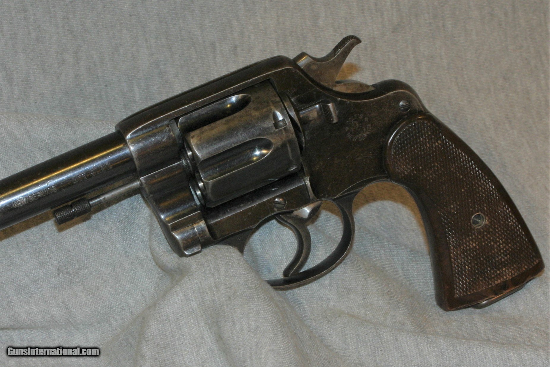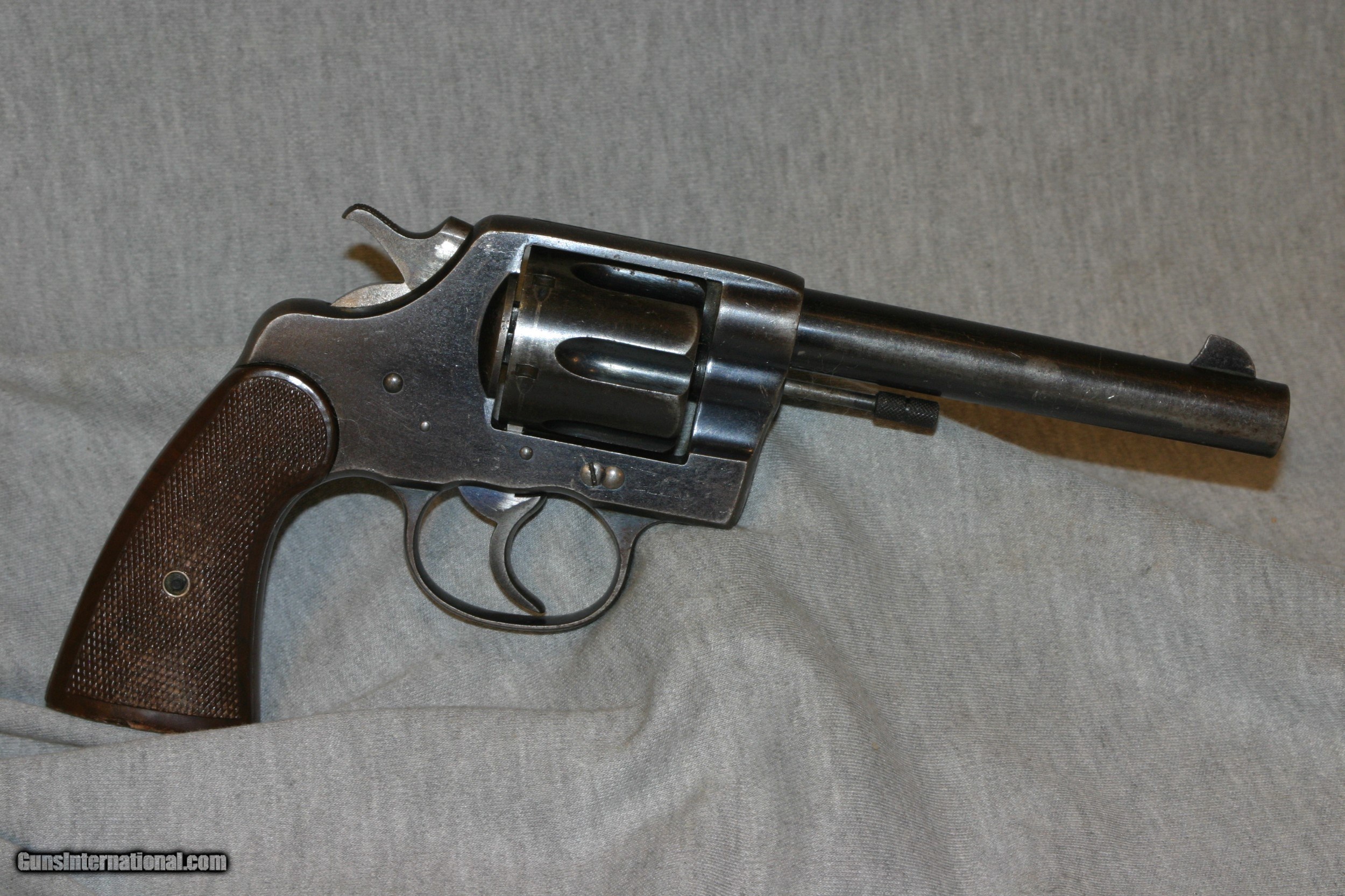 Description: COLT NEW SERVICE .455 FOR THE NORTHWEST MOUNTED POLICE, UNCUT CYLINDER FOR THE ENGLISH .455 ELEY. VERY GOOD OVERALL CONDITION, 1904 SOLD Curio/Relic: Yes |