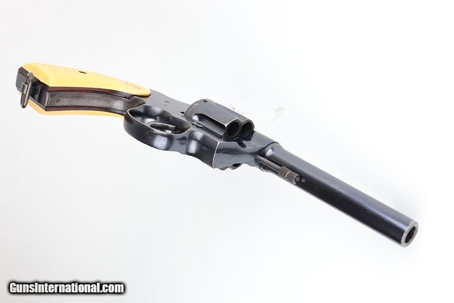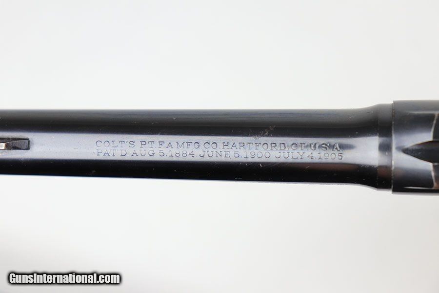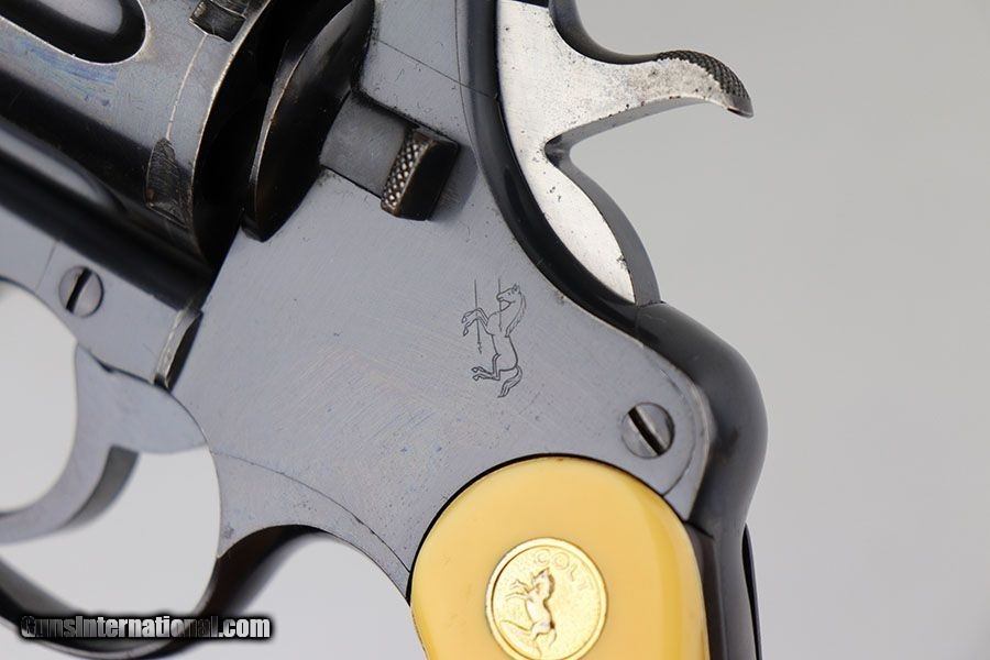 Description: This is a nice example of a commercial Colt New Service revolver that was made in 1923. It's got a 5.5 inch barrel with mint bore and mechanics. The beautiful Colt polished blue rates at about 90+% with some thinning/patina on the cylinder and muzzle, but most of the finish loss on the grip frame. Has a set of faux ivory grips with Colt medallion, and the left panel does have a crack in the lower corner. SOLD Curio/Relic: Yes Manufacturer: Colt Model: New Service Serial Number: 318052 Caliber Info: .45 Condition: 90-92% Bore Condition: 10/10 Manufacture Date: 1923 |