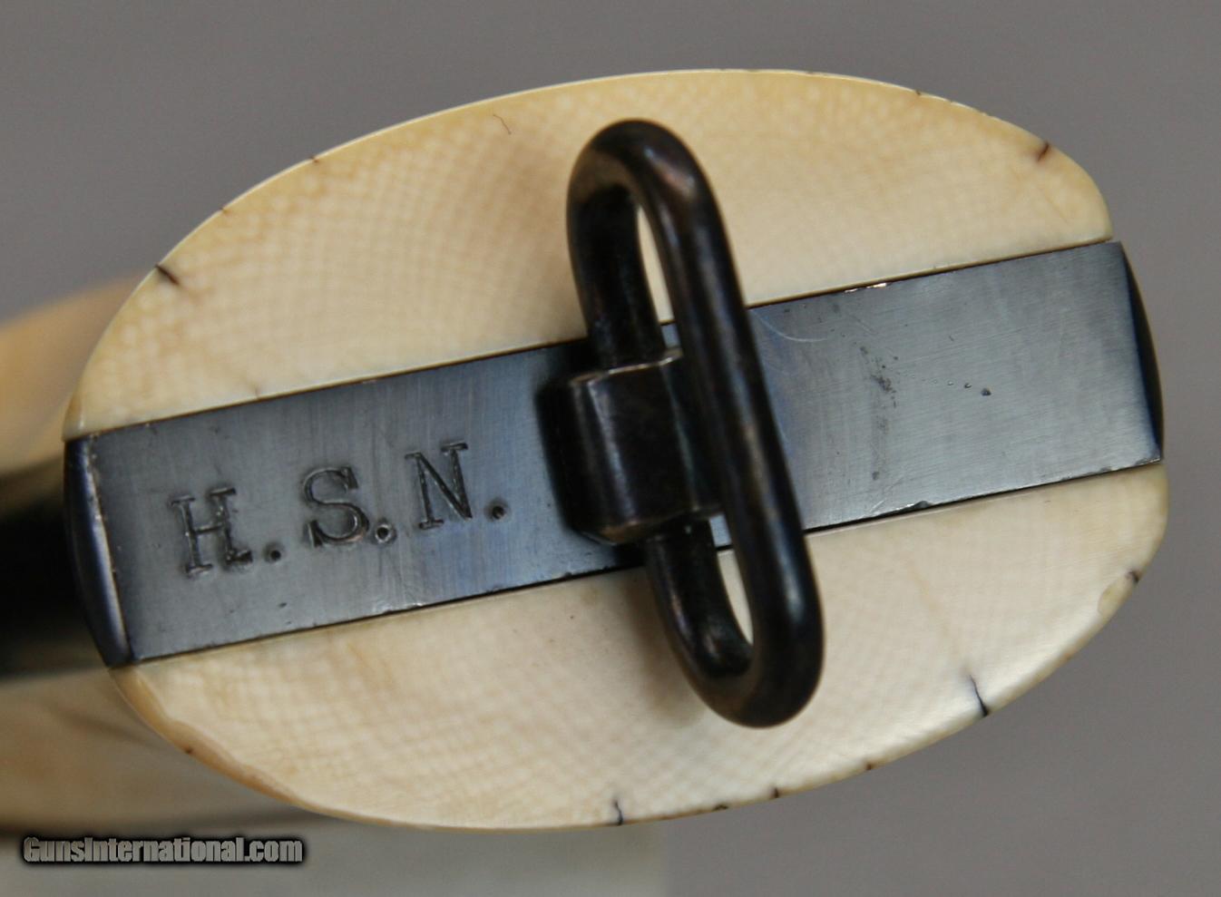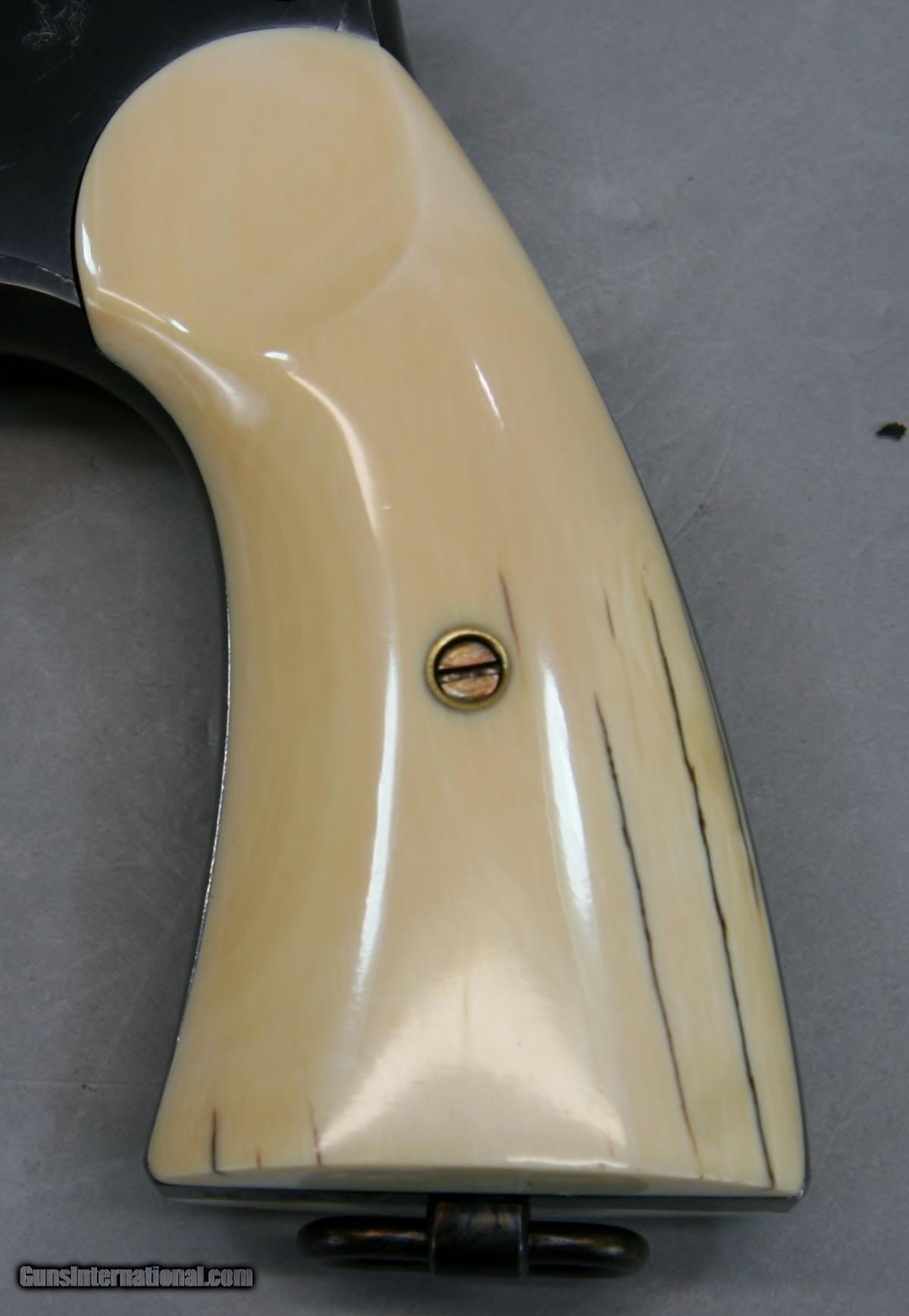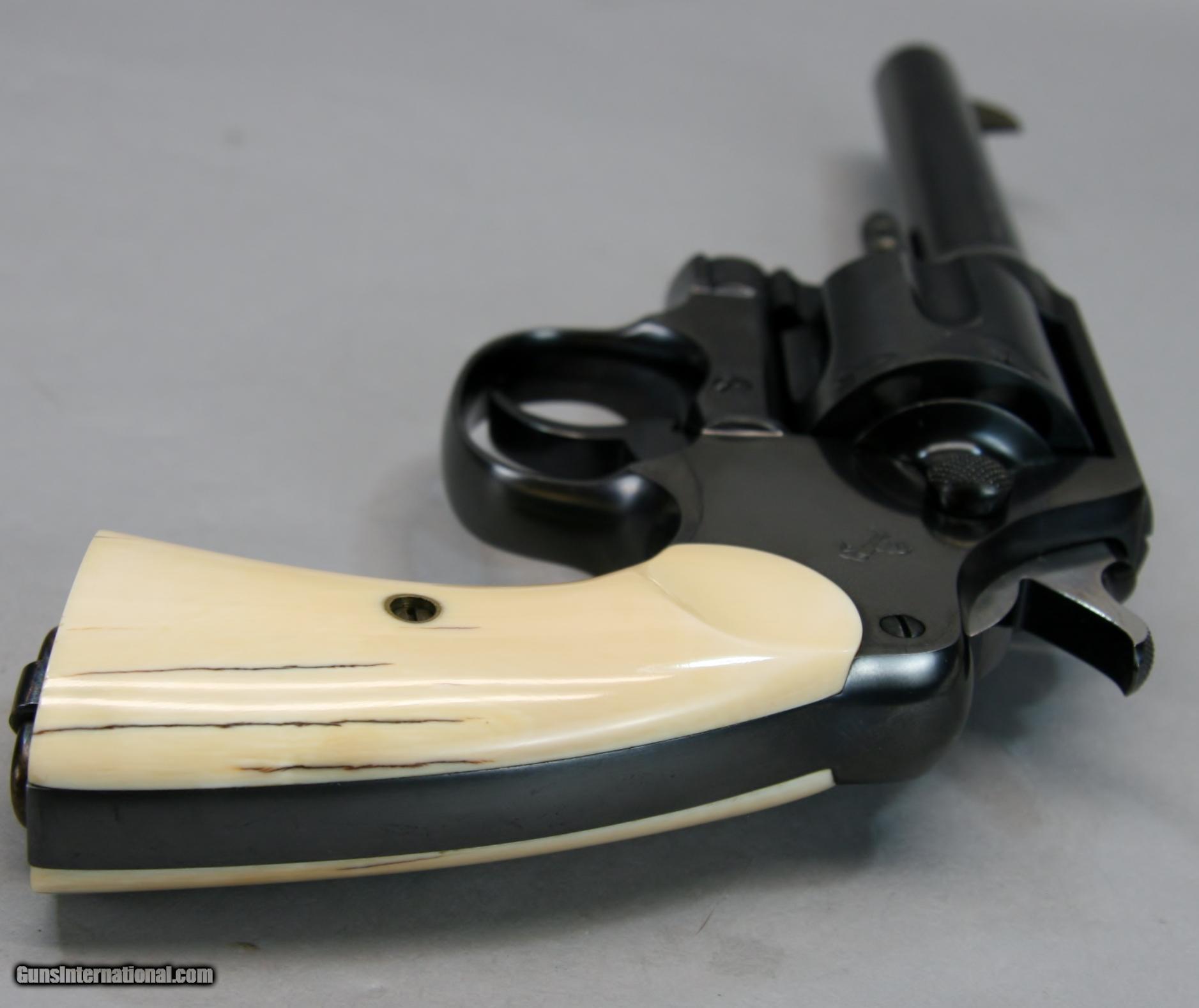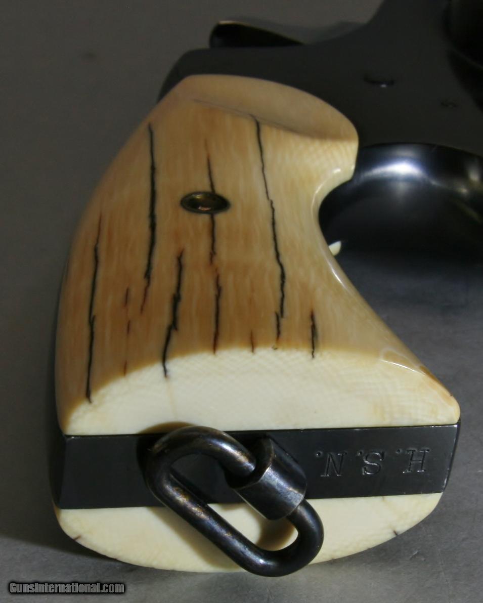Description: This Colt New Service Revolver was Manufactured in 1928, and was fitted with beautiful old Ivory grips and has the monogram “H.S.N.” stamped on the butt. The finish is beautiful, all original with no flaws, perhaps 99% - 100% condition. It may have been test fired a few times, the bore is as new. The Ivory grips are well fitted and add significant appeal to this old classic revolver. A Colt historical letter may provide basis for some historical research. Clearly this was a gun owned by a prominent citizen. This is a fantastic investment grade firearm and a great old Colt that would enhance any collection. .45 Cal. With a 5 ½” barrel. Serial Number 327586. FFL Required. Beaver Creek Arms TERMS & CONDITIONS Objective: As a collector of 35 years and Licensed Firearms Dealer since 1989 I have a clear definition of a satisfactory transaction. I will be paid as we agreed to, and you will be satisfied with your purchase. My goal is to establish a client list of satisfied repeat customers who will recommend me to other collectors. It’s just that simple. Exiled Saudi princes with secret funds needing change from an over paid purchase need not apply. Notice: ALL Federal, State, & Local firearms laws will be followed. I will take NO shortcuts in the process of a legal sale or transfer, so please don’t ask. SHIPPING: Normally shipments are made via U.S.P.S. Priority Mail, Insured, with a return receipt. Typical Packing, Shipping and Insurance cost for a handgun is $30.00, and for a Long Gun is $45.00. Checks are to be made out to “Steve Clark” Address: 380 Beaver Creek Road, Dillsburg, PA 17019 Availability: All items are in stock and available for immediate shipment. Please call or email and an Item will be held up to a week with your Name, Address, & Phone Number. Items marked Reserved are being held for awaiting payment or on layaway. If you are interested in a reserved item, please call or E-Mail to be placed on a backup list. FIREARMS: Modern firearms, post 1898, can only be shipped to a Type 01 Federal Firearms License address. Curio-Relic firearms, as defined by the BATF list, can usually be shipped to a Type 03 Collectors License address. Some states have additional restrictions such as CA, CT, DC, IL, NJ and NY. A signed valid FFL license copy either mailed or emailed will be required for shipment to only the license address. Antique firearms, pre 1898 do not require a Federal License. For purchase, a copy of a Government Issued Identification (Driver’s License, Etc.), showing date of birth and current address will be required. GUARANTEE: Your complete satisfaction is assured, see objective above. If you are not satisfied, please contact me within 3 days of receipt. Please don’t fire the weapon, safety, function and accuracy are NOT Guaranteed. Any weapon offered by Beaver Creek Arms is never test fired nor is there any representation the gun is functional and safe to fire. These guns are sold for collectors and only represented as used firearms that must be checked by a competent person, observe all the necessary safety precautions prior to attempting to load and fire one of these weapons RETURNS: Returns must be made within 3 days of receipt. They must be received in exactly the same condition with no parts exchanged. If it has been altered, damaged, or fired, a refund will not be made. Packing, shipping and insurance cost will not be refunded. All layaway purchases are returnable for merchandise credit only. Sales: All sales are made with the buyer’s full acceptance of the stated terms of sale. All sales are made in strict compliance with all Federal Firearms Laws. No items contained in thissite are offered for sale where prohibited by any Federal, State or Local laws. By ordering, the buyer certifies that their purchase will be in full compliance with all Federal, State and Local laws. All transactions shall be deemed to occur in Pennsylvania regardless whether by telephone, mail, internet or the physical location of the buyer. All transactions will be subject only to Federal and Pennsylvania State law. Any disputes will be resolved in a Pennsylvania Court. PAYMENT: Bank check, Personal check, and Money Orders are preferred. Visa and MasterCard are accepted with a 3% processing fee. For Visa and MasterCard orders please provide the account number, code number, expiration date, name on card, phone number and card billing address. This information can be phoned in, or E-Mailed. All orders must be paid in advance, C.O.D. orders are not accepted. Checks, both Bank and Personal must clear before the order will be shipped, usually a 2 week delay. LAYAWAYS: A 20% deposit is required. Balance is due in 60 days. Deposits are non-refundable and are forfeited after 60 days. Layaway sales are returnable for merchandise credit only. SALES TAX: Pennsylvania state sales tax is 6% for in state purchases. The payment of other states sales tax, if applicable, for shipped items is the buyer’s responsibility. DISCREET: Client information will remain Confidential. Your privacy is protected. SOLD Curio/Relic: Yes |