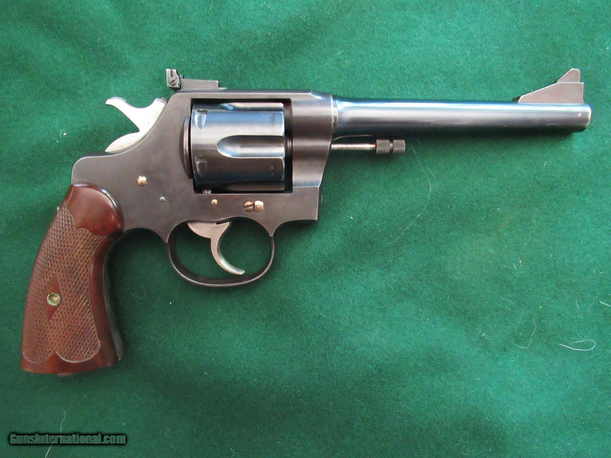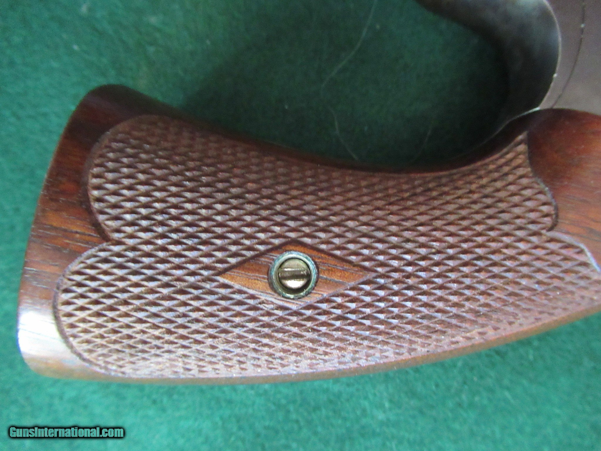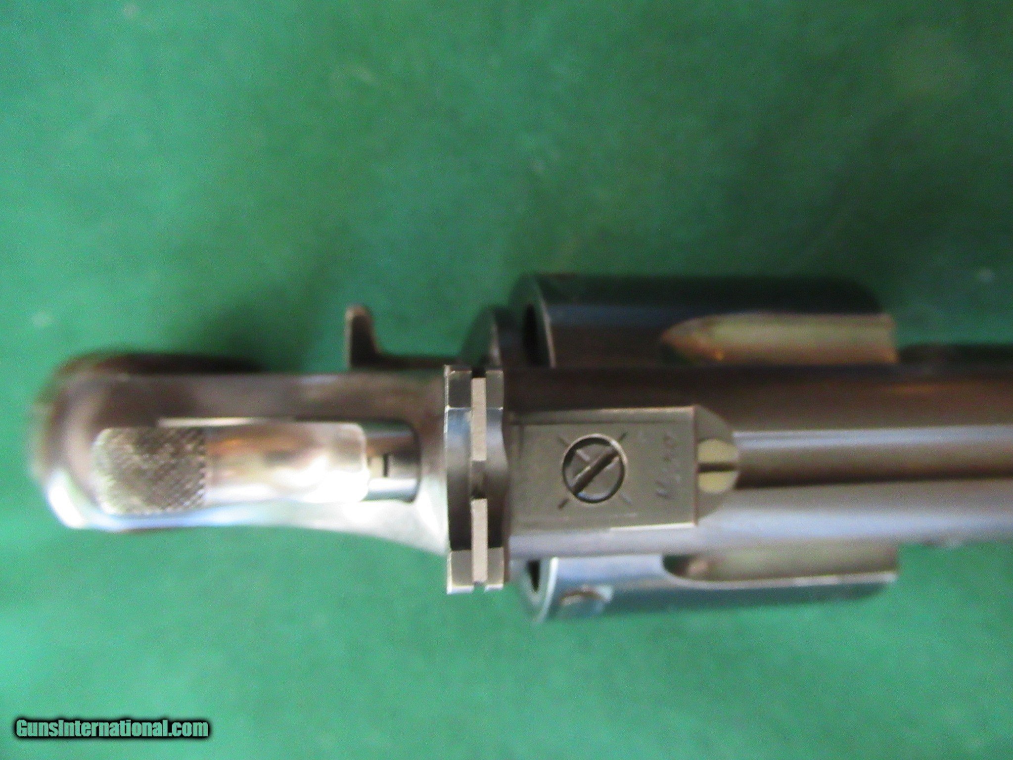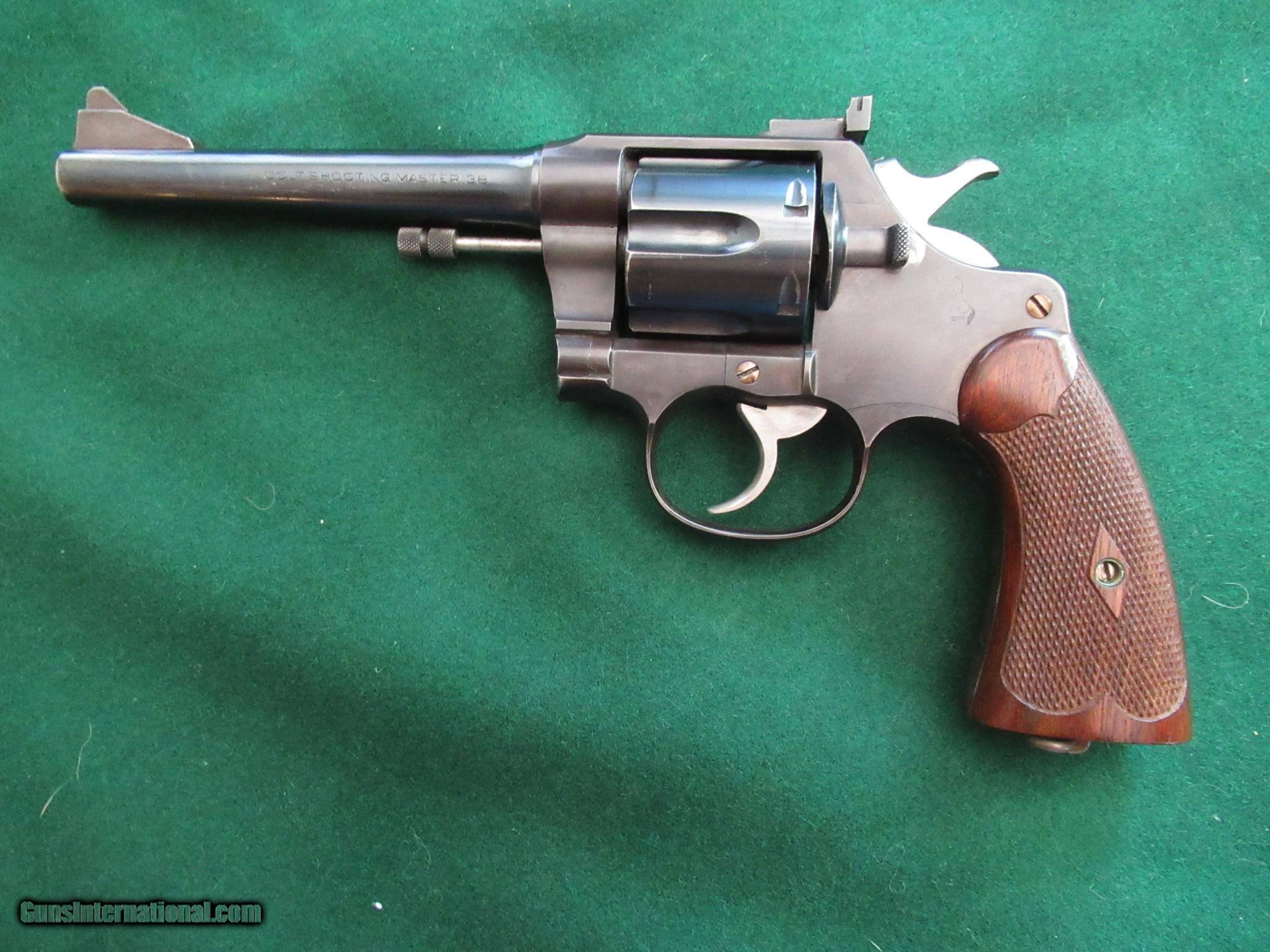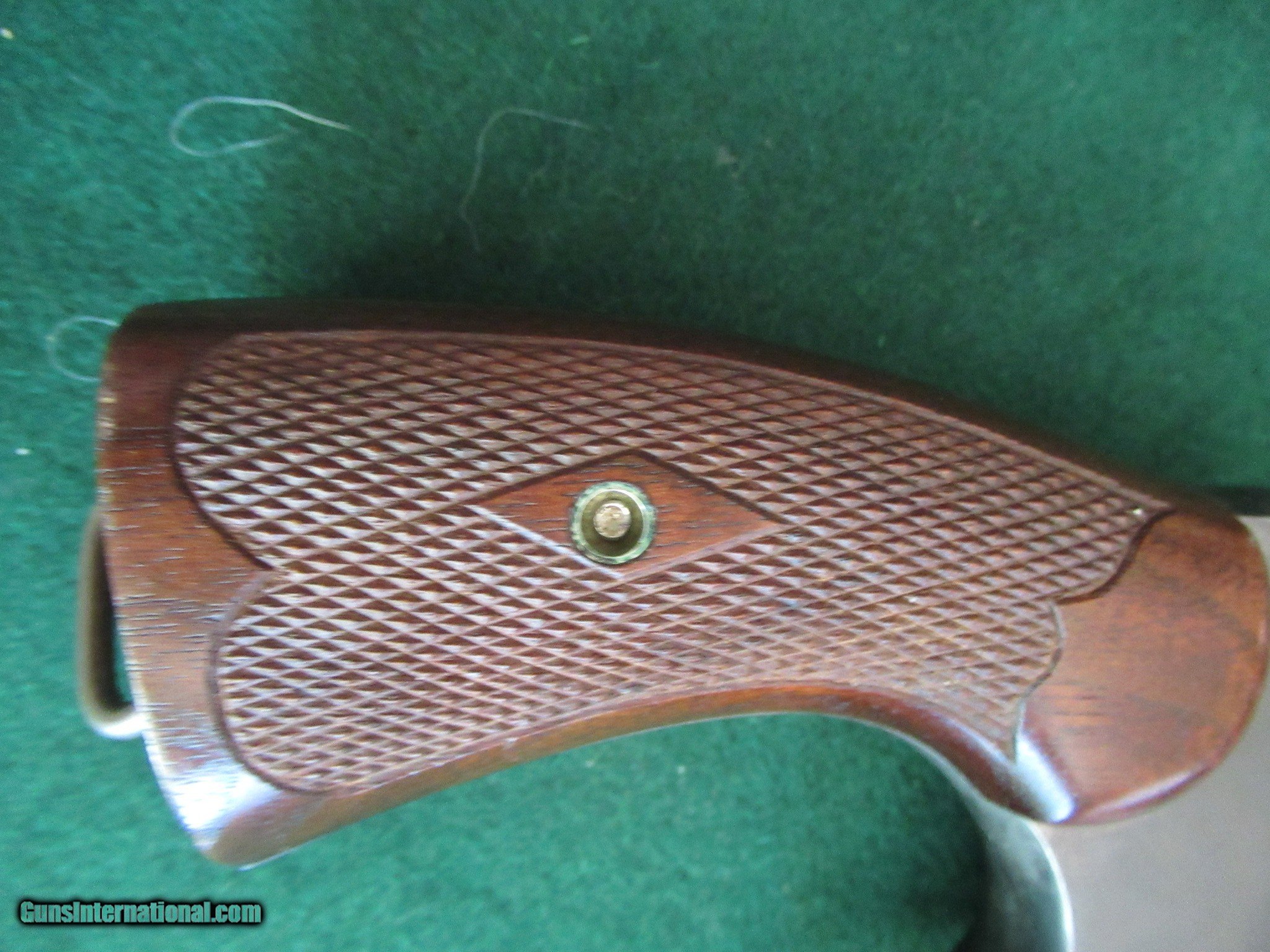 Description: A very rare and excellent condition SHOOTING MASTER model of the Colt New Service .38 Special revolver. This is an early model built in 1913 per the serial number on Colt's . All the metal and grips are in 98%+ condition with minimal wear to the blue at the muzzle and trigger guard edge. Near perfect original checkered Walnut grips. It has the 1 5/8" cylinder so was made for the.38 Spec. cartridge. Very faint turn mark and it has perfect cylinder timing and lock up. 6" barrel with ramp front sight and fully adjustable rear Micro sight. Smooth trigger face with checkered hammer and cylinder latch. Perfect bore and rifling. If you are looking to add to your quality Colt collection, this will fit right in. It is super rare and even more rare in this condition. Please call Raff at 760 497 7836 if you have any questions and always open to offers. Thank You for looking! PRICE LOWERED! SOLD Handgun Caliber: .38 Special Manufacturer: Colt Model: Shooting Master Serial Number: 59340 Barrel Length: 6 Condition: Excellent Metal Condition: 98% Wood Condition: Excellent Bore Condition: Perfect Action: Dbl Item Location: Arizona (AZ) |