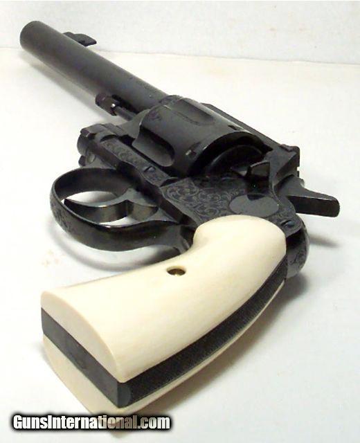 Description: Colt New Service Target Model; SN 18157; made in 1907; 455 ELEY-cal.; barrel professionally shortened to 6”; Refinished in blue & VERY FINELY ENGRAVED; REAL Ivory Grips; PERFECT action & bore; BEAUTIFUL 110 year old gun; FFL/C&R required for shipping; All items shipped fully insured Priority Mail- -Hand guns $30 --Long guns $45-- Spurs $30-- Knives, Swords & Sabers $30 (Texas residents please add 6.75% sales tax); return policy: three days inspection from the date the item is received; full refund of shipping both ways ONLY IF THE ITEM IS MISREPRESENTED. Note: International sales only as laws permit. Will ship C&R eligible items to C&R license. Antiques shipped without license to anyone EXCEPT New Jersey and City of New York where a FFL is required. SOLD Curio/Relic: Yes Manufacturer: Colt Model: 1907 New Service Target Serial Number: 18157 |
