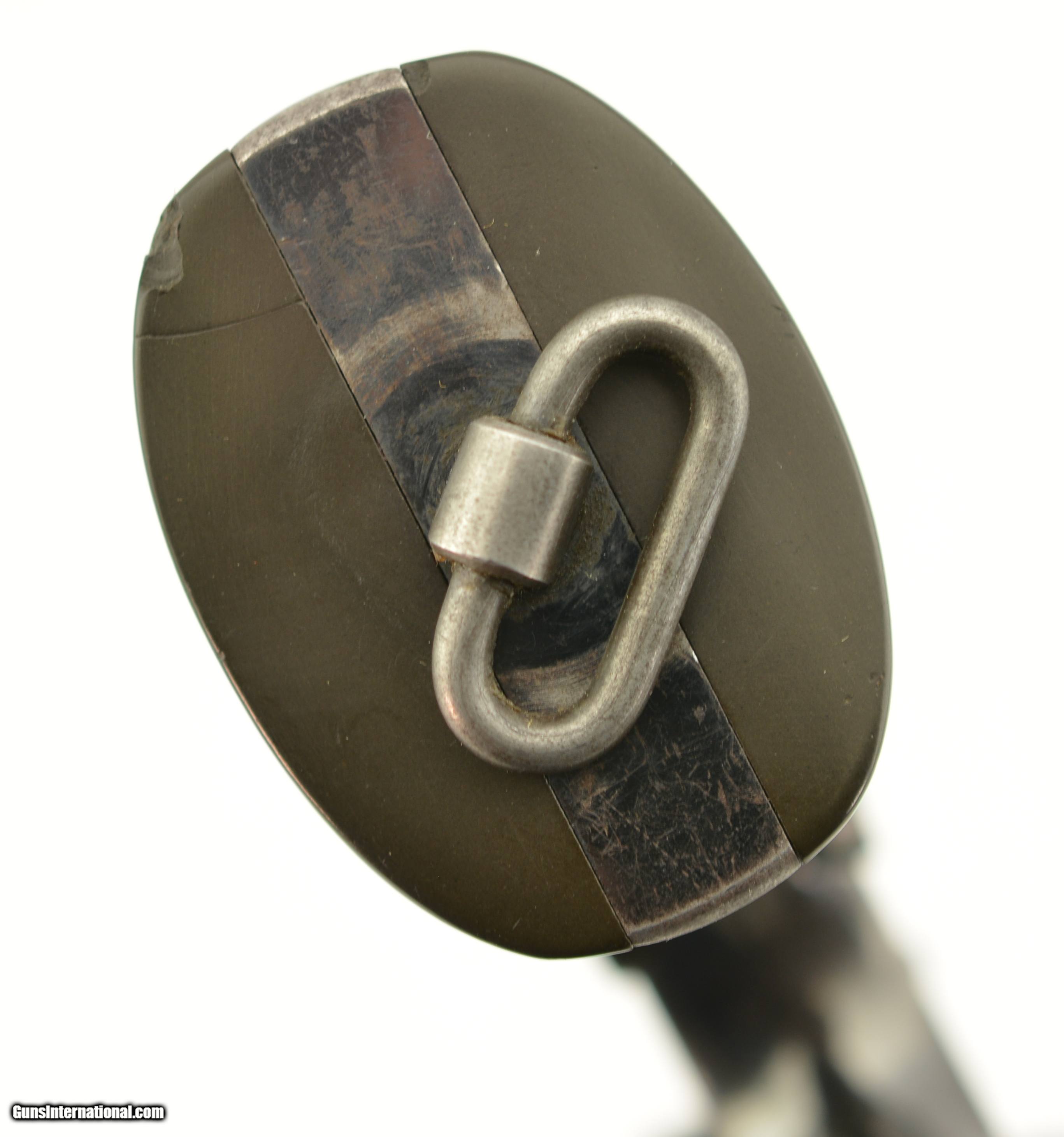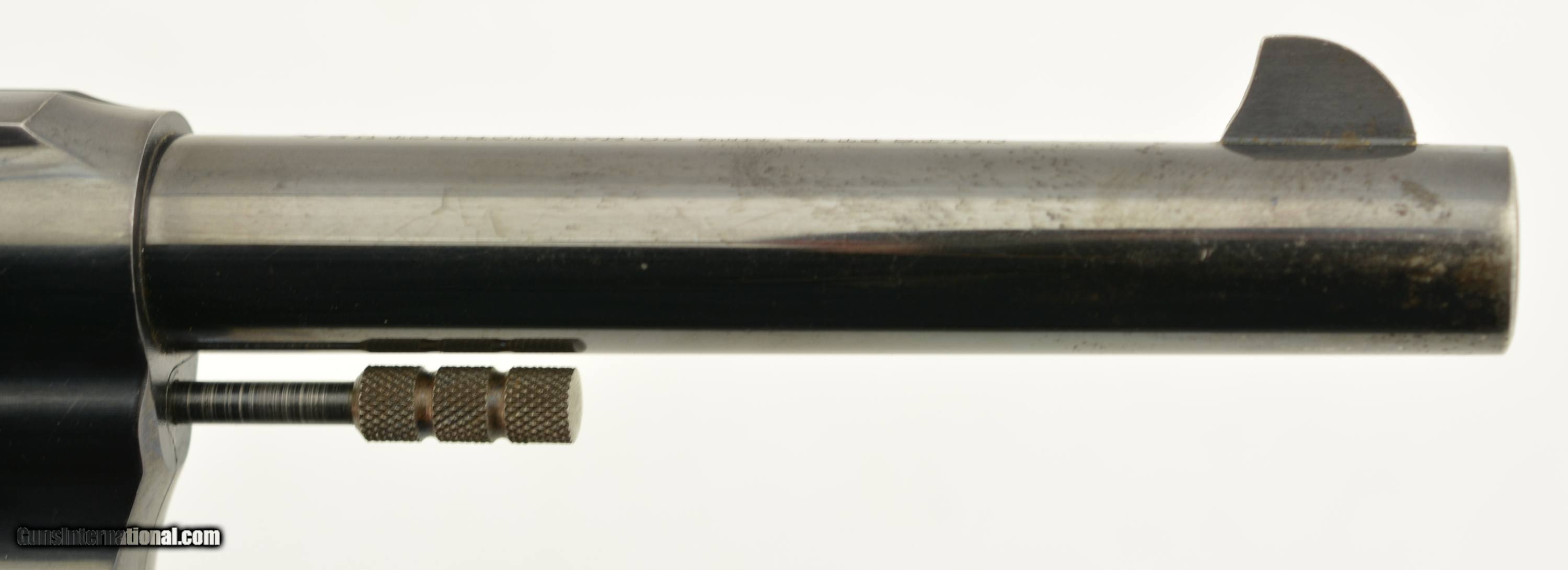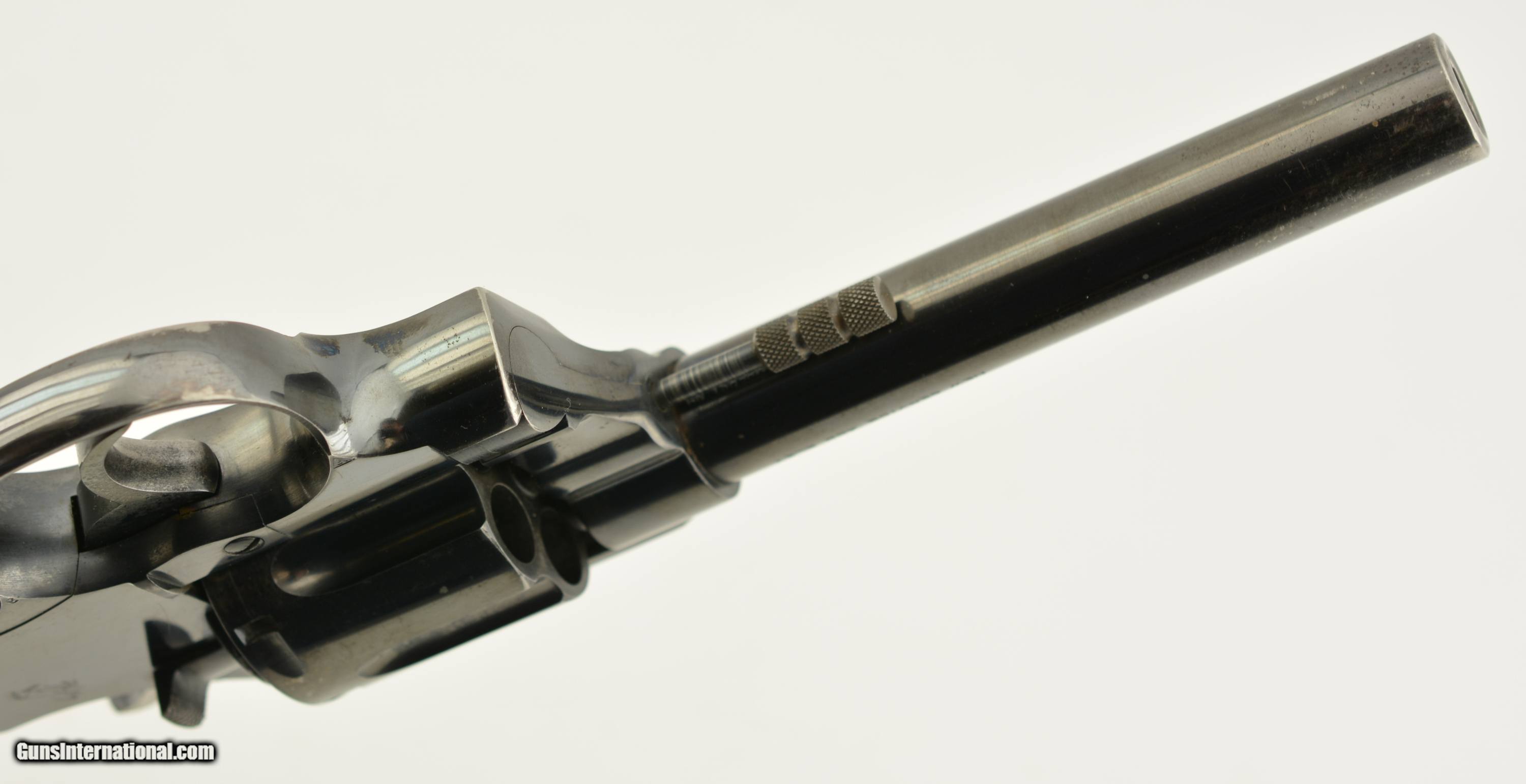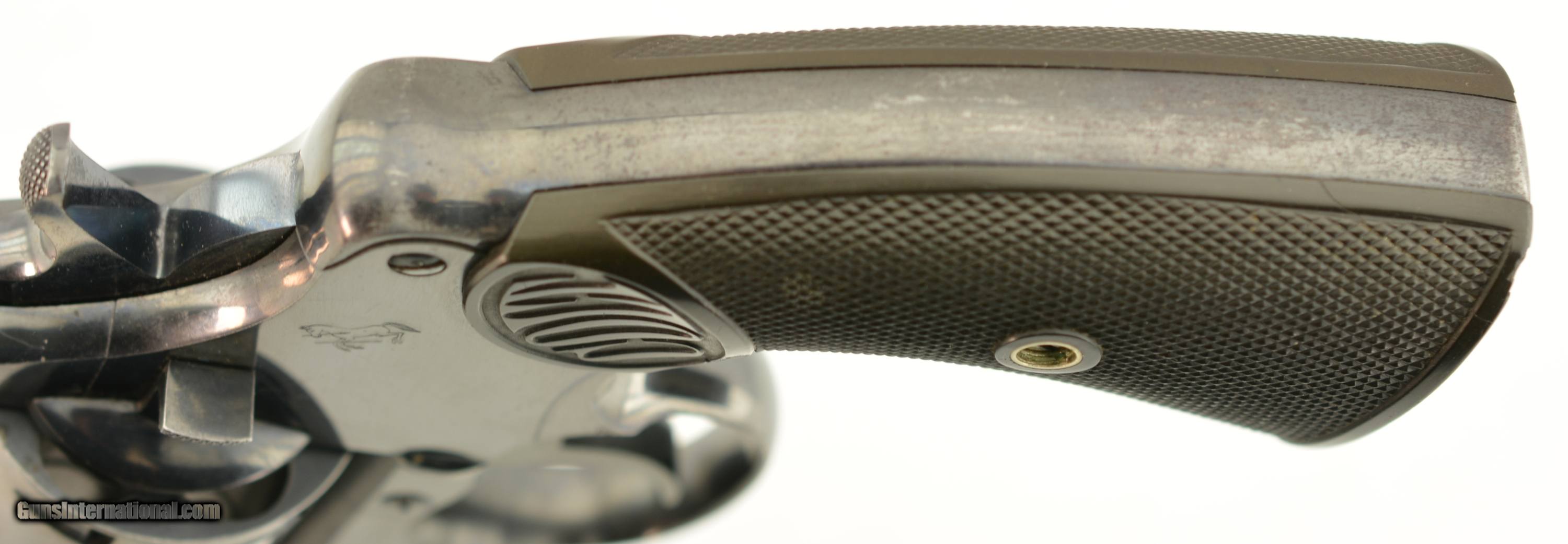 Description: Serial #71119, .455 Eley (Webley), 5 1/2" barrel with an excellent, bright bore. This handsome, 1914-made revolver retains 92-95% of the original commercial polish blue finish that has silvered slightly at the muzzle and on the projecting edges with some mild fading along the gripstraps . The cylinder has a few small areas of minor silvering between the flutes. This gun was sorced in Canada and there is a small unobtrusive import stamp on the underside of the barrel. The hammer has factory bright metal along the sides and retains most of the original blue while the trigger has some mild fading along the inside of the curve. The checkered hard rubber grips are in excellent condition with some flattening of the points and a small, barely noticeable repaired chip at the heel of the left panel. The lock-up is tight and the action functions flawlessly. Revolvers such as these were very popular with CEF officers as private purchase sidearms (these were not property stamped) and this is an excellent example of a large frame New Service overall. FFL or C&R SOLD Manufacturer: Colt Model: New Service Caliber Info: .455 Gauge Info: .455 |