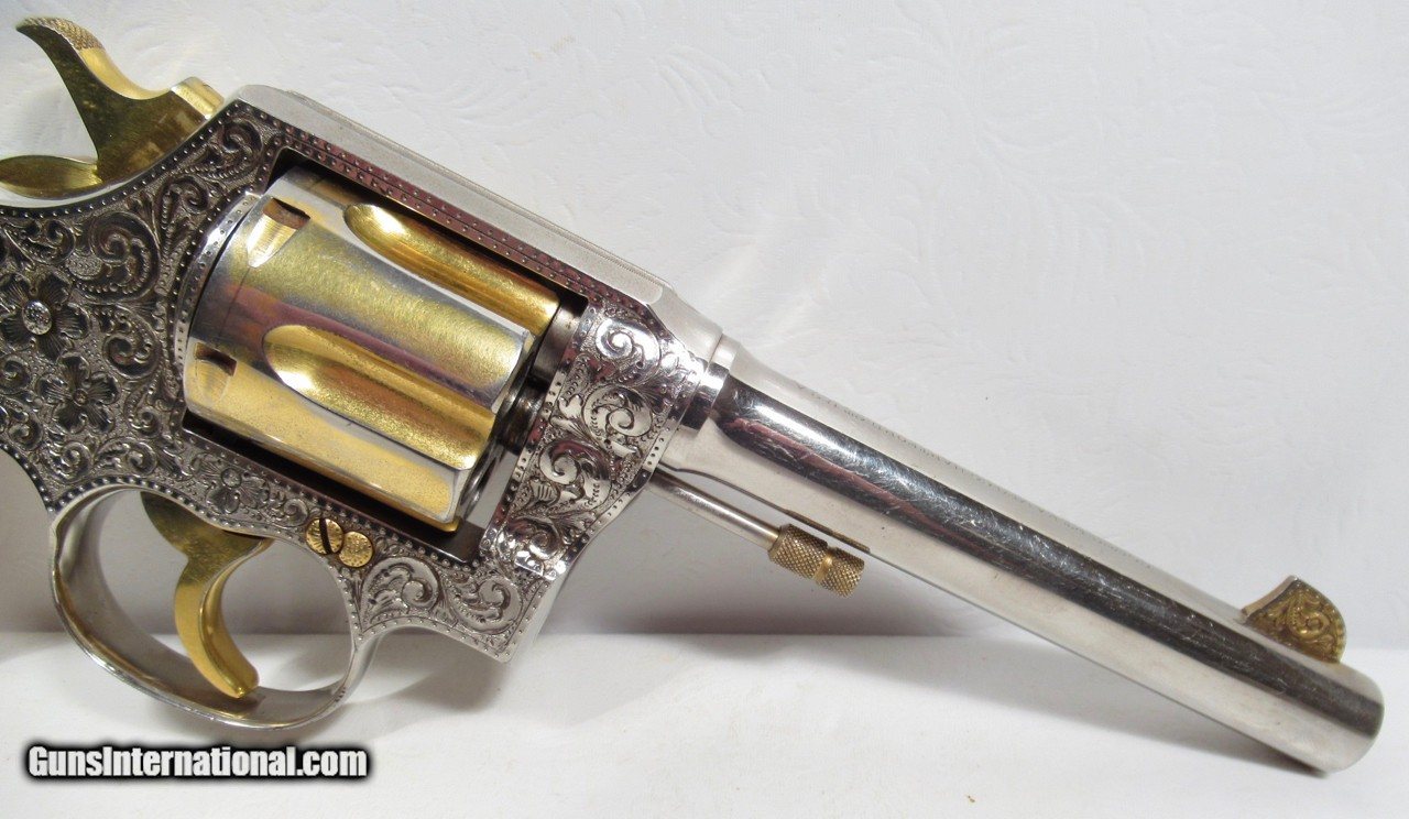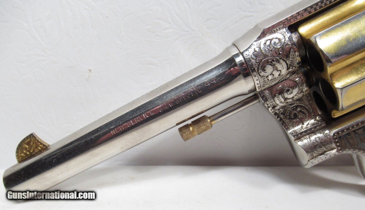 FANTASTIC ENGRAVED and HISTORIC COLT NEW SERVICE 44 RUSSIAN & SPECIAL REVOLVER from COLLECTING TEXAS – NICKEL and GOLD FINISH