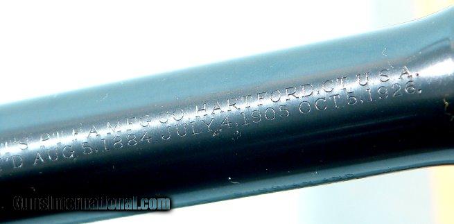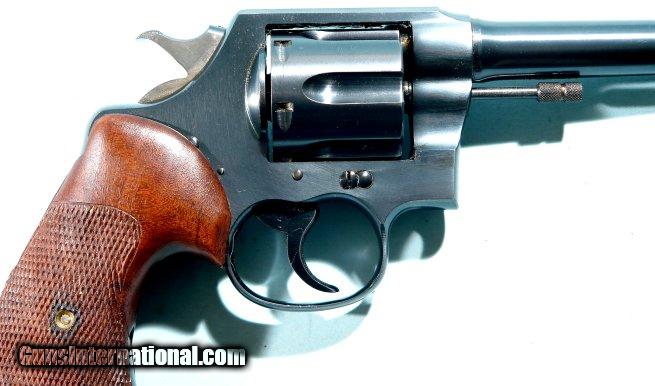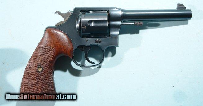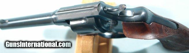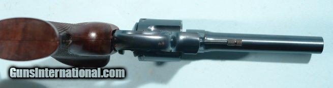 Description: NEAR NEW COLT NEW SERVICE .44 RUSSIAN & SPECIAL REVOLVER WITH ORIG. ROPER GRIPS & FACTORY LETTER. CA. 1931. 5 ½” barrel factory stamped “NEW SERVICE/RUSSIAN AND/S&W SPECIAL/44” on the left side. Very limited production and considered rare. 100% original and looks unfired. 99% plus original blue with no wear at all. One very small spot of dark flaking on the cylinder which is barely noticeable. Special order checkered trigger and special order Roper walnut checkered grips which are often seen on the New Service and are discussed in Timothy Mullin’s book “COLT’S NEW SERVICE REVOLVER” and with an identical pair pictured on page 252, fig. 385. Looks like it was in it’s shipping box until recently. With very interesting factory letter stating that it was shipped July 16, 1931 to Kruse Hardware, Cincinnati, Ohio in a one gun shipment, but that it was sold to Bolles, Brendamour Co. also of Cincinnati. Letter goes to stating it was returned in August, 1931 and subsequently re-shipped on Mar. 15, 1932 to Simon Atlas, New York City in a one gun shipment as well. SOLD Curio/Relic: Yes |