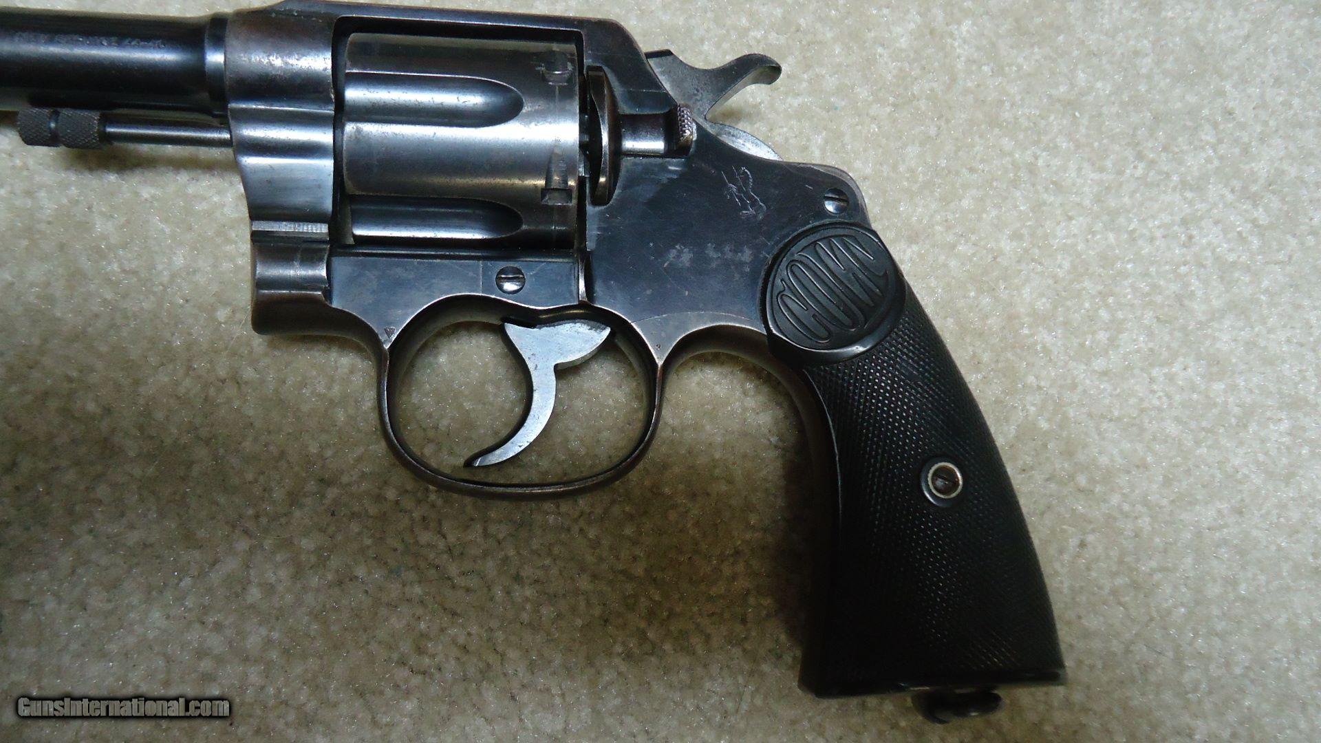Description: VERY HARD TO FIND NEW SERVICE .44-40 WITH DESIRABLE AND RARE 7 1/2" BARREL, MADE 1920, a really nice example that shows light normal use/carry but no abuse and was obviously well cared for, exc. original hard rubber grips show minimal wear and fit perfectly, fine deep Colt blue overall with normal light edge and muzzle wear, grip straps aged to plum/brown, beautiful fire blue on the hammer back and trigger sides, all sharp markings, light thinning of the blue on the rear right side of the frame, unaltered front sight, lanyard swivel intact, very tight action and bright exc. bore, these long barrel .44-40s are really to find especially in this nice condition. SOLD Curio/Relic: Yes Manufacturer: Colt Model: New Service Serial Number: 313XXX Caliber Info: .44-40 Condition: fine+ Barrels: 7 1/2 |
