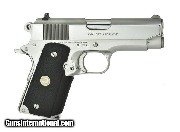 Colt Officer’s .45 ACP caliber pistol. Bright stainless model, 1980’s vintage. Excellent condition.