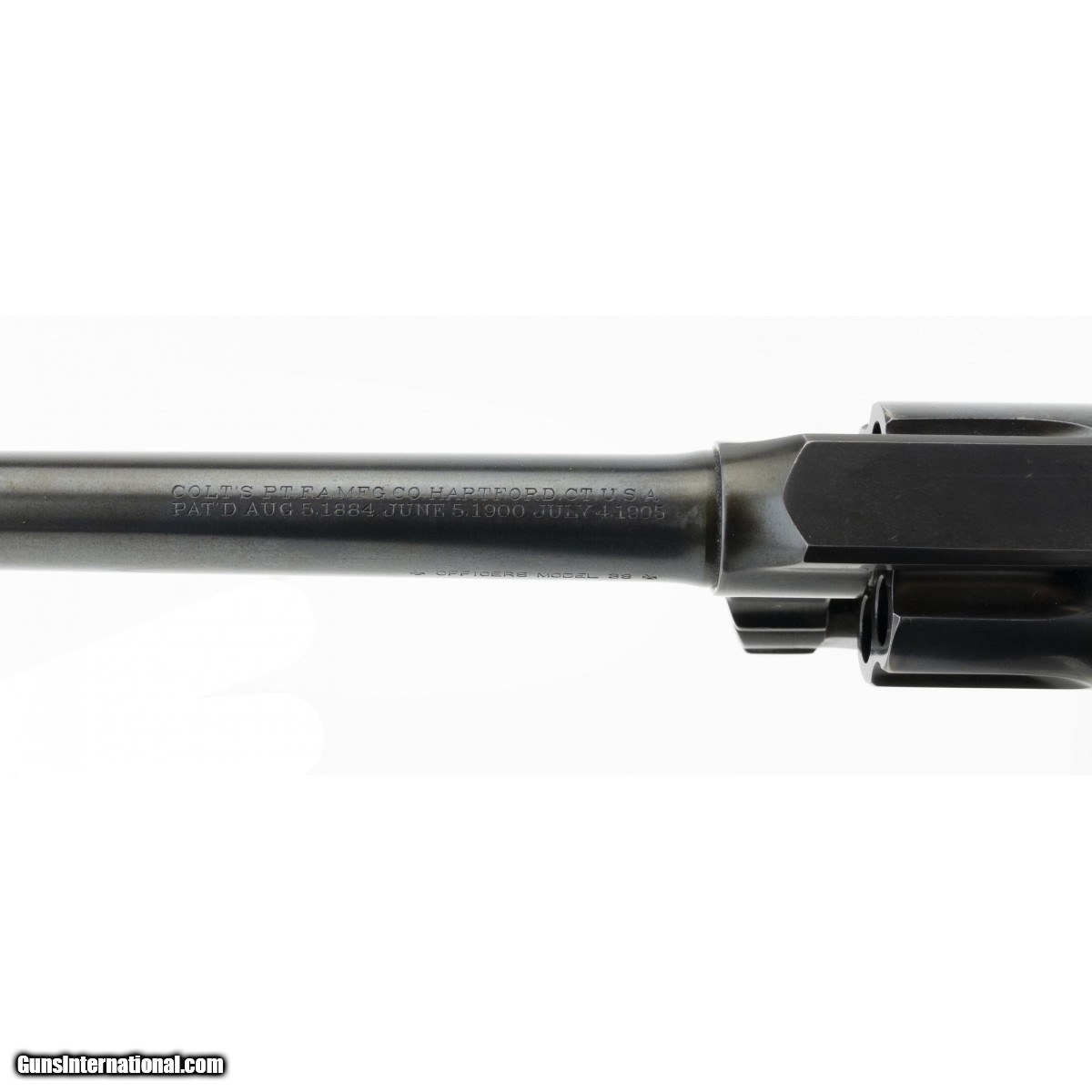 Description: " 2nd model Officers Model made in 1922. Side plate has been refinished; the remainder of the gun retains approximately 98% of it's original blue. Grips are very good, no cracks. Bore is excellent. Barrel is 7 1/2"". Very good plus overall condition. SOLD Curio/Relic: Yes |