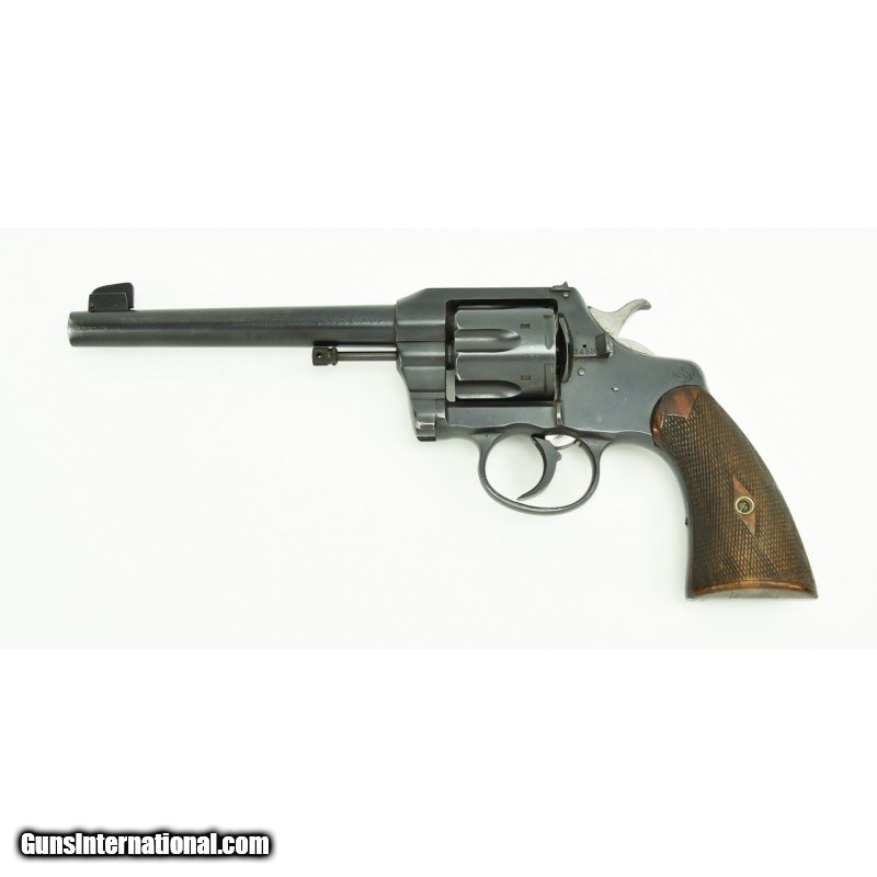 Description: " Colt Officers 1st Model .38 Special caliber revolver with a 6" barrel. Made in 1905. Metal has 97% of the refinish. Bore is very good. Grips are deluxe checkered with wear. SOLD |