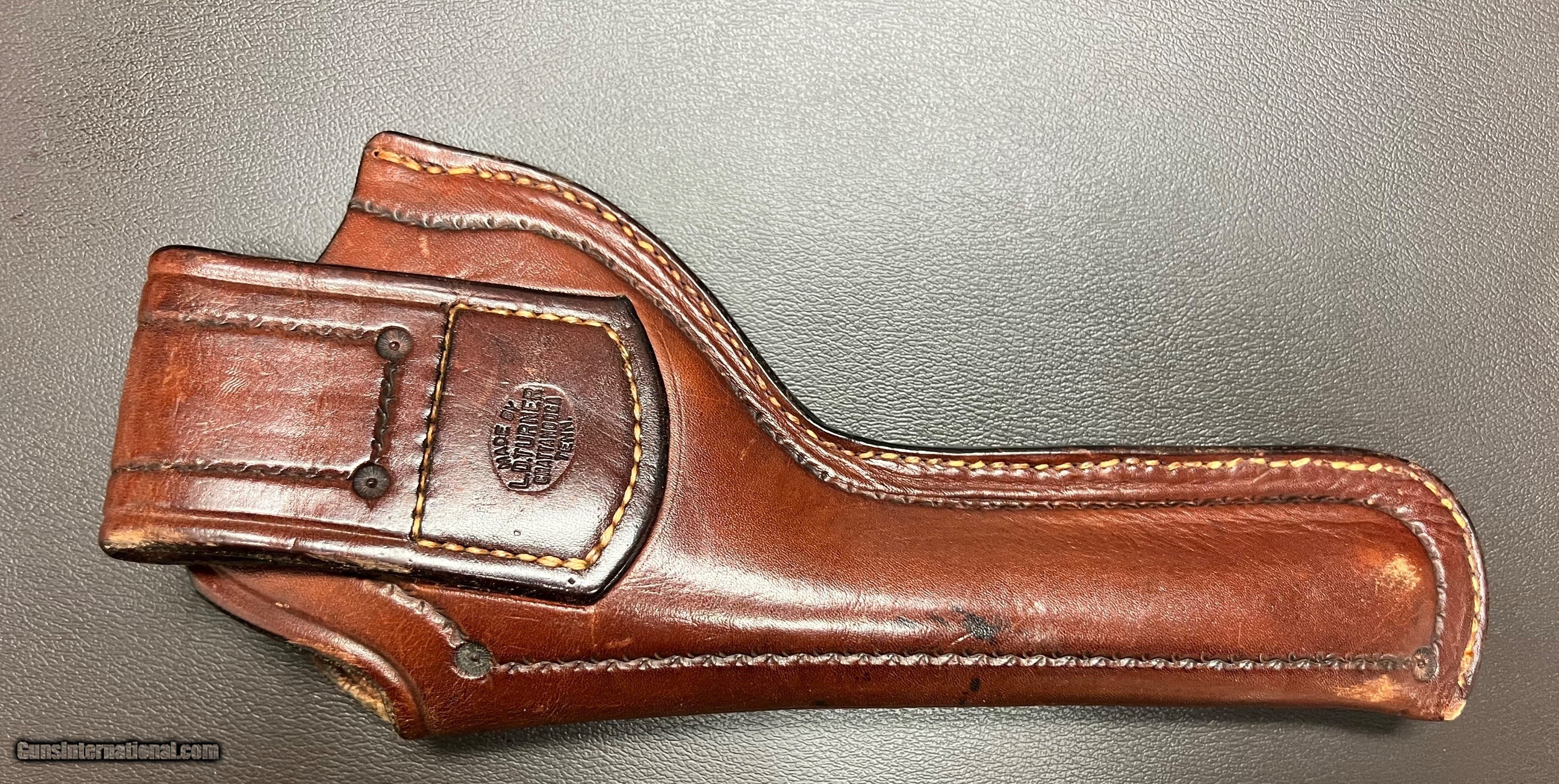 Description: Colt officers model target .22lr third issue 6" barrel with king adjustable rear sight and adjustable blade front sight Excellent bore checkered hammer, trigger, and cylinder latch Checkered walnut grips with Colt medallion Weight: 2lbs 6oz Almost all of the high polish blue remains with few small wear spots SN: 15170 Built in 1936 Excellent condition third issue Colt officers model .22LR target revolver with perfectly fit LD Turner Chattanooga TN period holster. This was the top of the line target revolver in its day and will be a great addition to any Colt collection. Curio/Relic: Yes Handgun Caliber: .22 Long Rifle Price: $1,200.00 Buy Now Contact Seller |