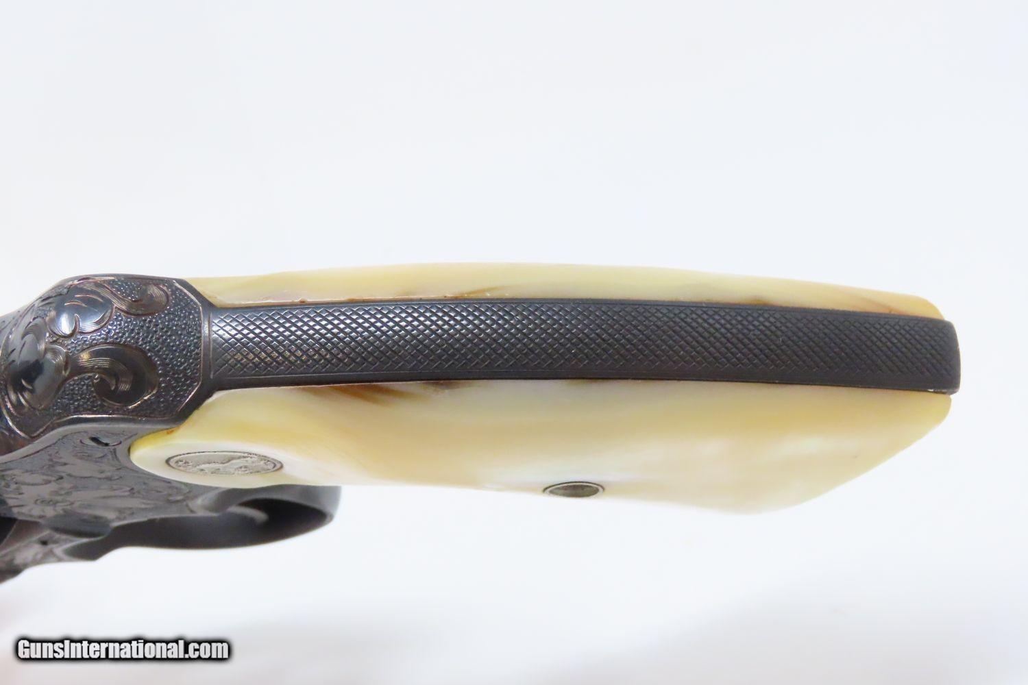 Description: 1941 LETTERED Engraved Mother-of-Pearl COLT OFFICERS MODEL .38 SPL Revolver SHIPPED to YOUNGSTOWN, OHIO in 1941! Here we present a Lettered Colt 3rd Issue Double Action Officer’s Model Revolver in .38 Special, manufactured in 1941 and shipped by itself to the Stambaugh-Thompson Hardware Company in Youngstown, Ohio. The letter lists this in .38 Colt but this is a typo and this revolver is actually in .38 Special. This Third Issue variant was introduced in 1927 and produced until 1949. This revolver is very finely engraved throughout, featuring large, heavy flower blossoms with punch-dotted backgrounds. Leafy scrolls adorn the barrel surrounding the roll markings. The backstrap is diamond checkered, as is the face of the trigger, and the rear of the cylinder release. The grips are solid mother-of-pearl with the rampant Colt medallions set in. The sights are nice target types. This is a gorgeous gun with a fantastic action: very smooth and relatively easy double action, and a short, crisp single action. In 1904, Colt manufactured their first medium frame double action revolver like the Colt Officer’s Model we have here. This was technically a variant of the original Colt New Army and Navy Series of 1892 to 1908. For 65 years they manufactured this handgun built on the “E” frame under several different names, one of them being the “Officer’s Model”. The Officer’s Model was the top of Colt’s revolver line as a target revolver until the introduction of the Colt Python in 1955 and in 1969 the Colt Officer’s Model was dropped from production. The overall condition is very fine. The action is excellent. Both grips are in excellent shape remaining fiery in appearance! The bore is bright and reflective. A one-of-a-kind Colt Officer’s Model! This firearm is classified as a Curio & Relic. Barrel is 5 inches. Caliber: .38 Special Overall condition as seen in photos. Very Fast. Very Safe. FREE SHIPPING. Will need to be sent to your local FFL or C&R licensee. This firearm is classified as a Curio & Relic. Guaranteed AUTHENTIC & Includes CERTIFICATE OF AUTHENTICITY. ancestryguns $3685 #210243 SOLD Curio/Relic: Yes |