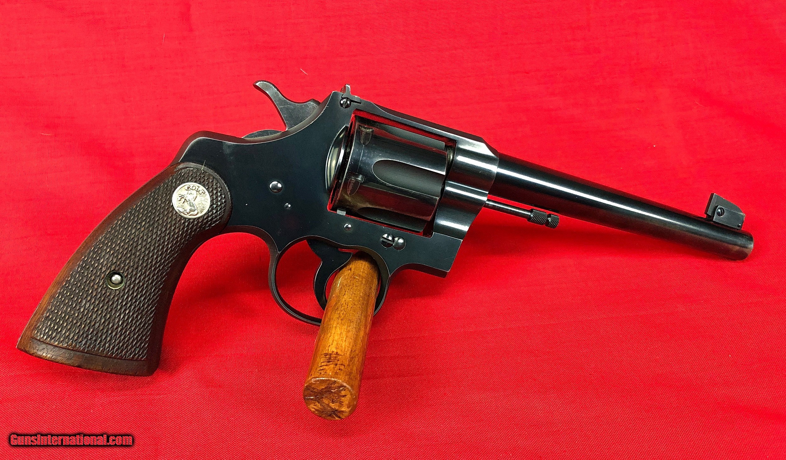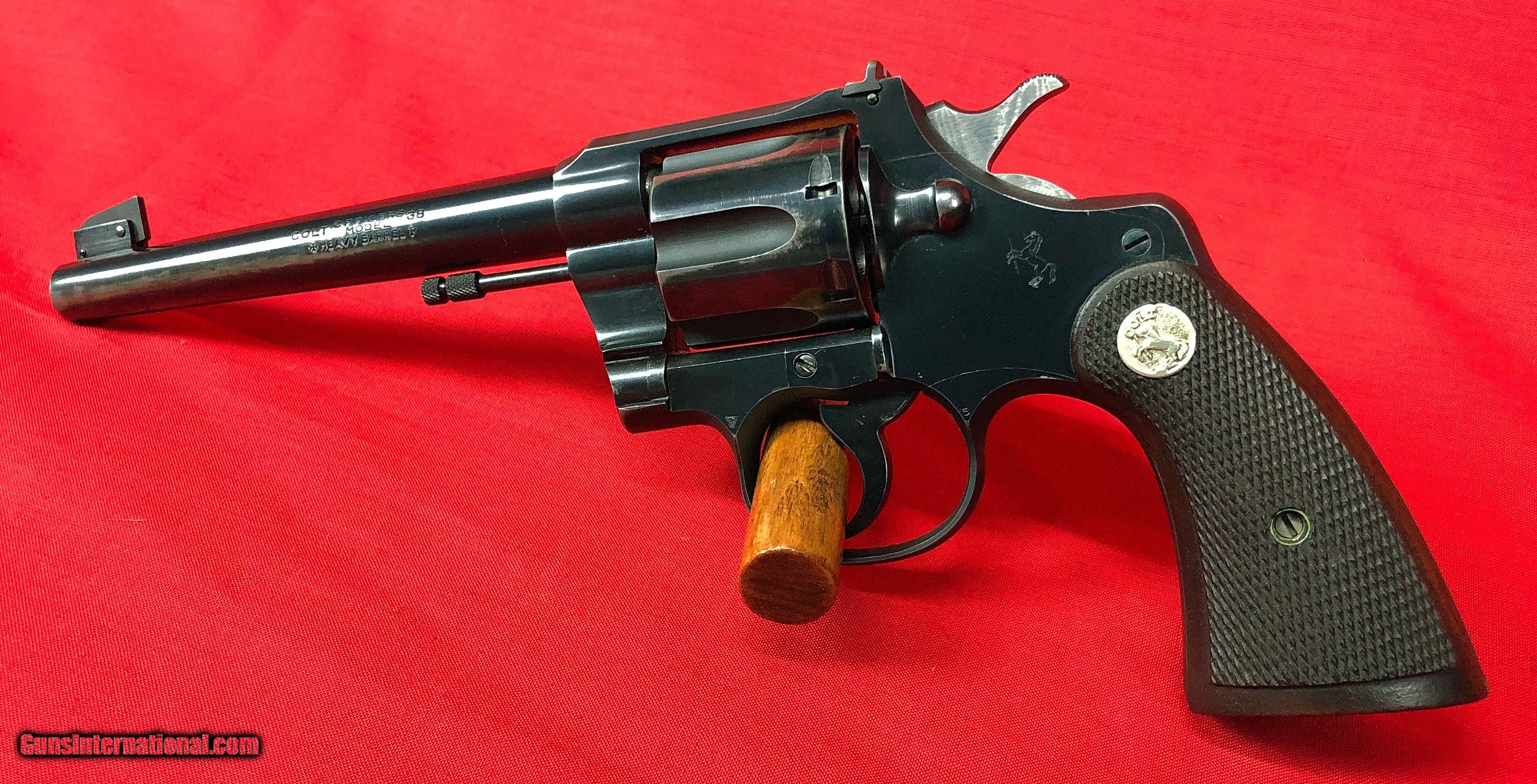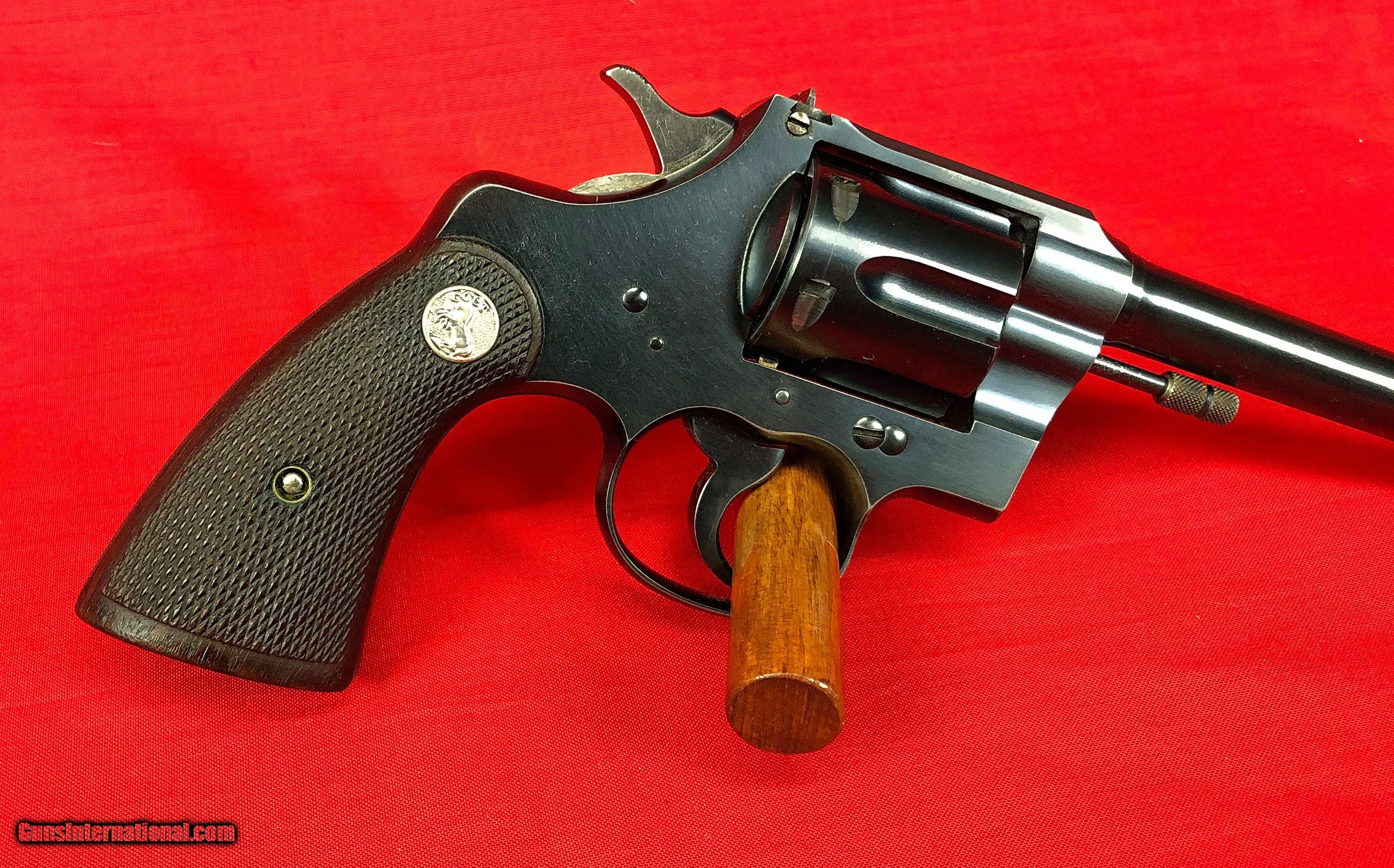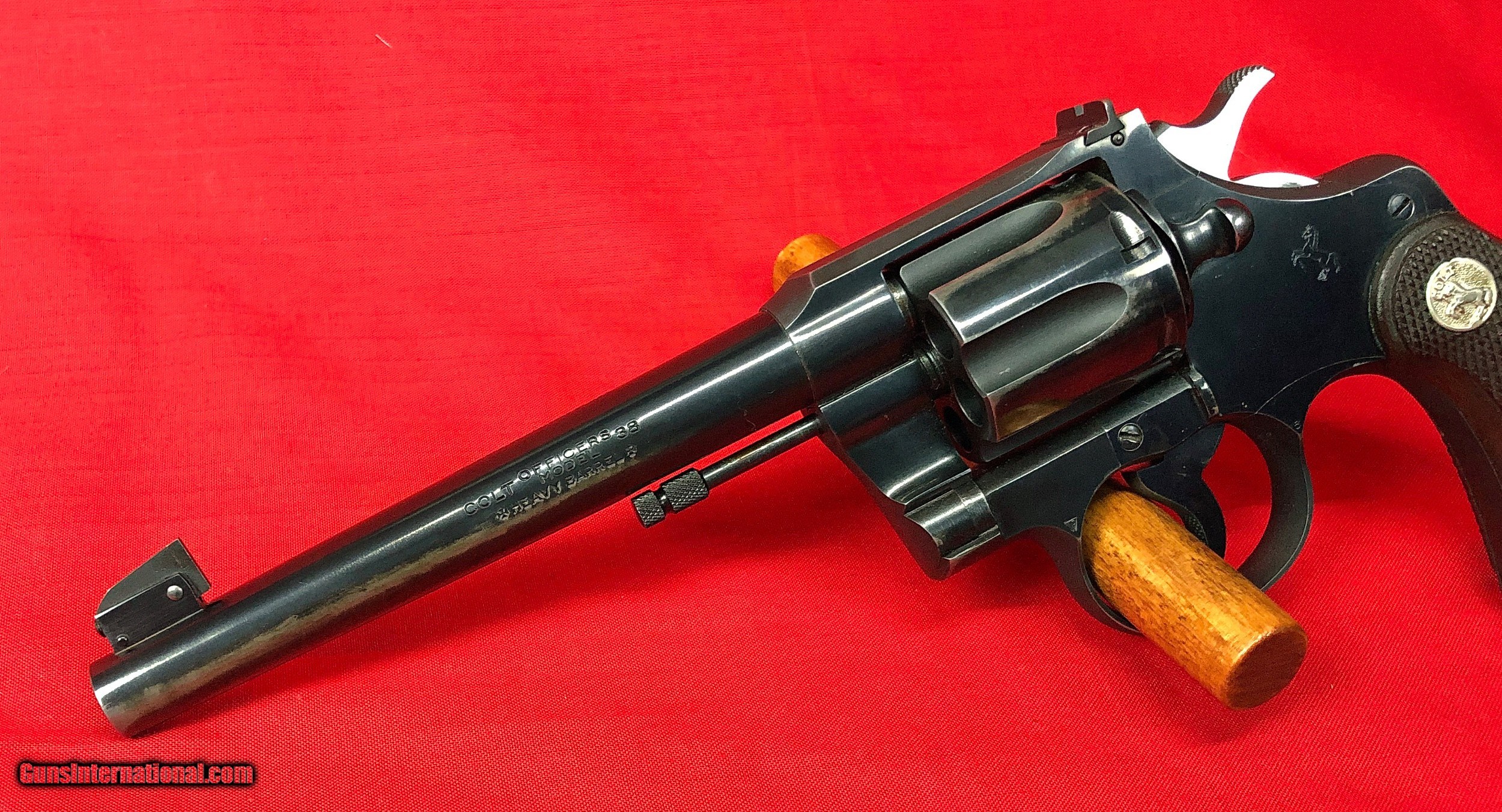Description: Cased pair of Colt Officers Model Target Revolvers Both revolvers are Third Issue Colt Officers Model Target 22LR Made in 1933 6 inch barrel with factory adjustable front and rear sights Excellent mechanical condition with bright shiny bore Factory checkered backstrap Colt Officers Model Target 38 Special Made 1948/1949 6 inch Heavy Barrel Adjustable rear sight and Patridge front sight Nice positive checkering to walnut grips Excellent mechanical condition with bright shiny bore Abercrombie & Fitch leather handgun case in very good condition Case locks securely and key is included Included in case are the following items: One box of original Peters Dustless 38 special ammunition Two boxes of Remington Kleanbore Hi-Speed 22LR ammunition One oil bottle 2 Cleaning rods Test Targets Vintage Winchester Gun Grease Case handle is a replacement Initials LMS embossed under handle Ships to FFL or C&R All firearms should be checked by a gunsmith Call or text Paul at 601-397-8054 Please see all my listings SOLD Curio/Relic: Yes |
