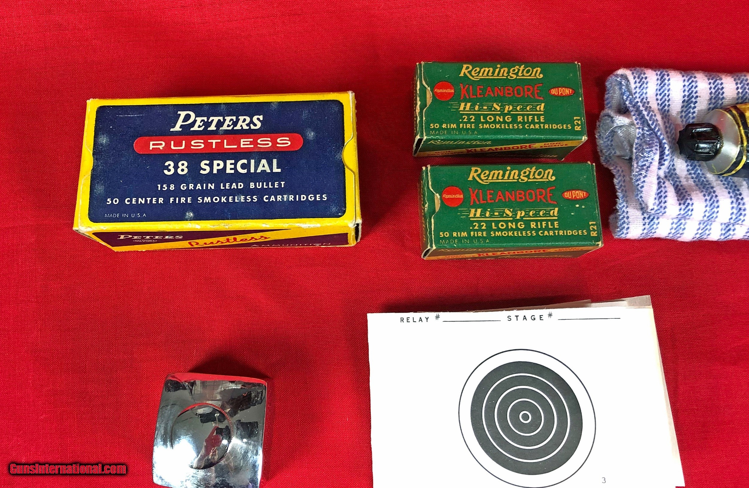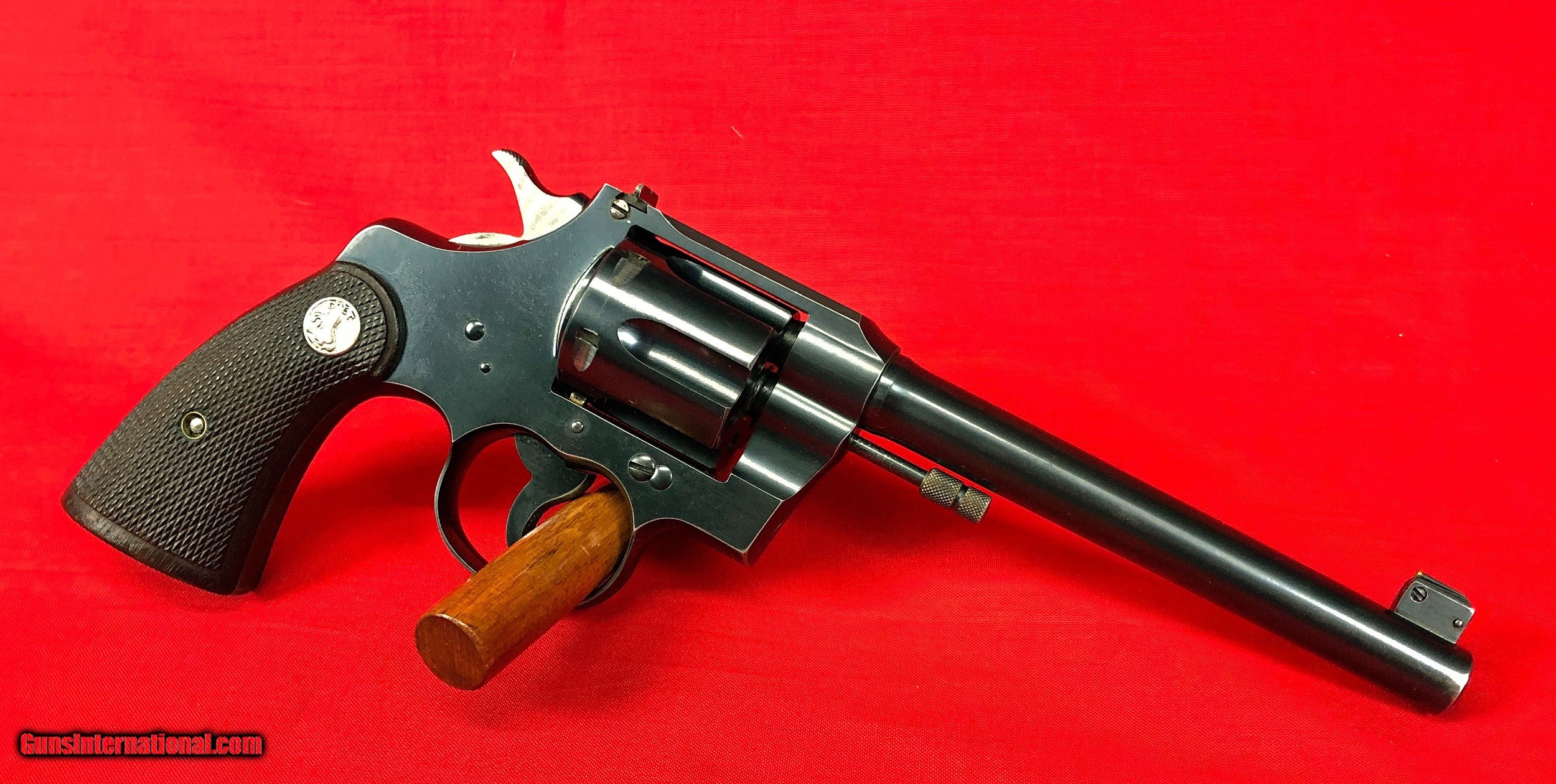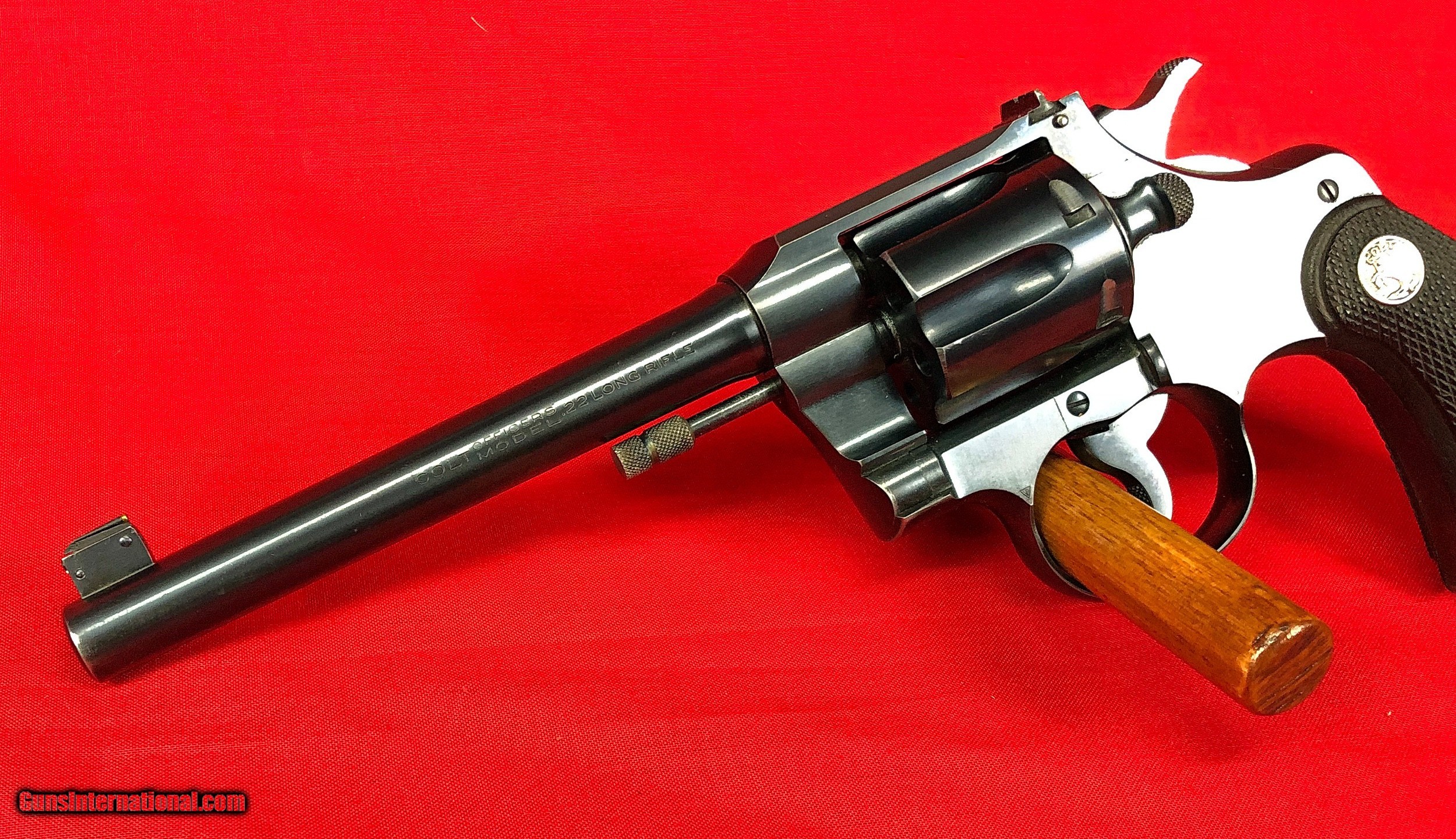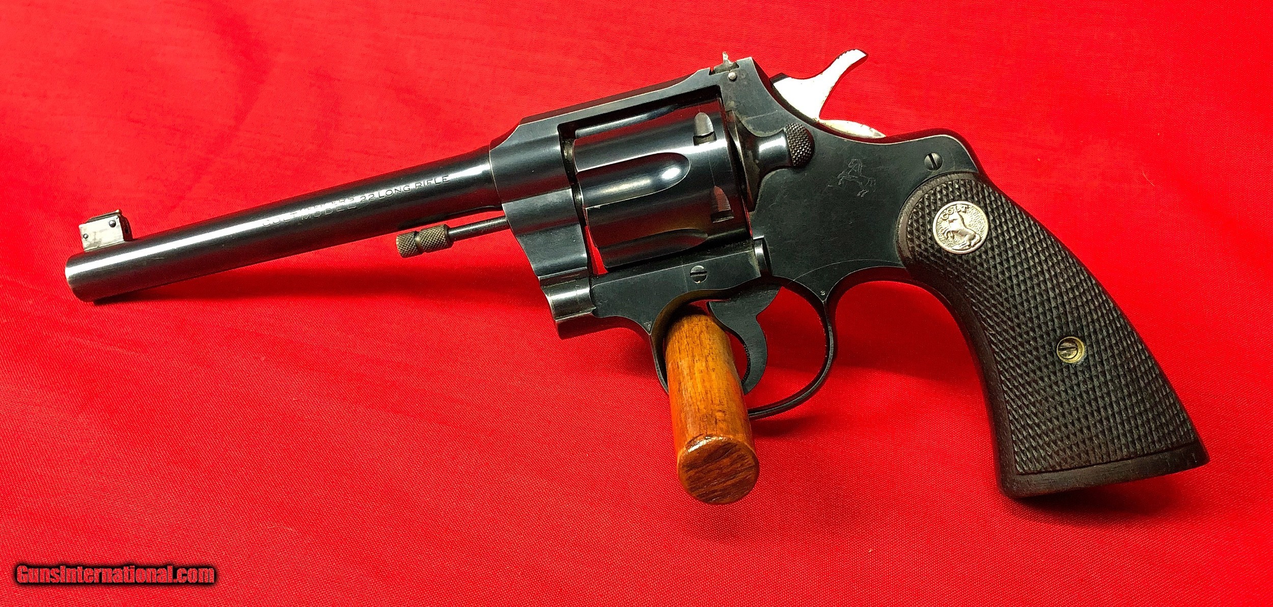 Description: Cased pair of Colt Officers Model Target Revolvers Both revolvers are Third Issue Colt Officers Model Target 22LR Made in 1933 6 inch barrel with factory adjustable front and rear sights Excellent mechanical condition with bright shiny bore Factory checkered backstrap Colt Officers Model Target 38 Special Made 1948/1949 6 inch Heavy Barrel Adjustable rear sight and Patridge front sight Nice positive checkering to walnut grips Excellent mechanical condition with bright shiny bore Abercrombie & Fitch leather handgun case in very good condition Case locks securely and key is included Included in case are the following items: One box of original Peters Dustless 38 special ammunition Two boxes of Remington Kleanbore Hi-Speed 22LR ammunition One oil bottle 2 Cleaning rods Test Targets Vintage Winchester Gun Grease Case handle is a replacement Initials LMS embossed under handle Ships to FFL or C&R All firearms should be checked by a gunsmith Call or text Paul at 601-397-8054 Please see all my listings SOLD Curio/Relic: Yes |