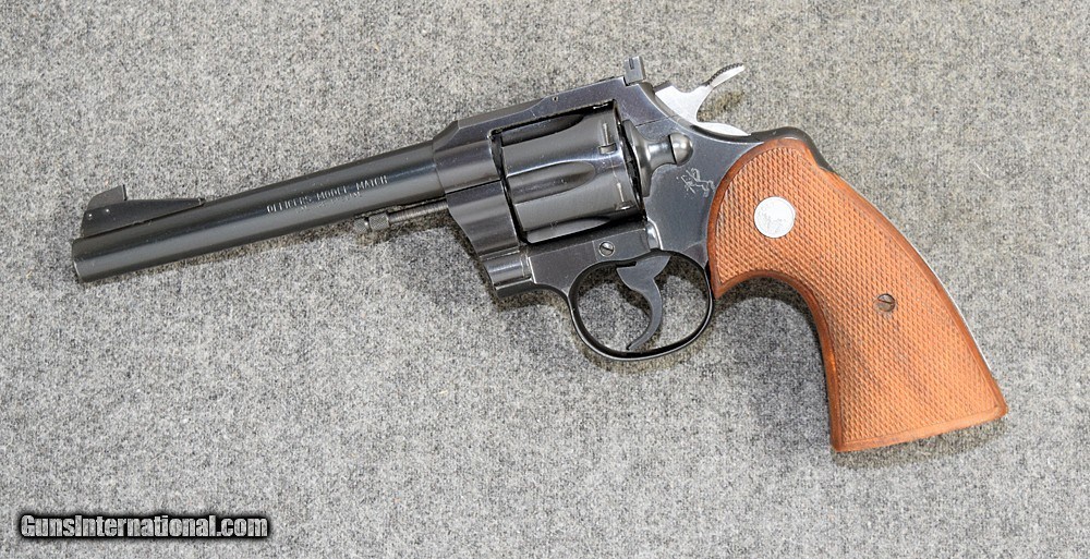 Description: Colt Officer Model Match 38 Special Serial #915826. This beautiful gun was made in 1966. The revolver comes with it's factory box and also the test target. This gun is in excellent condition with very clean blued metal finish and sharp full checkered grip panels. This model is one of the smoothest guns Colt ever produced. These guns were used in the top competition matches of their day. Please add 30.00 freight and insurance. SOLD Manufacturer: Colt Model: Officer Model Match Serial Number: 915826 Caliber Info: .38 Special Condition: excellent Metal Condition: excellent Barrels: 6 |