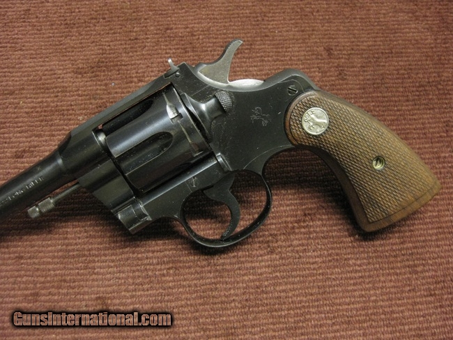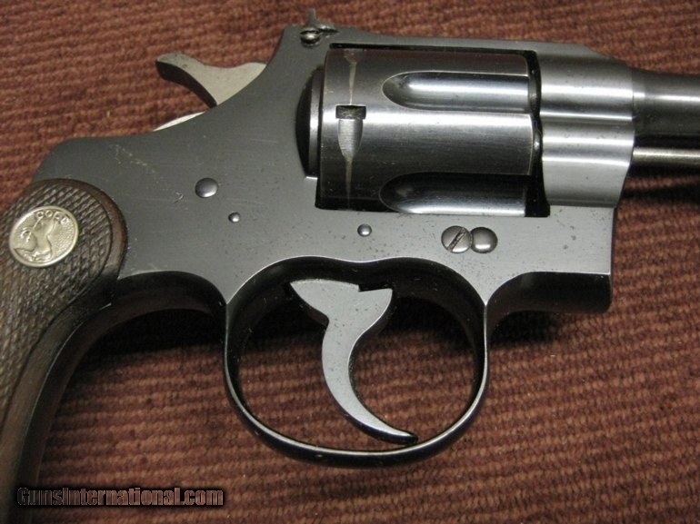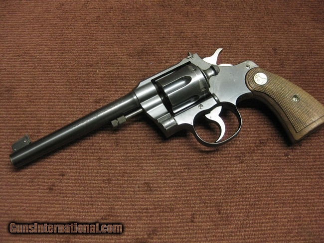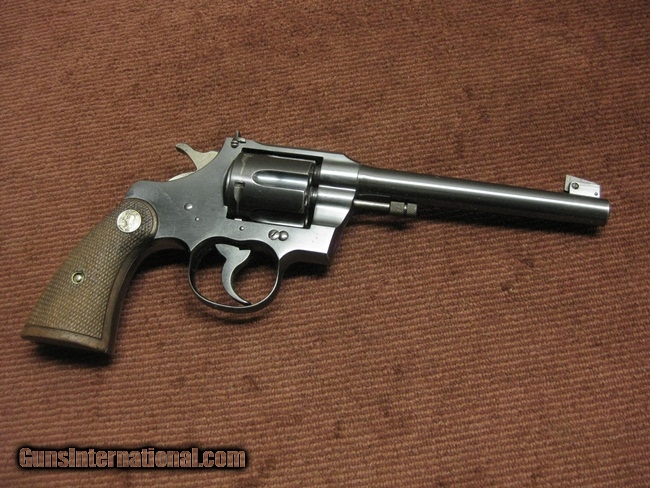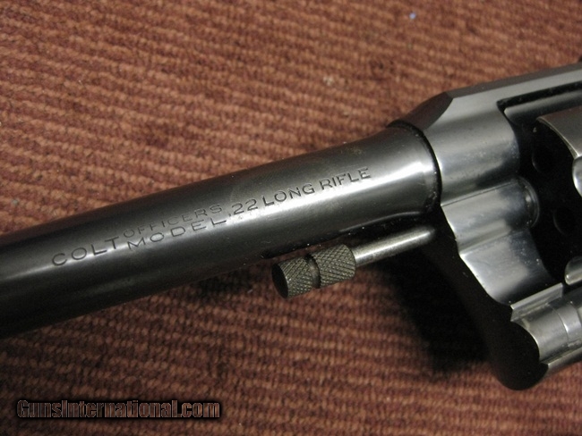 Description: Colt Officer's Model .22LR pre-war target revolver; made in 1937 (serial no. range 16,xxx); 6-inch barrel; target sights; excellent original blue and checkered Colt medallion grips; excellent bore; excellent timing and lock up. VISA/MC/DISCOVER/AMEX(add 3%), money orders, checks; $25shp. SOLD Curio/Relic: Yes |