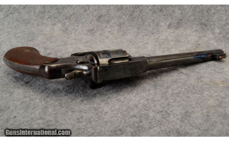 Description: This is a Colt Officer's model revolver in .38 Smith & Wesson Special. Barrel is 6 inches. Sights are an adjustable rear sight with paint around the edges, and fixed front sight with red paint on the bead. Metal is in good condition with discoloration on top front of barrel, bluing loss along bore of barrel, bluing loss and pitting on either side of receiver. Grips are made of wood. Comes with 2 speedloaders and speedloader pouch. Revolver is used but in overall good condition. SOLD Manufacturer: 1909. Caliber Info: .38 Smith & Wesson Special. Chambers: 6-shot revolver for single and double action. Metal Condition: Good with discoloration on top front of barrel, bluing loss at bore, bluing loss and pitting on either side of receiver. Wood Condition: Grips are in good condition. Bore Condition: Very good with strong rifling. Barrels: 6 inches. Triggers: Blued single and double action. Stock: Wooden grips. Weight: 32 ounces. Sights: Adjustable rear sight with red paint around edge, fixed front sight with red paint on bead. Extras: Comes with 2 speedloaders and speedloader pouch. Item Location: Tualatin, OR |