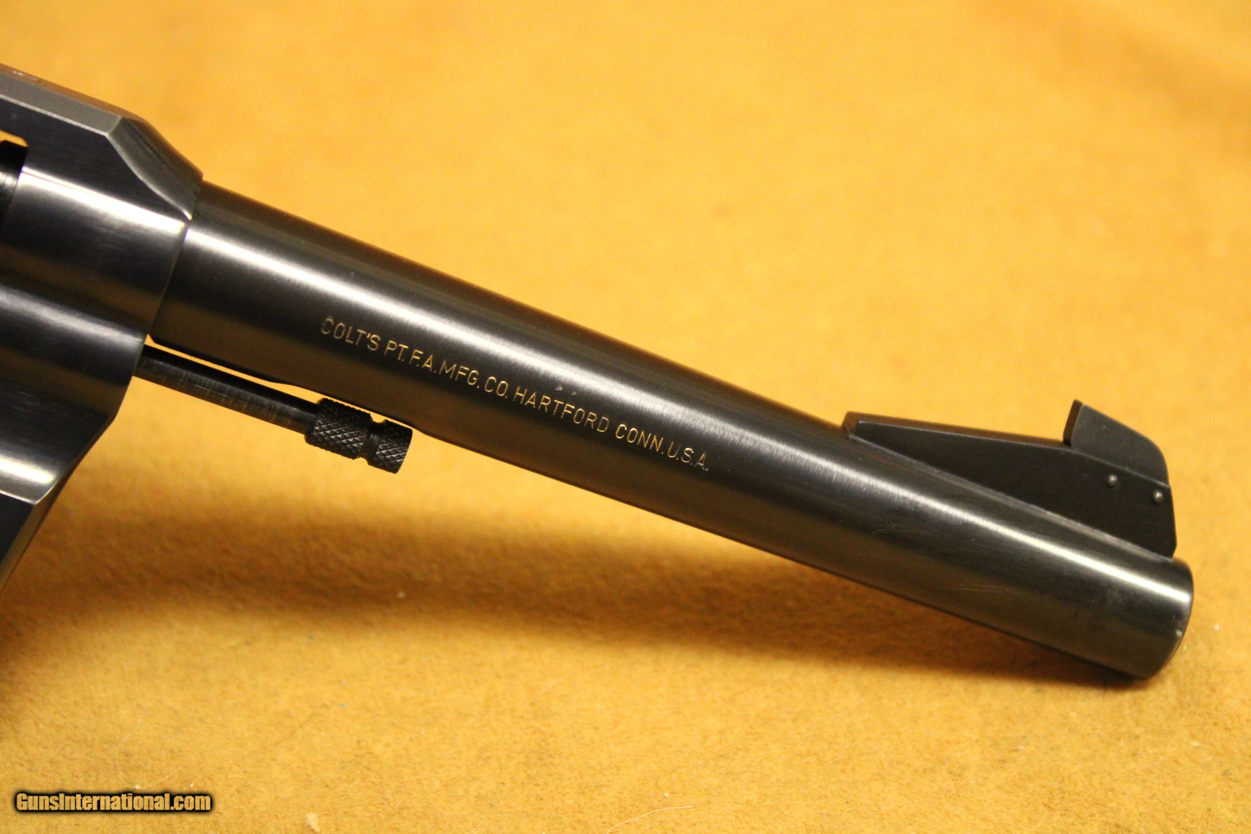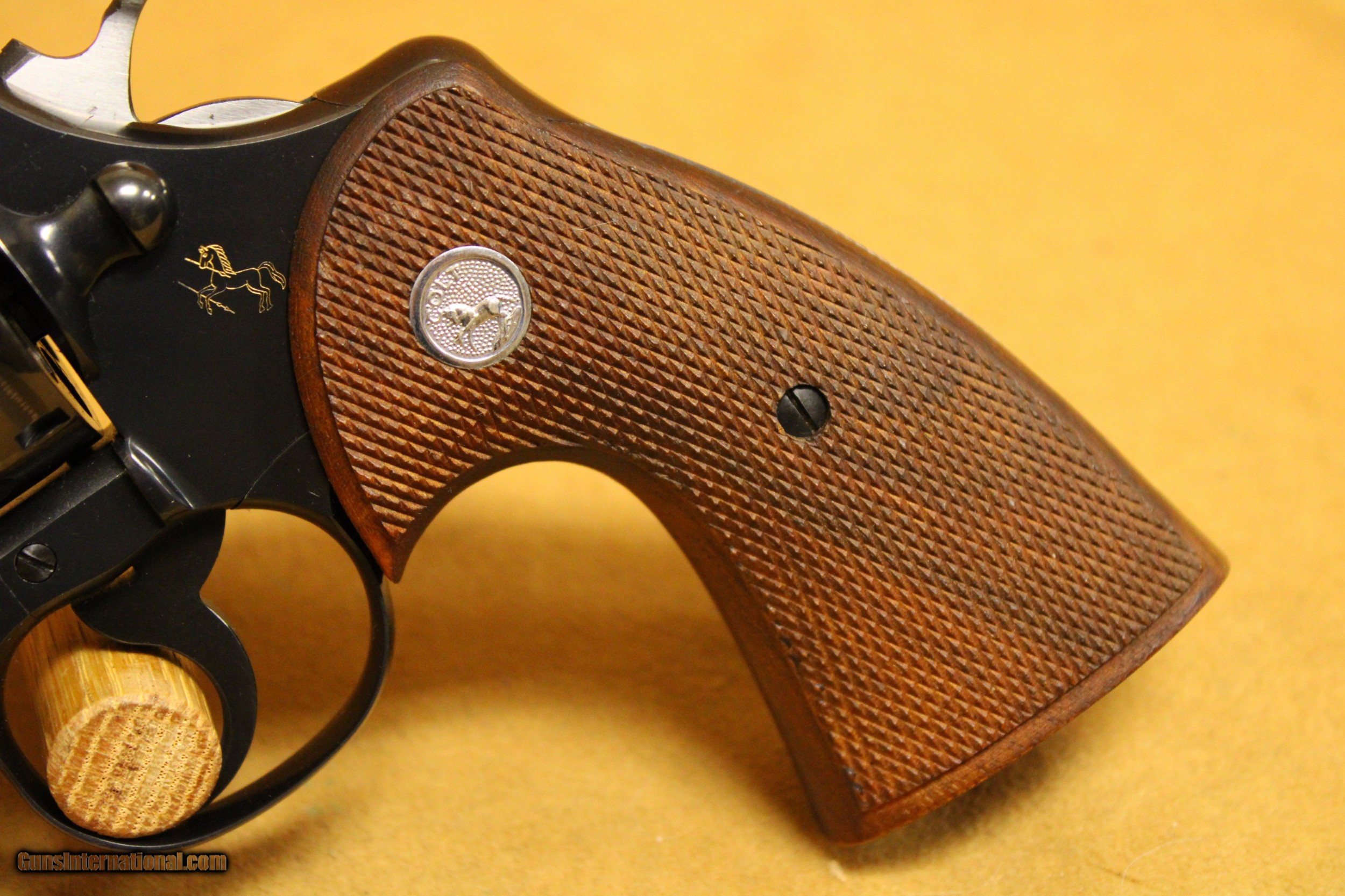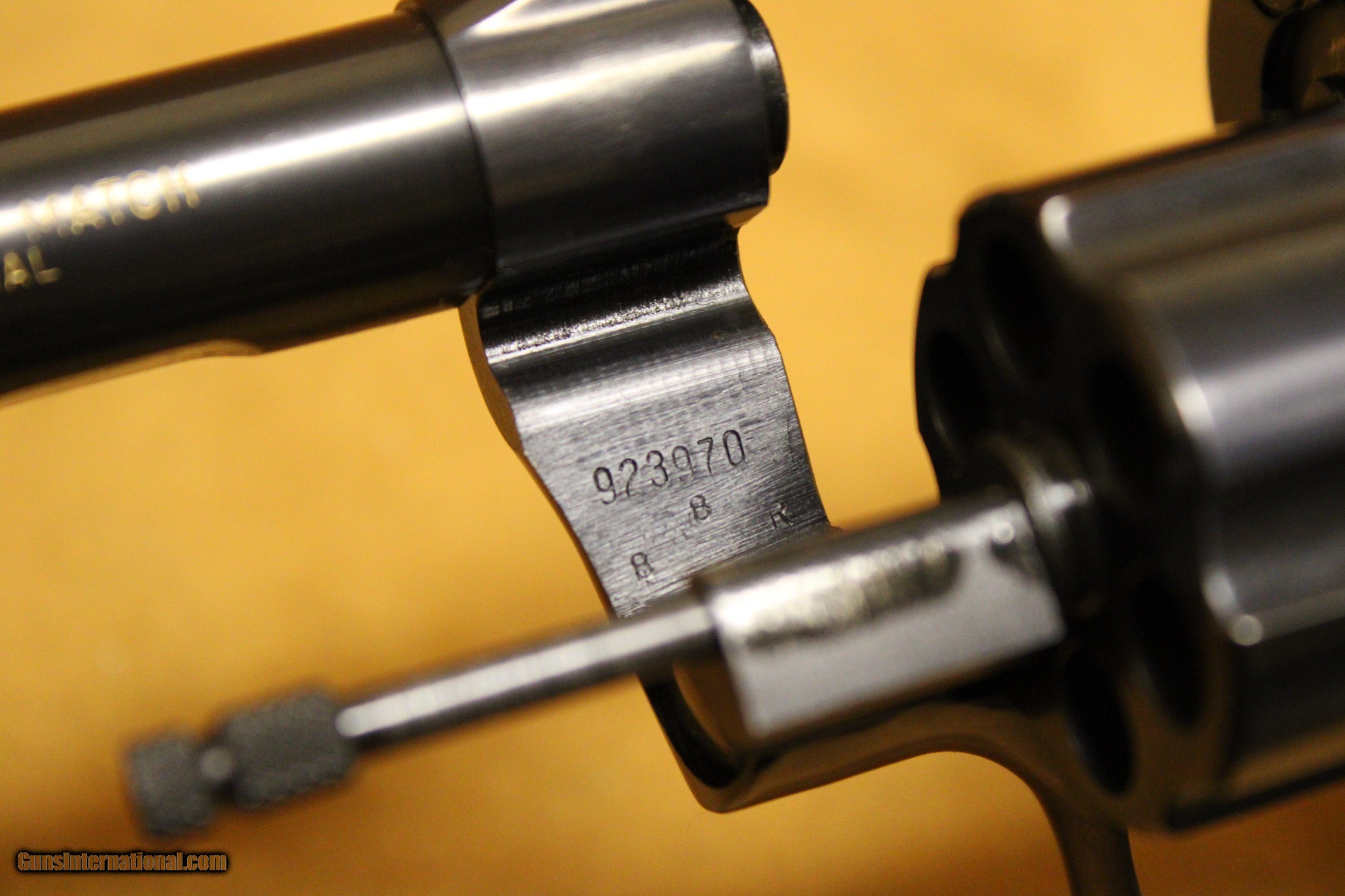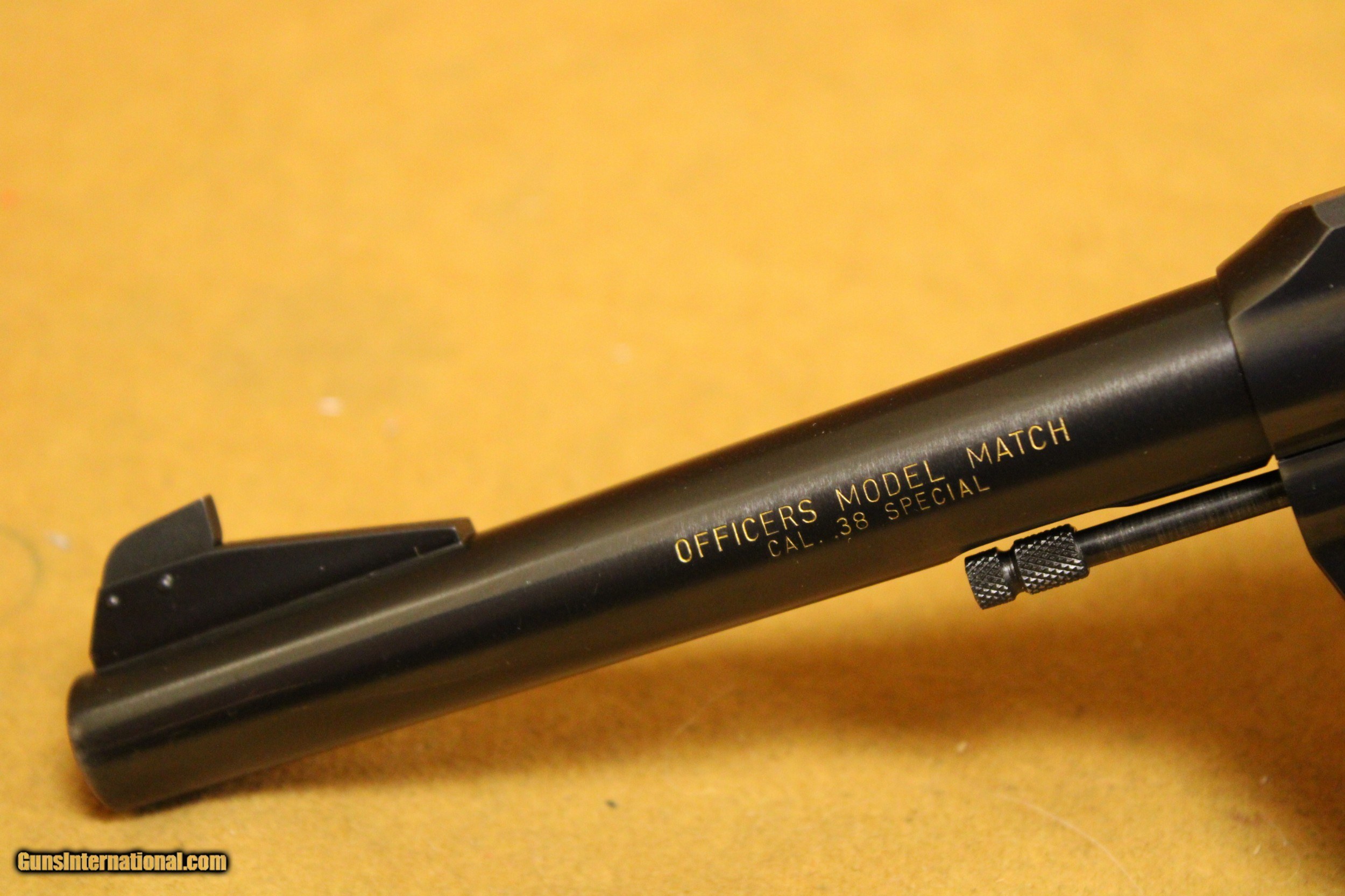 Description: This is a very, very nice Colt Officers Model Match target revolver chambered in .38 Special with a 6-inch target barrel and a 6-shot fluted cylinder. Colt made this model in various configurations and calibers from 1953 to 1969. This particular example was made in 1964. The bore is very minty with strong rifling. All six chambers of the cylinder are equally as pristine. The rear sight is Colt's fully-adjustable target model. The hammer is Colt's long, wide, diamond-checkered Target hammer that became famous on the Colt Python. The original factory grips are Colt's target-type, fully-checkered American Walnut with silver Rampant Colt medallions. This example exhibits only a few very minor handling marks in the original factory gloss blue finish, particularly at the muzzle. It does not have its box. All items are also available for sale in our brick & mortar store and are subject to prior sale. Think long, think wrong. Payment On firearms, we typically only accept credit cards or money orders/cashier's checks.