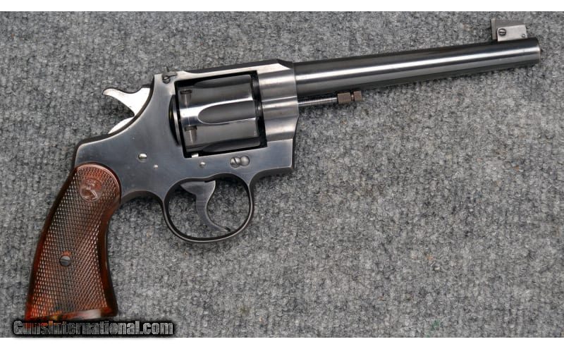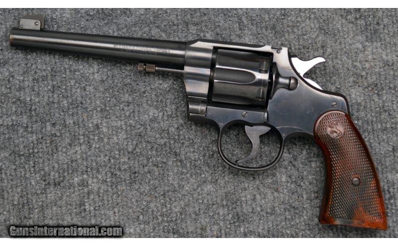 Description: For your consideration, a Colt Officer's Target chambered in .38 special. This piece dates to 1949 and wears a set of period correct "Coltwood" composite grips. .38 Special SOLD Chambers: 6 Metal Condition: Excellent Wood Condition: Excellent Bore Condition: Very Good Barrels: 6 Triggers: Serrated Face Weight: 2 lbs Sights: Iron Sights Item Location: Hamburg, PA |