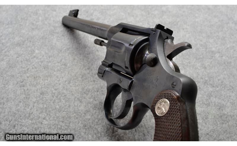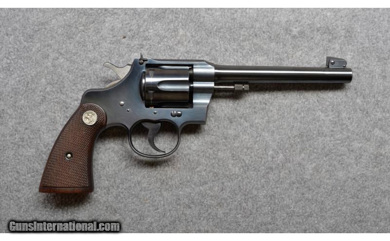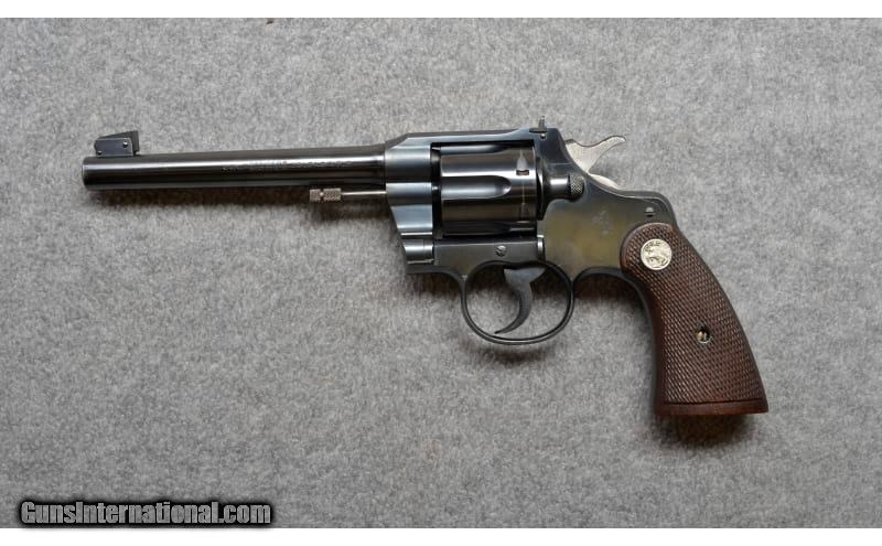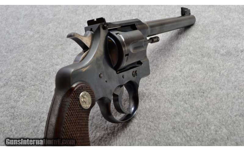 Description: Pre-owned Colt Officers Model .22 LR, 6" barrel, 6 shot cylinder, Colt checkered walnut grip. Serial # 17471 .22 Long Rifle SOLD Metal Condition: Good Condition Wood Condition: Good condition showing some wear Bore Condition: Bright and shiny with good rifling Barrels: 6 Inches Triggers: SA/DA Weight: 2.5 lbs. Sights: "Adjustable front, adjustable rear Item Location: Springfield, OR |