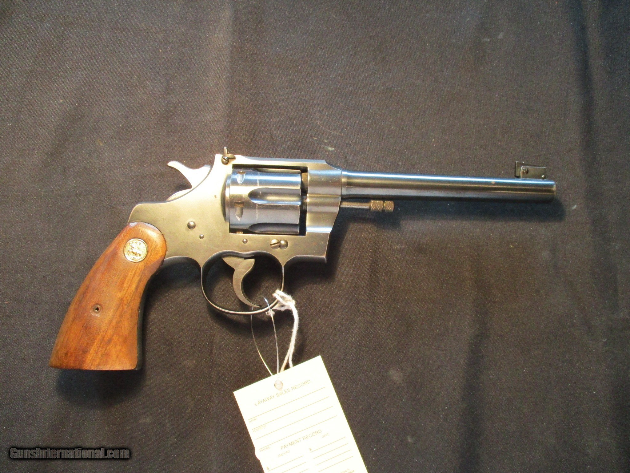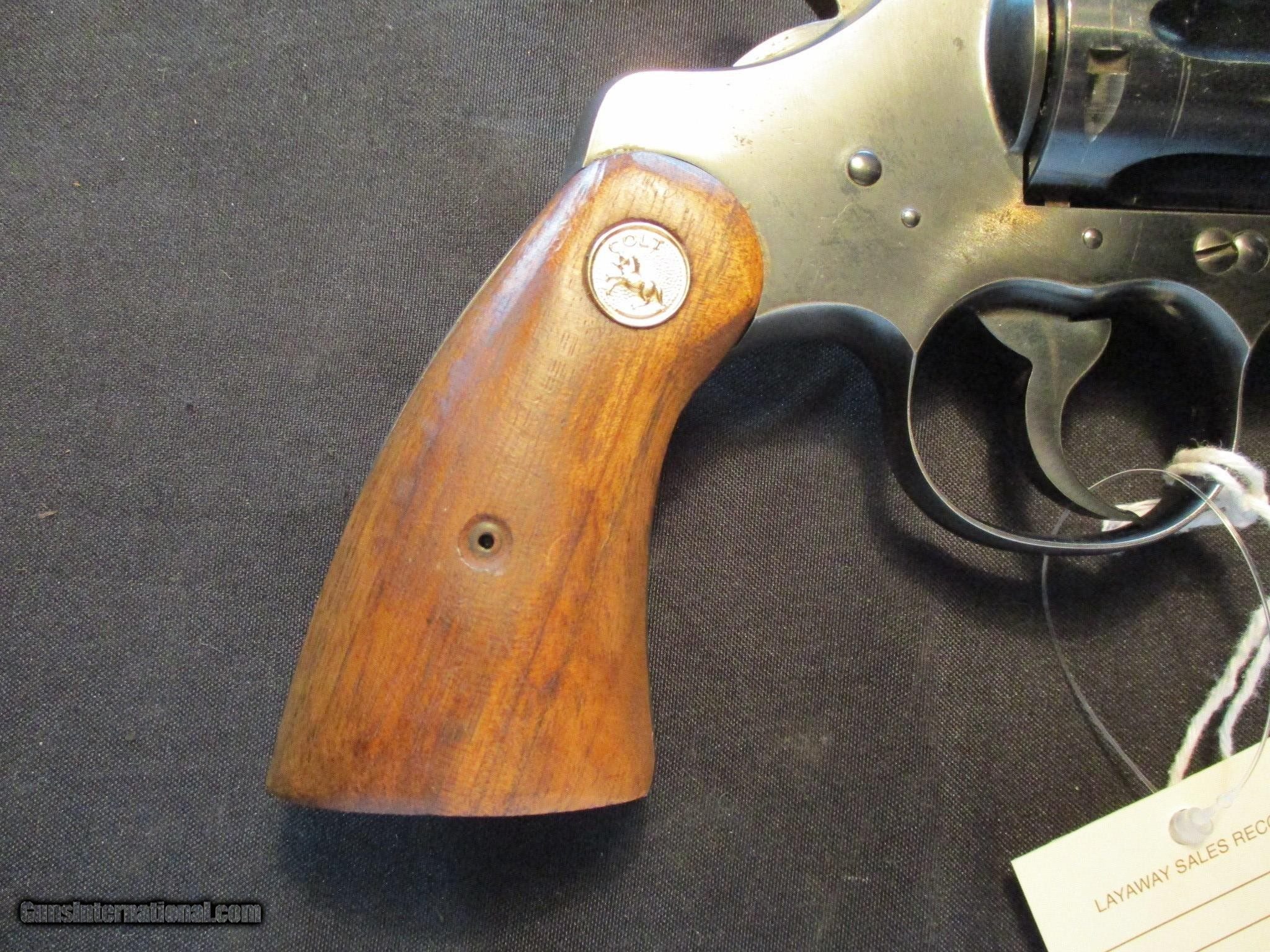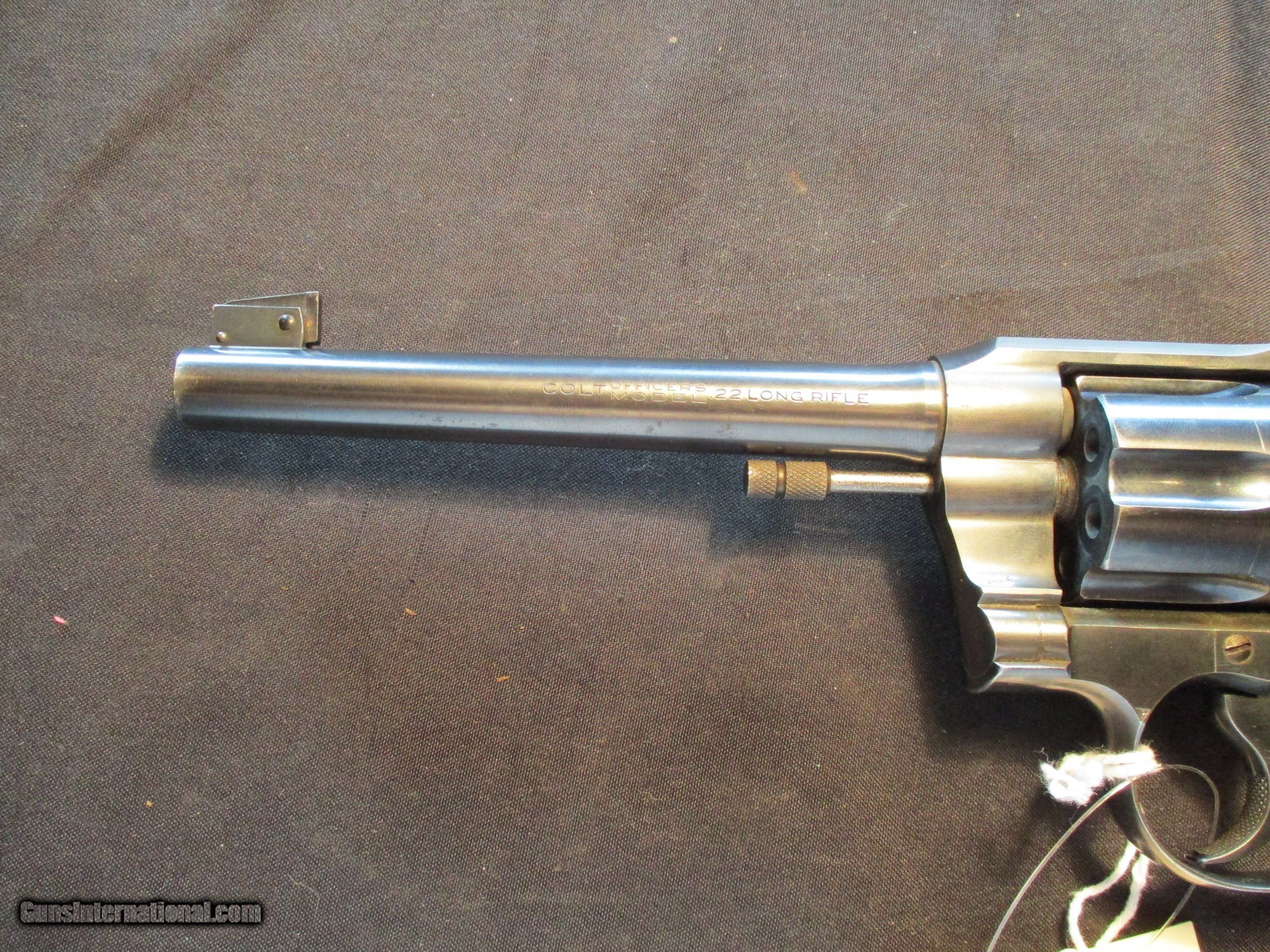 Description: Colt Officers Model Target, 22LR with a 6" barrel. SN is 165xx, which I show was made in 1932. Factory blue on the metal, nice clean gun! Email me if you would like these pics sent to you, they will come through bigger and better than on the listing page here. We do offer Lay-A-Way. Our standard terms are 25% down, 90 days. Initial deposit is not refundable. Email me with any questions. I am a store front dealer, and I will close s if the gun sells locally. Once it has aI will pull it from my shelves. Please check your local laws to confirm it is legal to own in your state! Buyer pays $25 shipping and insurance to your FFL in the lower 48. AK, HI or PR is extra. I will ship to California, NO PROBLEM! All my guns come with a non firing, 3 day unconditional return privilege, from the day UPS delivers to your dealer. Buyer pays shipping both ways if the gun comes back. I can add a new hard case by PLANO for secure shipping for $25 if the buyer wishes (highly recommended, cheap insurance, really helps keep the UPS monster from eating my guns!). No sales tax on guns ship out of Kansas, guns sold in Kansas are subject to Kansas sales tax. I am a licensed FFL, and will include a copy of my FFL with the gun for your dealers records. I will ship to a C&R if the gun is eligible. I will ship to California, but you need to confirm the gun is legal where you are, California or other. I am always looking for good clean, old original Winchesters to buy, consign, or trade, especially pre '64's model 70's and model 54's. WE ALSO TRADE FOR CLASSIC CARS AND TRUCKS! Email me with any questions, and good luck! SOLD |