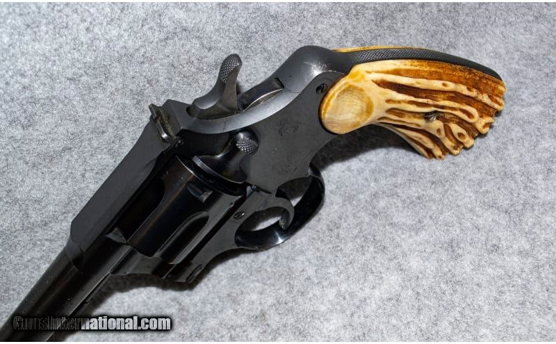 Description: This is a very nice condition Colt Officers Model 38 Heavy Barrel with adjustable front sight and windage rear sight. Revolver has non standard Stag Horn grips. There are no signs of any rework on the Bluing, although there is feint pitting visible on the lower part of the frame. There is one blemish on the top left grip metal. Barrel is 5 & 7/8ths. Otherwise a very good condition Officers Model. .38 Colt SOLD Metal Condition: Excellent Barrels: 5 & 7/8ths Weight: 3 lbs Item Location: Lone Tree, CO |