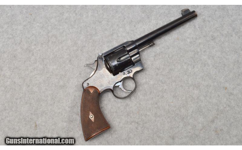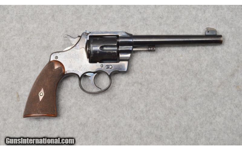 Description: This is a nice Colt Officers Model in .38 S&W Special. The blued 6" target barrel is excellent with clear sharp rifling. The blued receiver frame is good, with pitting on the RH side plate. The trigger is Colt smooth with a light release. The factory checkered dark walnut grips are very good. The overall blued metal finish is good. A collector shooter grade Colt. Really great for its age. Afterall is a Colt!. No box or other accessories. SOLD Manufacturer: S/N 282XXX Prod. Date 1907 Caliber Info: .38 S&W Special Metal Condition: Good Wood Condition: Very Good Bore Condition: Very Good Barrels: Blued 6 Triggers: Factory Stock: Colt Dark Checkered Walnut Stock Dimensions: 4" LOP Weight: 34 Ounces Sights: Front Target Blade, with Rear Drift Adjustable Item Location: West Chester, OH |