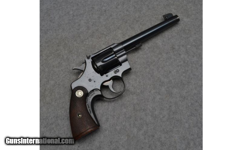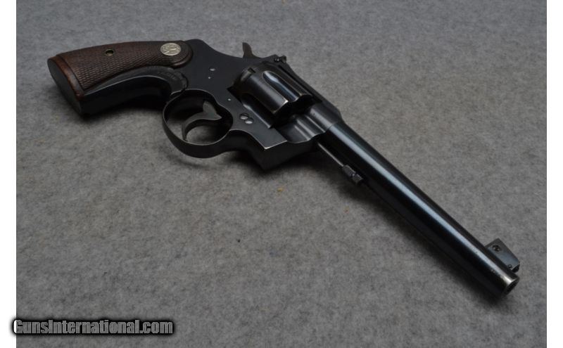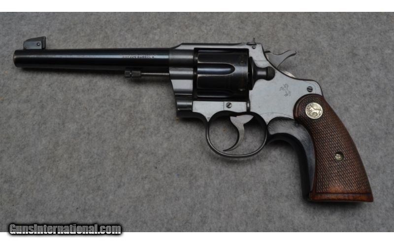 Description: A nice Colt Officers Model 38 Heavy Barrel third issue. SOLD Manufacturer: SN 631XXX Caliber Info: .38 Spl. Chambers: 6 Shot revolver Metal Condition: Good original finish with some bluing loss and some pitting. Wood Condition: Good grips with light handling marks Bore Condition: Shiny and bright Barrels: 6 Triggers: Factory trigger Stock: Colt walnut grips with checkering Weight: 2.0 lbs Sights: Target sights Extras: 1 Black Leather hunter holster Item Location: Woodbury, MN |