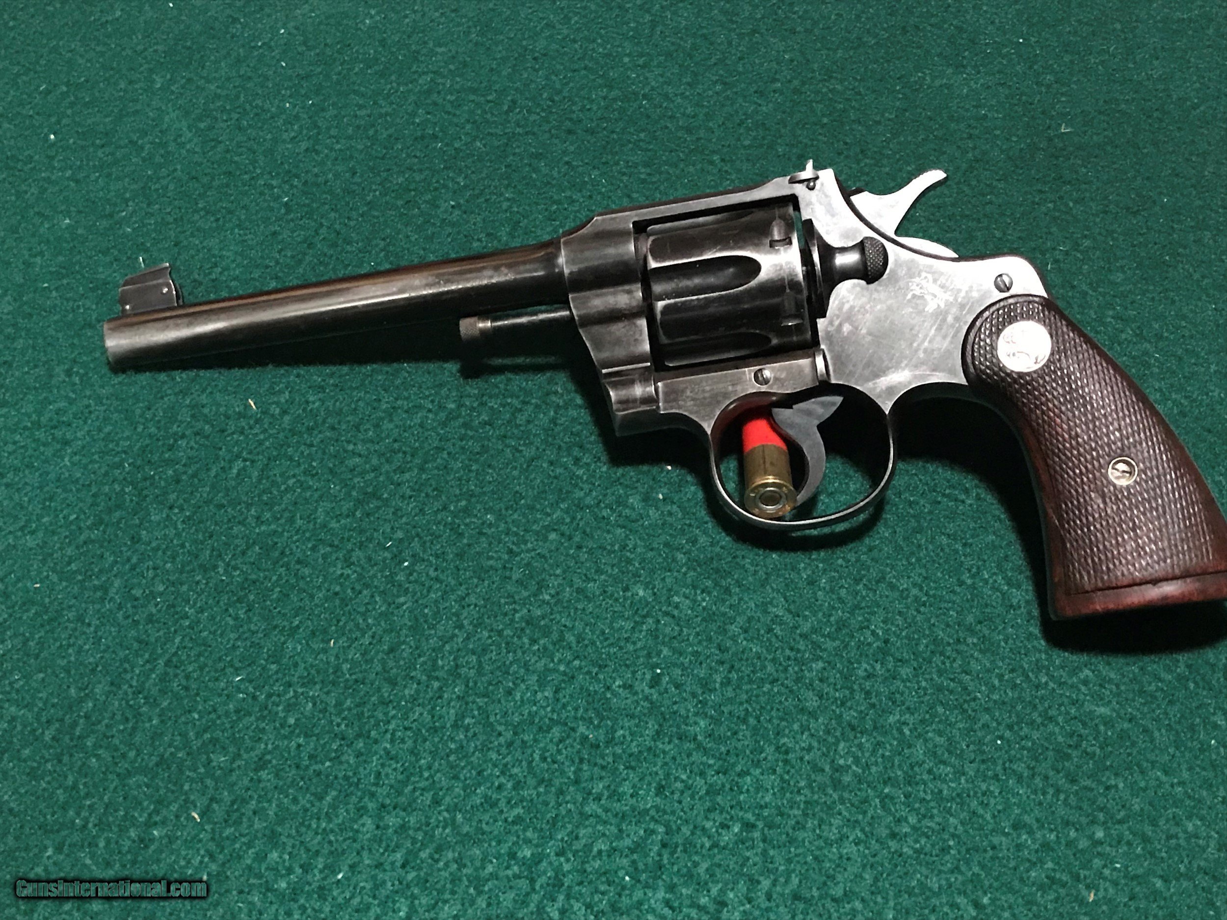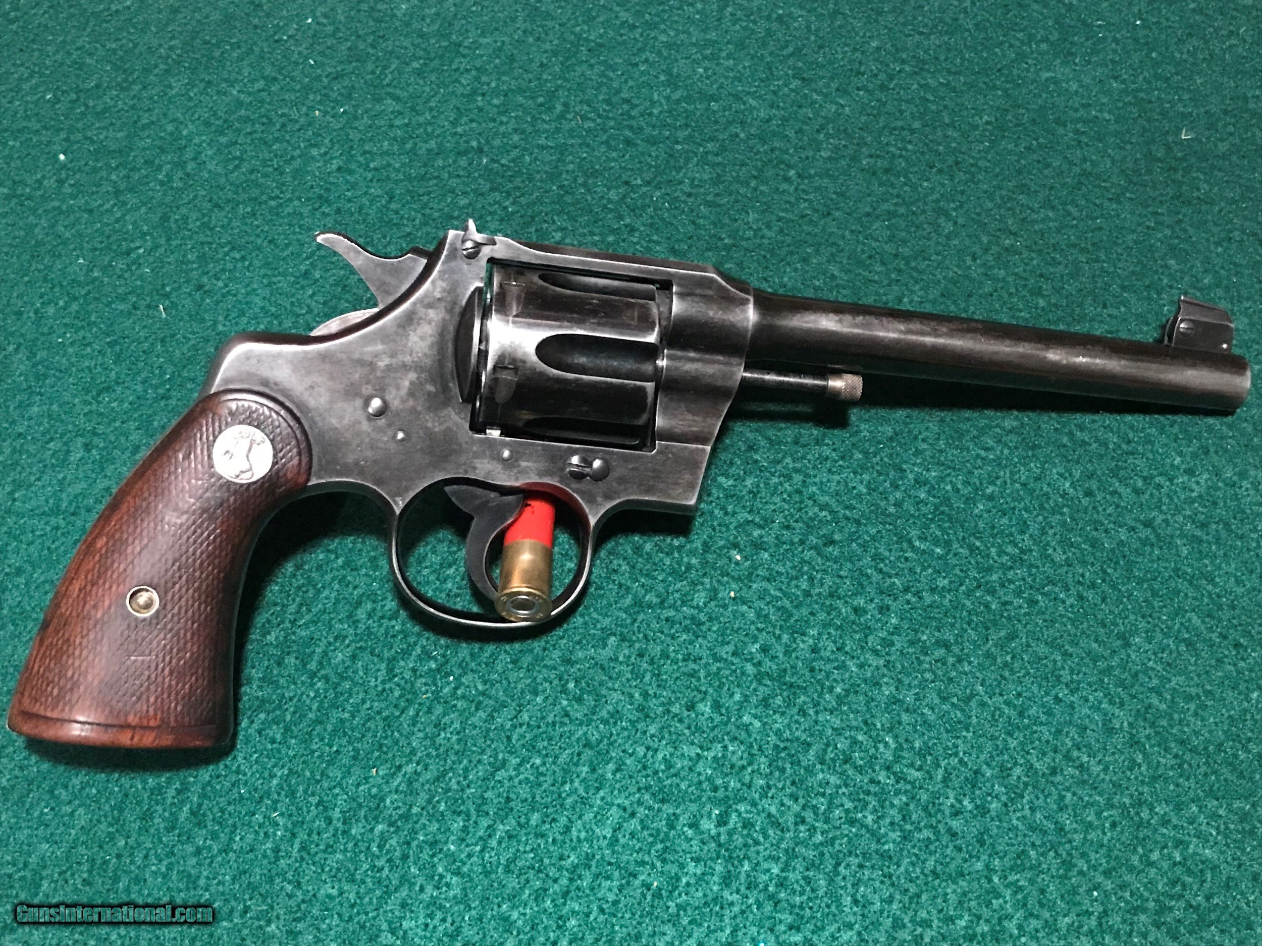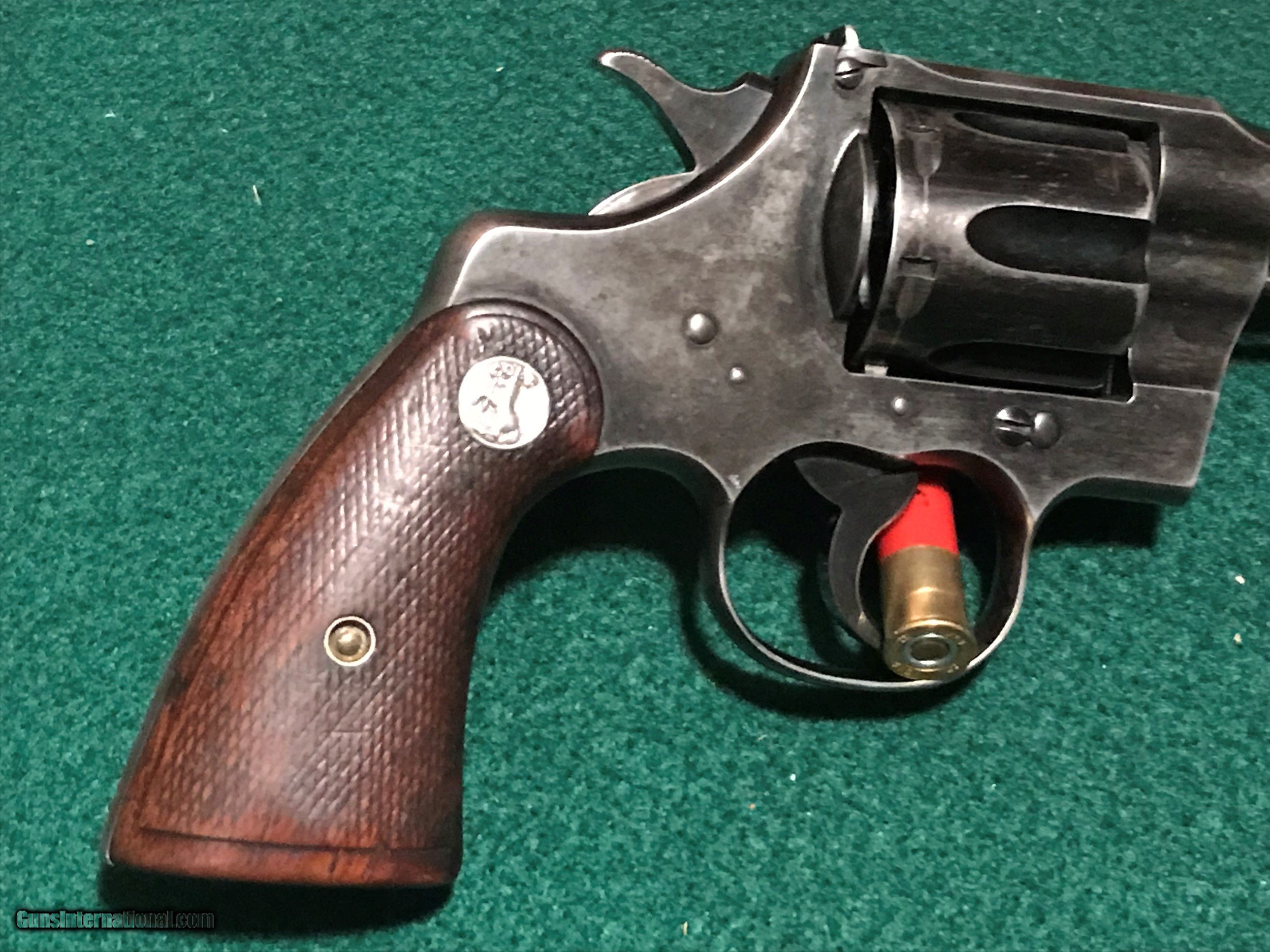 Description: Colt Officers Model 38-Third issue Target (mfg 1927) with Heiser Denver Floral Double loop holster. Pistol show its age with holster wear at the muzzle of the 6" barrel and at the front of the frame an cylinder as seen in the pictures. Bore and cylinder are in great condition and the pistol shoots flawlessly. Heiser Denver holster is stamped 713 and appears to have been with this pistol its entire life. ***Please feel free to call with any questions*** -- No International or California sales -- Seller Pays Actual Shipping cost--pistol will ship in hard side plastic case with appropriate insurance -- Buyer is responsible for knowing their own state and local laws and whether or not your prohibited from taking possession of, or owning this firearm SOLD Curio/Relic: Yes Manufacturer: Colt Model: Officers Model 38 Caliber Info: 38 Barrels: 6 Action: SA/DA Manufacture Date: 1927 |