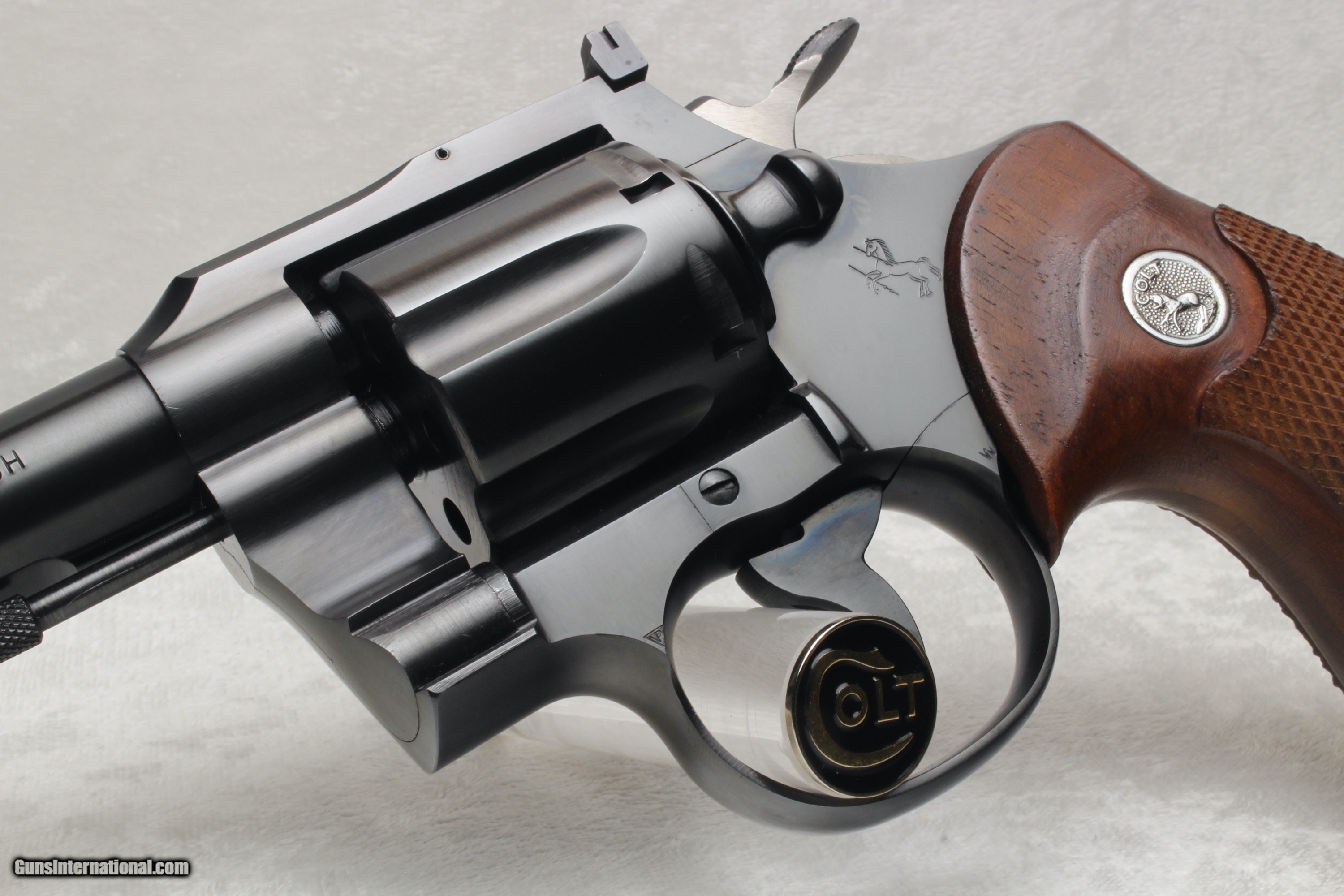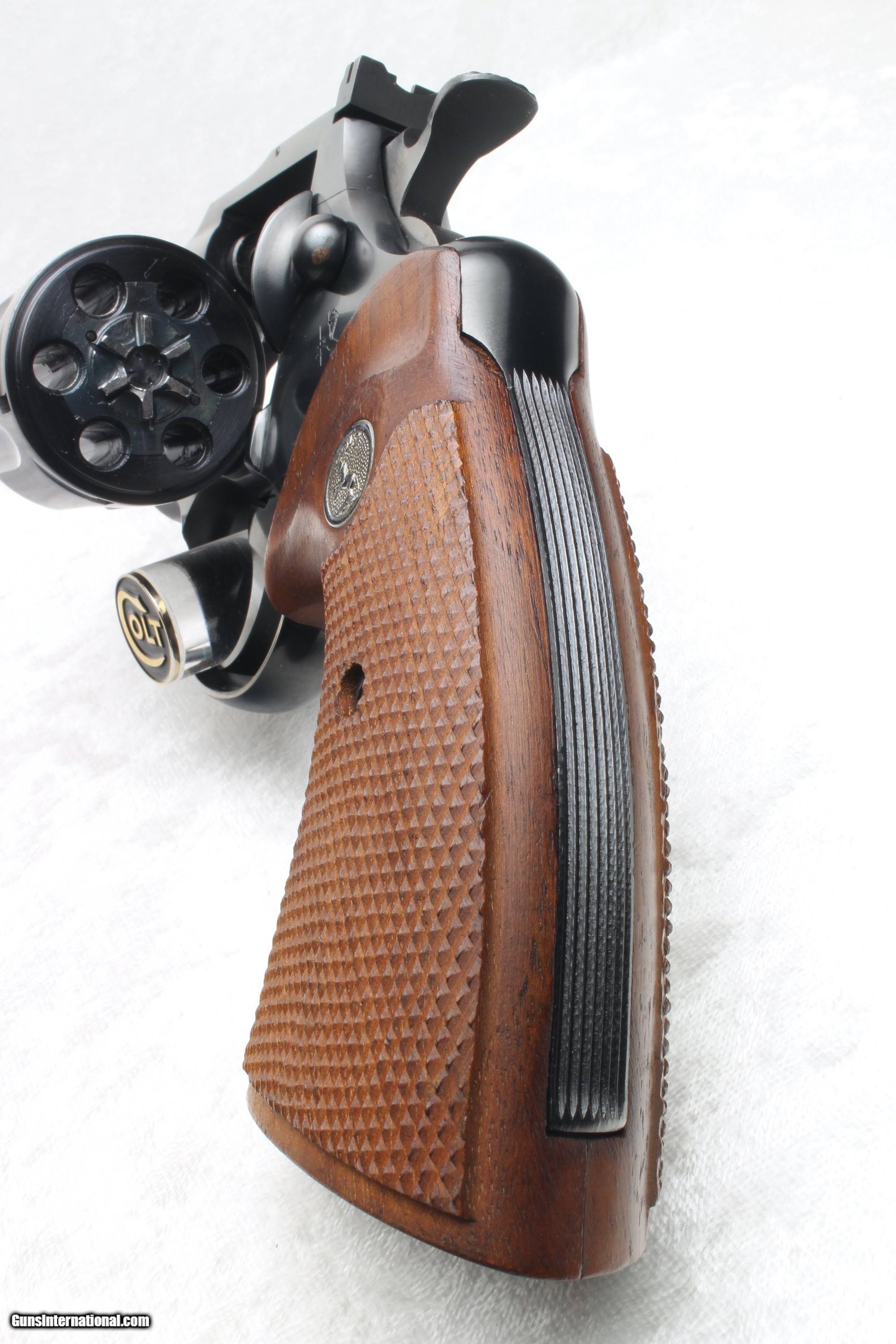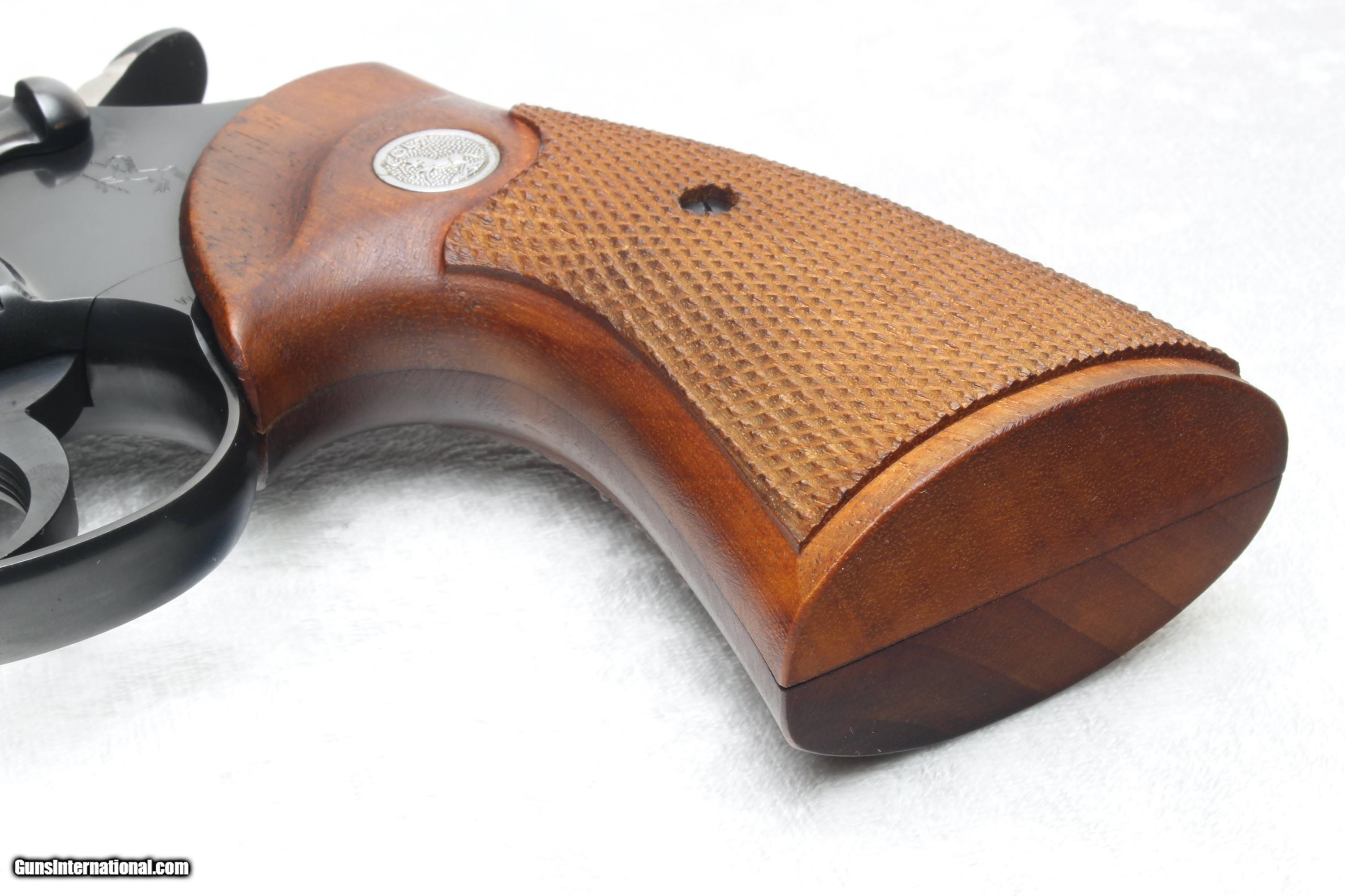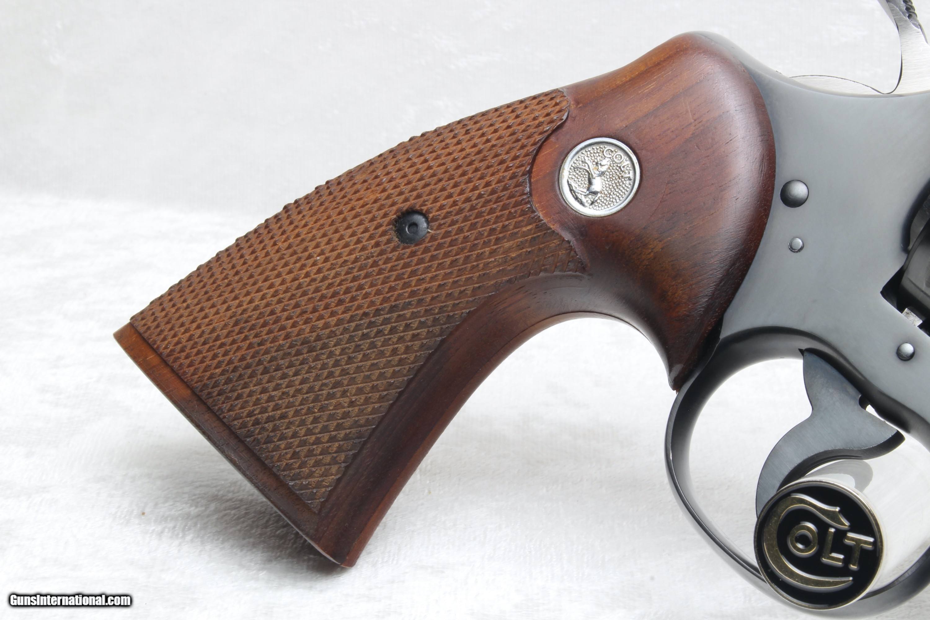 Description: Exceptional Fifth Issue Colt Officers Model Match with a 6 inch tapered heavy barrel, wide spur target hammer, under-cut patridge front sight, Accro adjustable rear sight, Walnut target grips, original blue finish, and chambered in .22 Magnum. This 1960 vintage, 6-shot double action revolver is in excellent plus condition. The original blue finish is nearly flawless with a tight and perfectly functioning action. The condition of the recoil shield and cylinder face show little evidence of use, and barely shows any turn line on the cylinder itself. With a total production run of only 850 units, this .22 Magnum is scarce, especially in this condition. Sorry, no box or paper-work. 10/30 Price drop to $3,000 firm. Listing is Going, Going, Gone by tomorrow 11/11... SOLD Curio/Relic: Yes Handgun Caliber: .22 WMR (.22 Magnum) Manufacturer: Colt Model: Officers Model Match Condition: Excellent Item Location: Arizona |