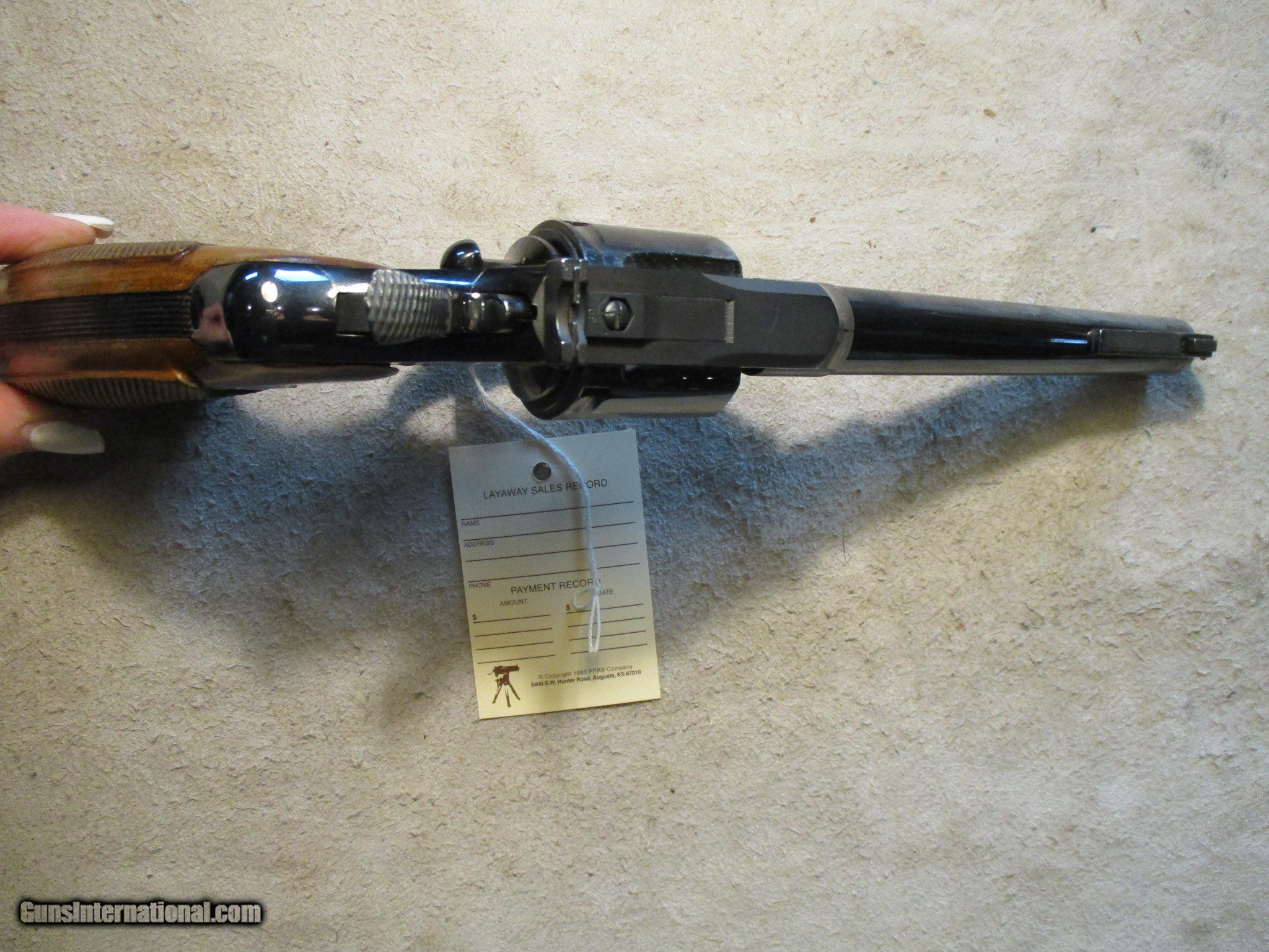 Description: Colt Officers Model Match, 22LR, 6" blue, 6 round., Clean gun, just the barrel needs reblued. SN is 886xx. Factory finish on metal and wood grips. We will trade for silver and gold. We accept personal check, any certified funds, Venmo or Zelle. We can also take your credit card, +3%. has now started collecting tax for states that mandate it, if applicable they will add it to your total. Email me if you would like these pictures sent to you, they will come through bigger and better than on the listing page here. We do offer Layaway. Our standard terms are 25% down, 90 days. Initial deposit is not refundable. Email me with any questions. Please check your local laws to confirm it is legal to own in your state! Buyer pays $25 shipping and insurance to your FFL in the lower 48. AK, HI or PR is extra. I will ship to California, NO PROBLEM! All my guns come with a non-firing, 3 day unconditional return privilege, from the day UPS delivers to your dealer. Buyer pays shipping both ways if the gun comes back. We can add a new hard case by PLANO for secure shipping for $30 if the buyer wishes (highly recommended, cheap insurance, really helps keep the UPS monster from eating my guns!). I am a licensed FFL, and will include a copy of my FFL with the gun for your dealer’s records. I will ship to a C&R if the gun is eligible. I will ship to California, but you need to confirm the gun is legal where you are, California or other. WE BUY AND CONSIGN GUNS AND GUN COLLECTIONS! We will travel to pick up collections! I am always looking for good clean, old original Winchesters to buy, consign, or trade, especially Pre '64's model 70's and model 54's. WE ALSO TRADE FOR CLASSIC CARS AND TRUCKS! We also trade for gold and silver. SOLD Handgun Caliber: .22 Long Rifle Manufacturer: Colt Model: Officer Model Match Barrel Length: 6 Condition: Used |
