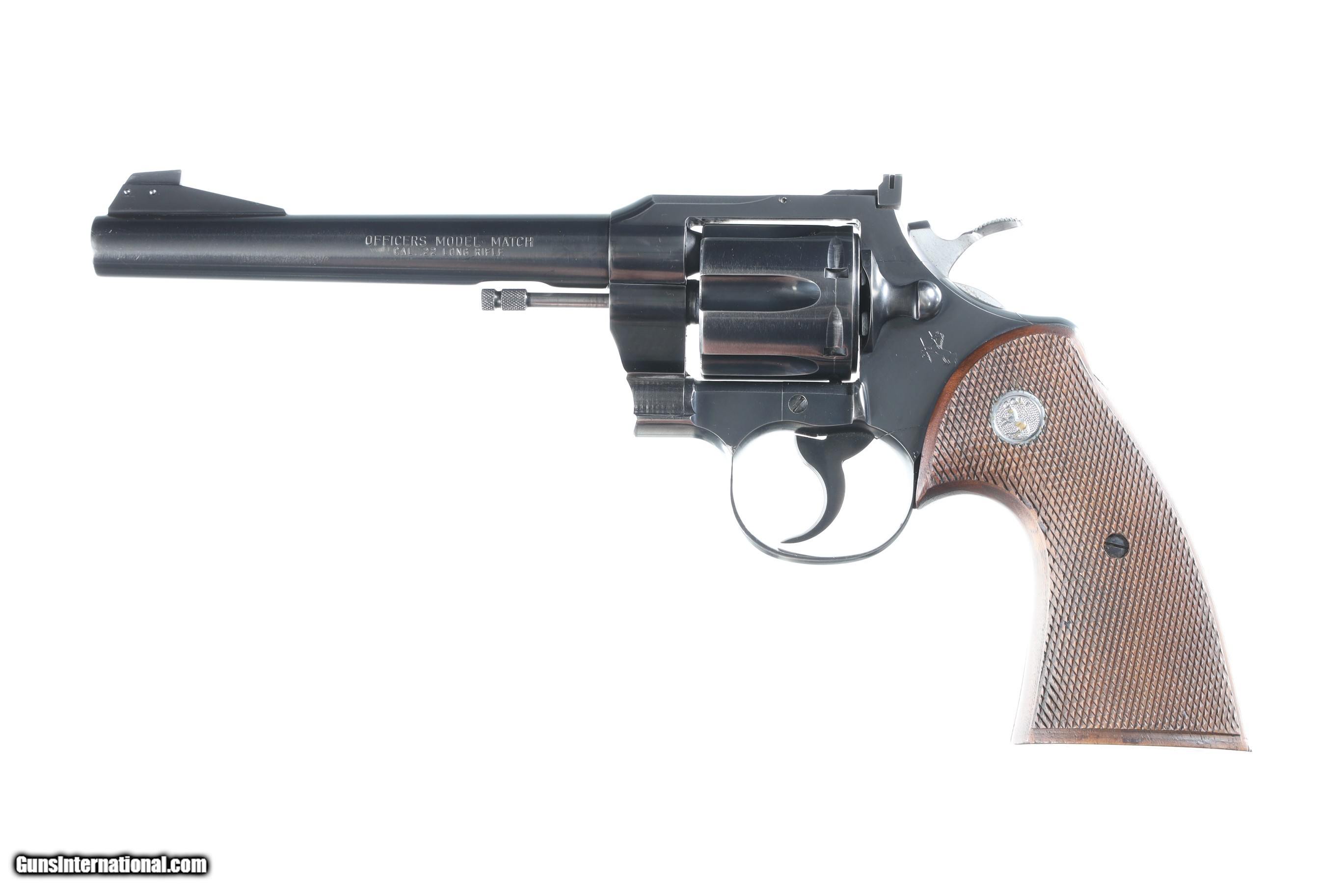 Description: Very fine overall with factory target grips with rampant Colt medallions, retains over 90% blue with minor edge wear, action operates properly. Manufactured 1959. • Free Shipping, No Credit Card Fees. • Lay-a-way available for this firearm. • 1/3 Down, a 1/3 in 30 Days 1/3 in 60 Days. SOLD Curio/Relic: Yes Handgun Caliber: .22 Long Rifle Manufacturer: Colt Model: Officers Model Match Serial Number: 77631 Barrel Length: 6" |