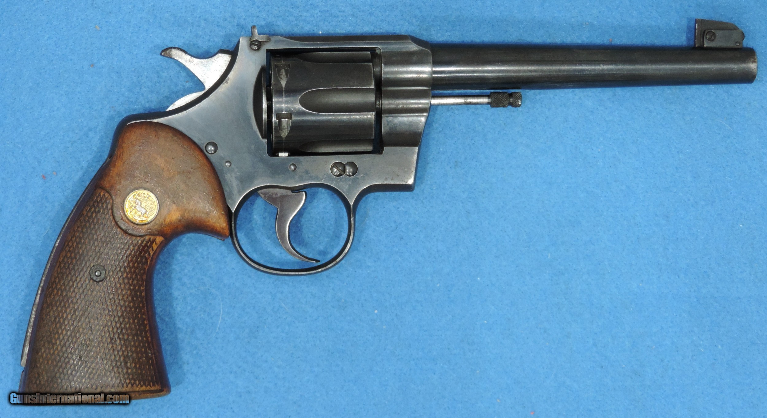 Description: Colt Officers Model Match. Cal. .38, Ser. 750293. This 1958 beauty has the newly marked " Heavy Barrel". The condition is really quite nice for a 61-year-old gun. It retains about 90-95% of the original factory finish. The bulk of the loss is due to sharp edge silvering and some small patches of very light surface flaking on the frame and the cylinder. There is no rust, scratches or rub marks anywhere. There is of course a hairline cylinder drag ring present on all used revolvers. The silver hammer has some very slight toning from age. The gun indexes properly and locks up tight. The walnut Colt factory grips are from a later generation and have been lacquered which can be easily removed. The grips themselves are in very nice condition, no splits or chips missing and should clean up nicely. The recoil shield, force cone and cylinder face show no evidence of heavy use. The bore is super, mirror bright with razor sharp rifling. If you ever wanted a competition class .38 revolver without having to sell your first born here's your chance....SHIPPED....$420. SOLD Curio/Relic: Yes Manufacturer: Colt Model: Officer Serial Number: 750293 Caliber Info: .38 |