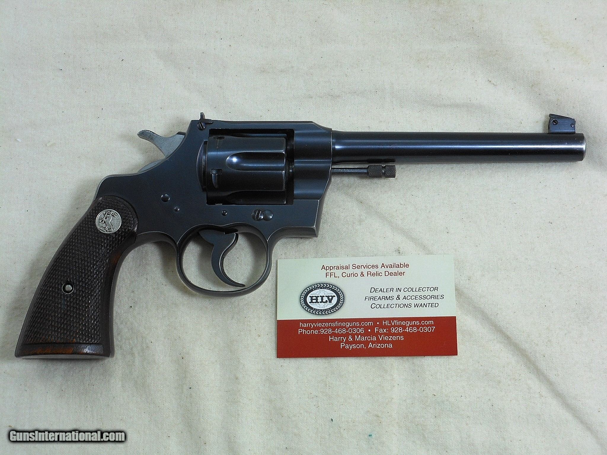 Description: SOLD This Colt was produced in 1931 in the second year of production of this model. The Co;lt's serial number is 6346. This pistol has the 6 inch barrel that is in minty condition! This pistol has very little use and wear. The matching serial numbered grips are in very fine condition. The chambers show very little use. The breech face also shows very little wear. The original bluing would rate a srong 98% or better. The screws have not been marred. The action works great! The trigger pull is very crisp. The sights are original to this pistol. This Colt is in near new condition showing very light storage wear, This pistol is a prime example of these early target model 22 Colts! This pistol would be a fine addition to any Collection! Search for hlvfineguns on google for more details. Curio&Relic H.L.V Private (5) F. No. 547 -21 SOLD Curio/Relic: Yes Handgun Caliber: .22 Long Rifle Manufacturer: Colt Model: Officers Model Target Serial Number: 6346 Barrel Length: 6 Inch Chambers: Minty Condition: 98% Overall Metal Condition: Very Fine Wood Condition: Very Fine Bore Condition: Minty Barrel Type: Target Action: Double Action Finish: Blued Sights: Standard Target Manufacture Date: 1931 |