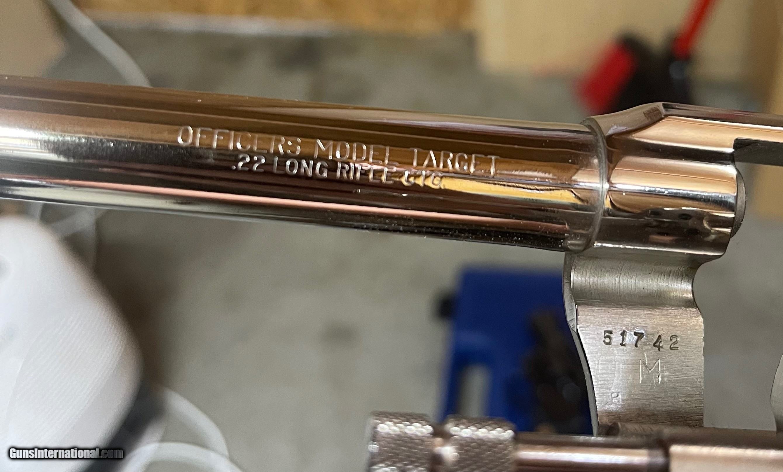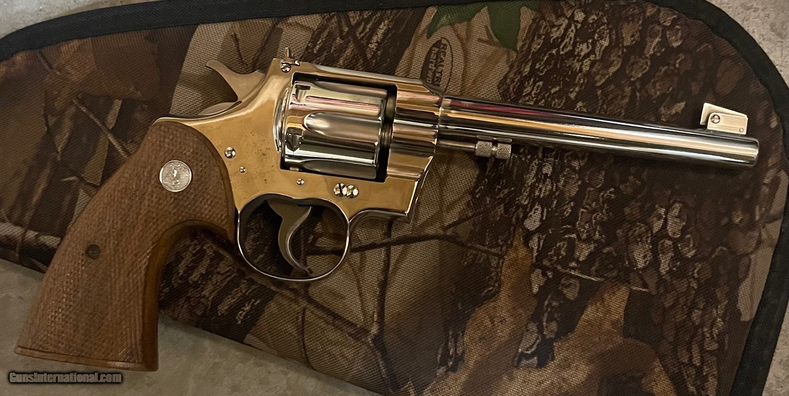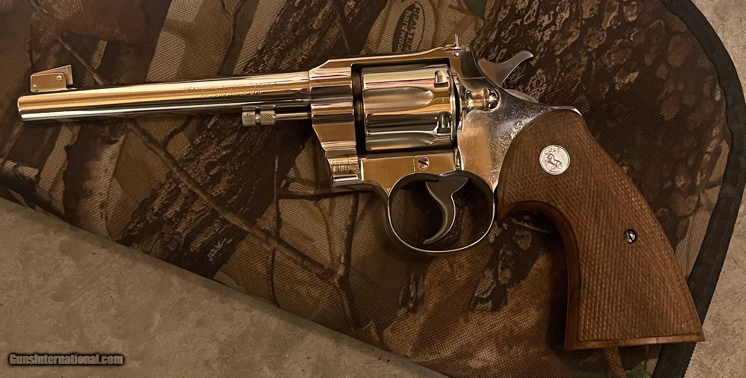 Description: What a gorgeous colt! This officers model features a 6 inch barrel, target sights, aftermarket fully checkered wood grips, and rare, nickel finish. Serial dates the gun to 1948. Beautiful gun in the rare .22LR caliber. Some nickel freckling on both sides on the rear frame. Not missing just freckled (see photos). Please email with questions. Shipping and insurance included. SOLD Manufacturer: Colt Model: Officers Model Target Barrel Length: 6 inch Condition: Used Metal Condition: Excellent Wood Condition: Excellent Bore Condition: Excellent Action: Da, sa Finish: Nickel Sights: Target Manufacture Date: 1948 Item Location: 37075 |