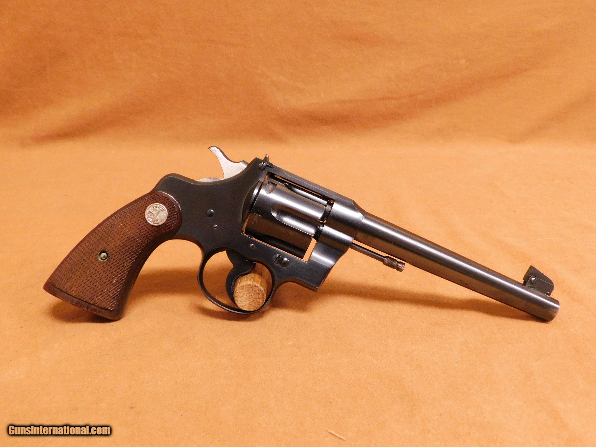 Description: This is a nice, pre-war Colt Officer's Model Target. It has a 6-inch heavy barrel in .38 Special with just a bit of muzzle wear and a perfect bore. The overall finish rates about 97% or better. The checkered Colt walnut grips still have sharp diamonds. All items are also available for sale in our brick & mortar store and are subject to prior sale. Think long, think wrong. Payment On firearms, we typically only accept credit cards or money orders/cashier's checks.
